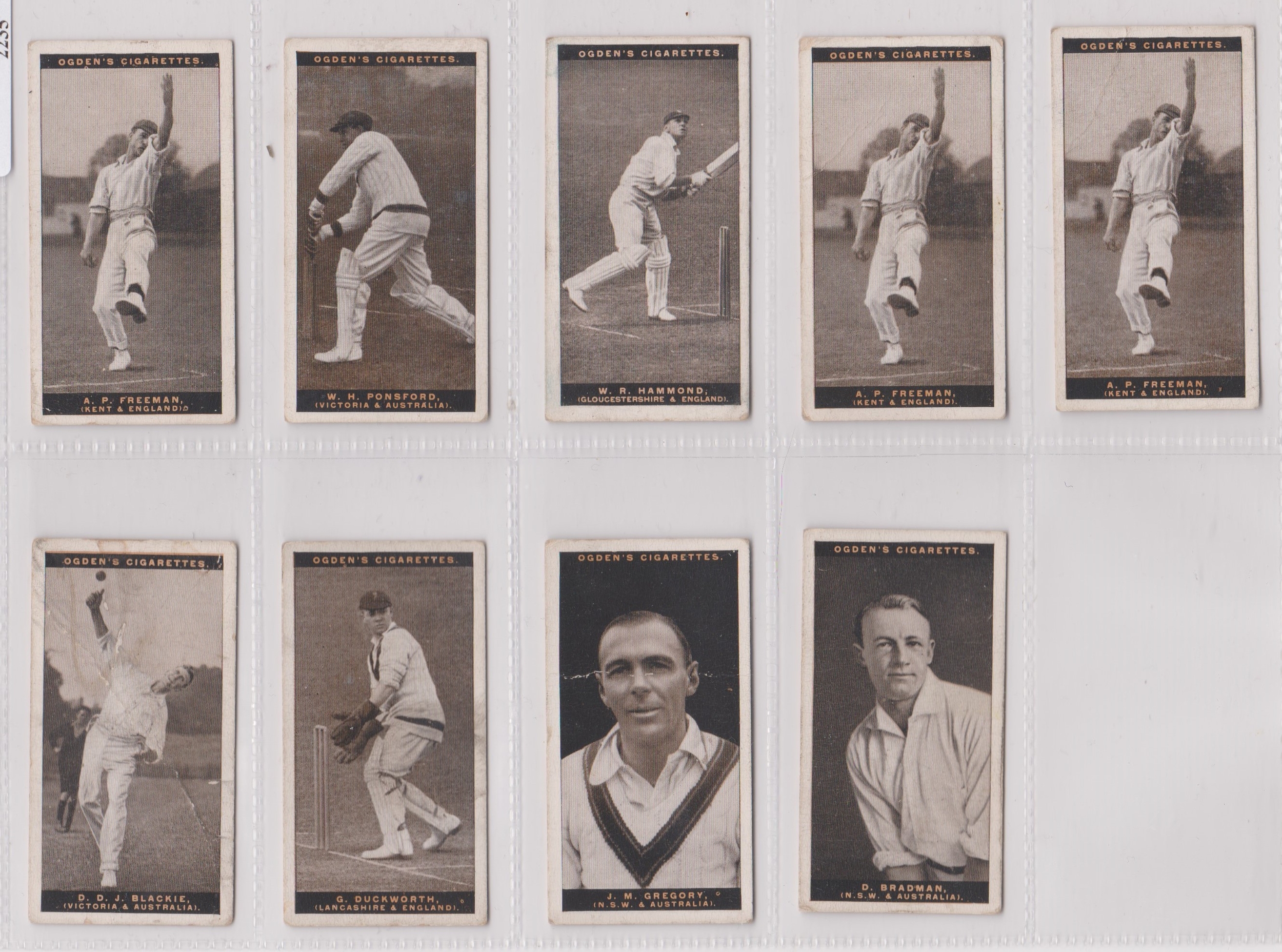 Ogdens Ltd (1928-1929) Australian Test Cricketers series 9/36 cards, 2 poor condition and 7 good condition