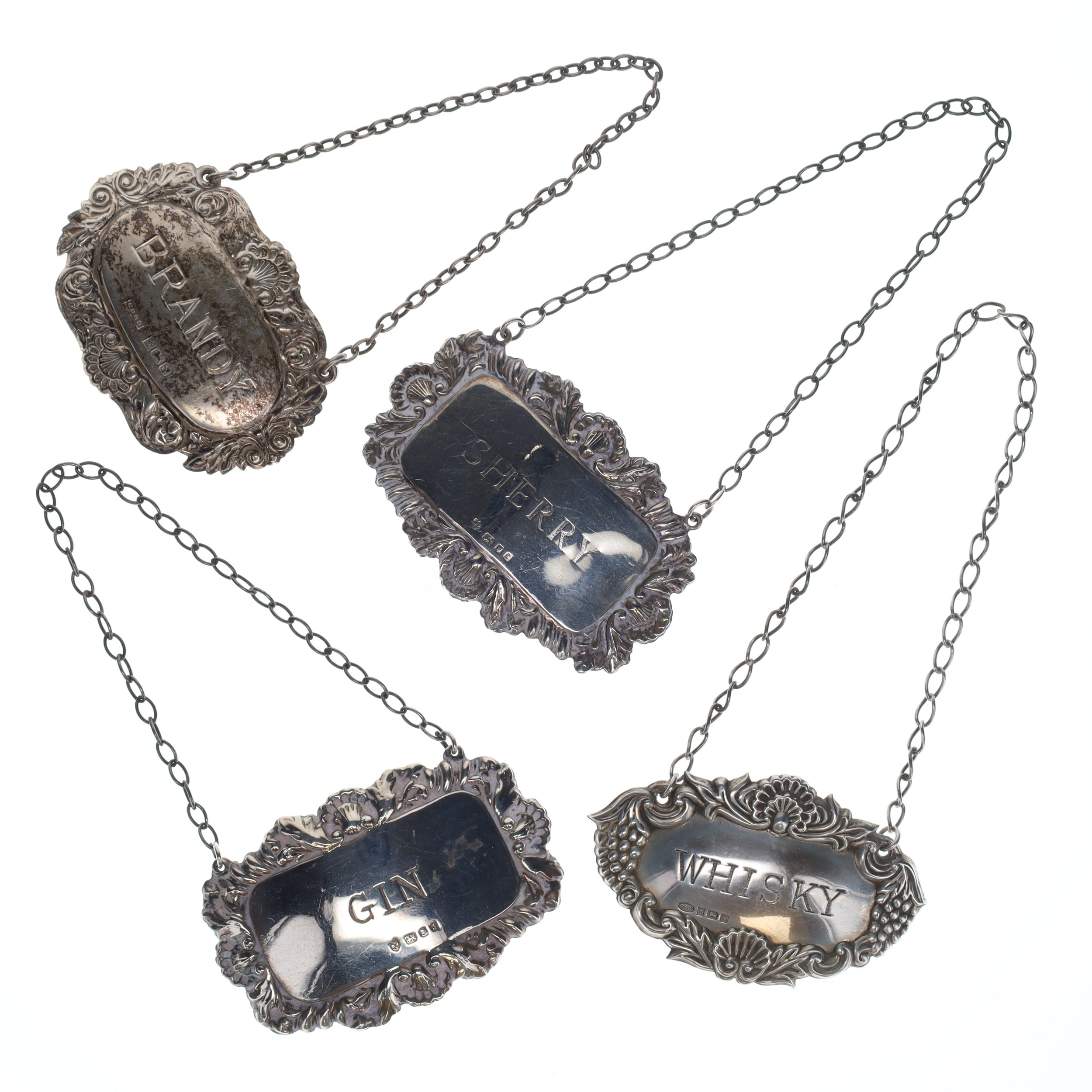 Vintage Sterling Silver Decanter Labels Collection, 42g