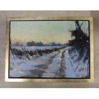 Framed oil on canvas board by James Fullarton Snow Scene, Straiton, overall size 51cm x 46cm.