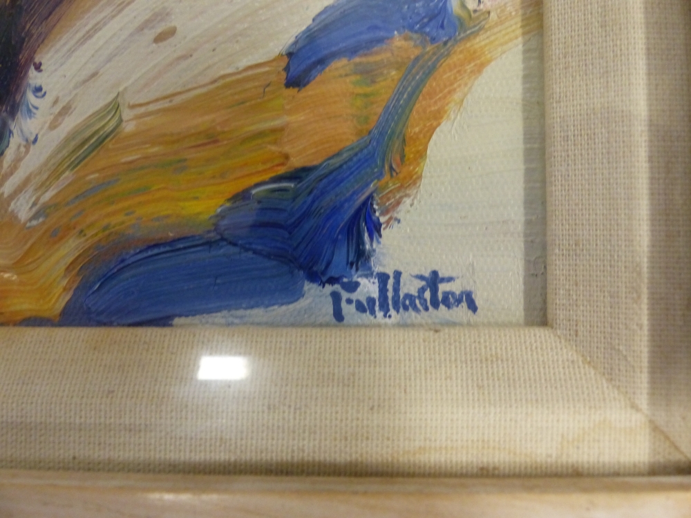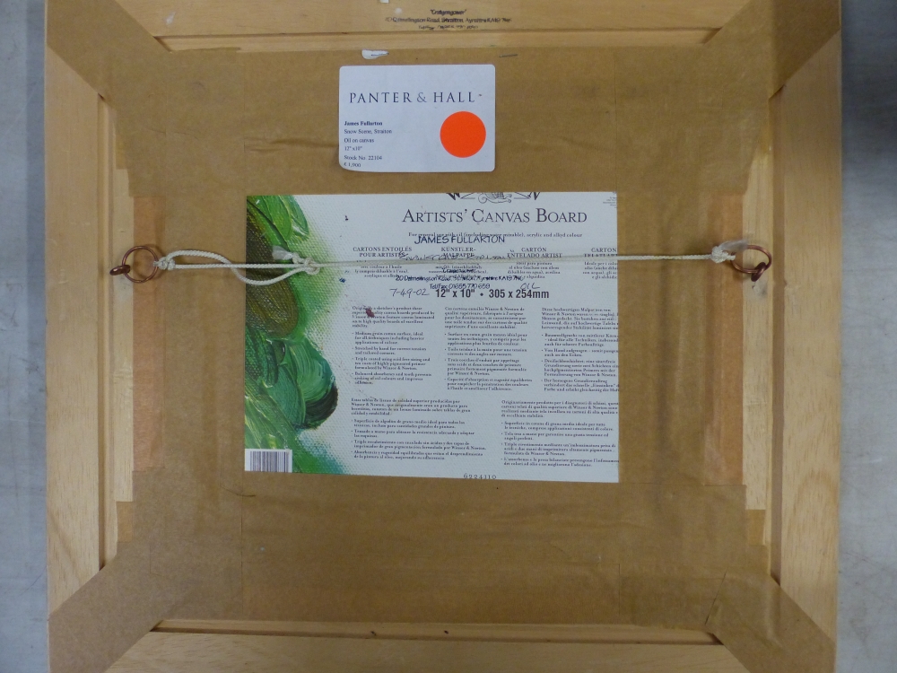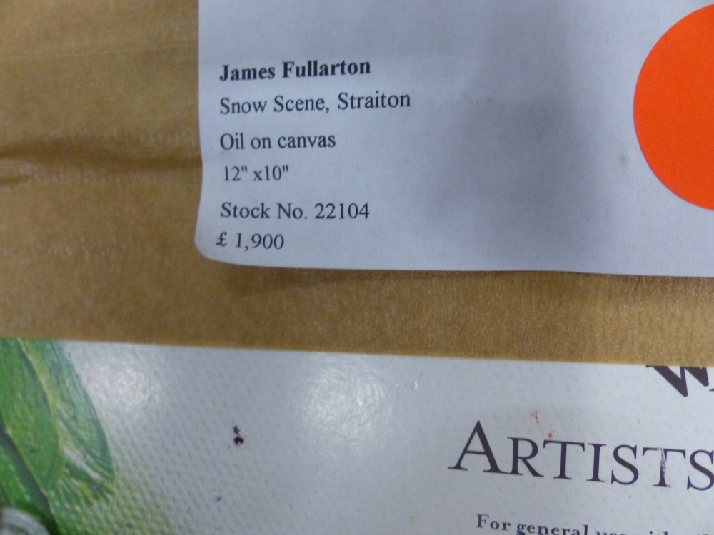 Framed oil on canvas board by James Fullarton Snow Scene, Straiton, overall size 51cm x 46cm.
