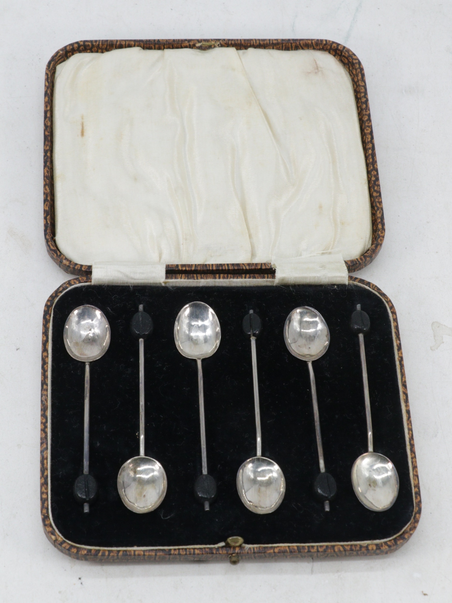 set of six silver hallmarked coffee spoons cased.