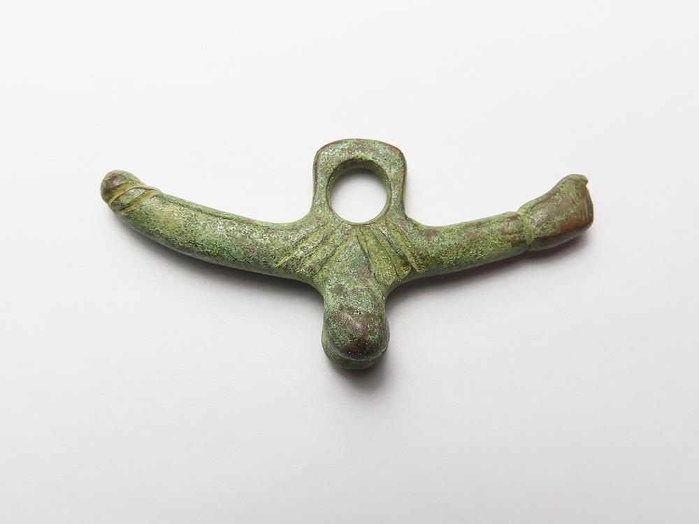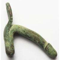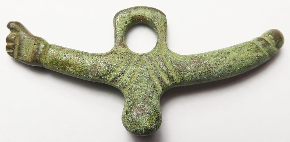 Antiquity: Roman bronze phallic amulet with fist opposite, loop intact. Popular style of military charm, c.3rd-4thC AD. 48mm, 11.77g. Ex. Ancient Times c.2006.
