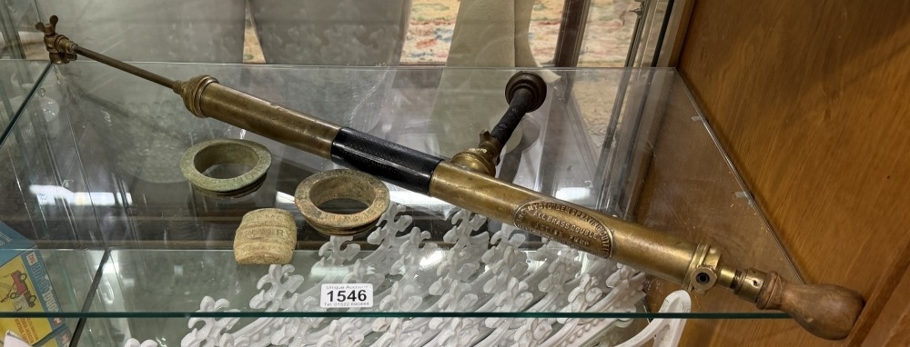 2 Brass barrel inserts & Home Brewery sign & Mysto garden sprayer