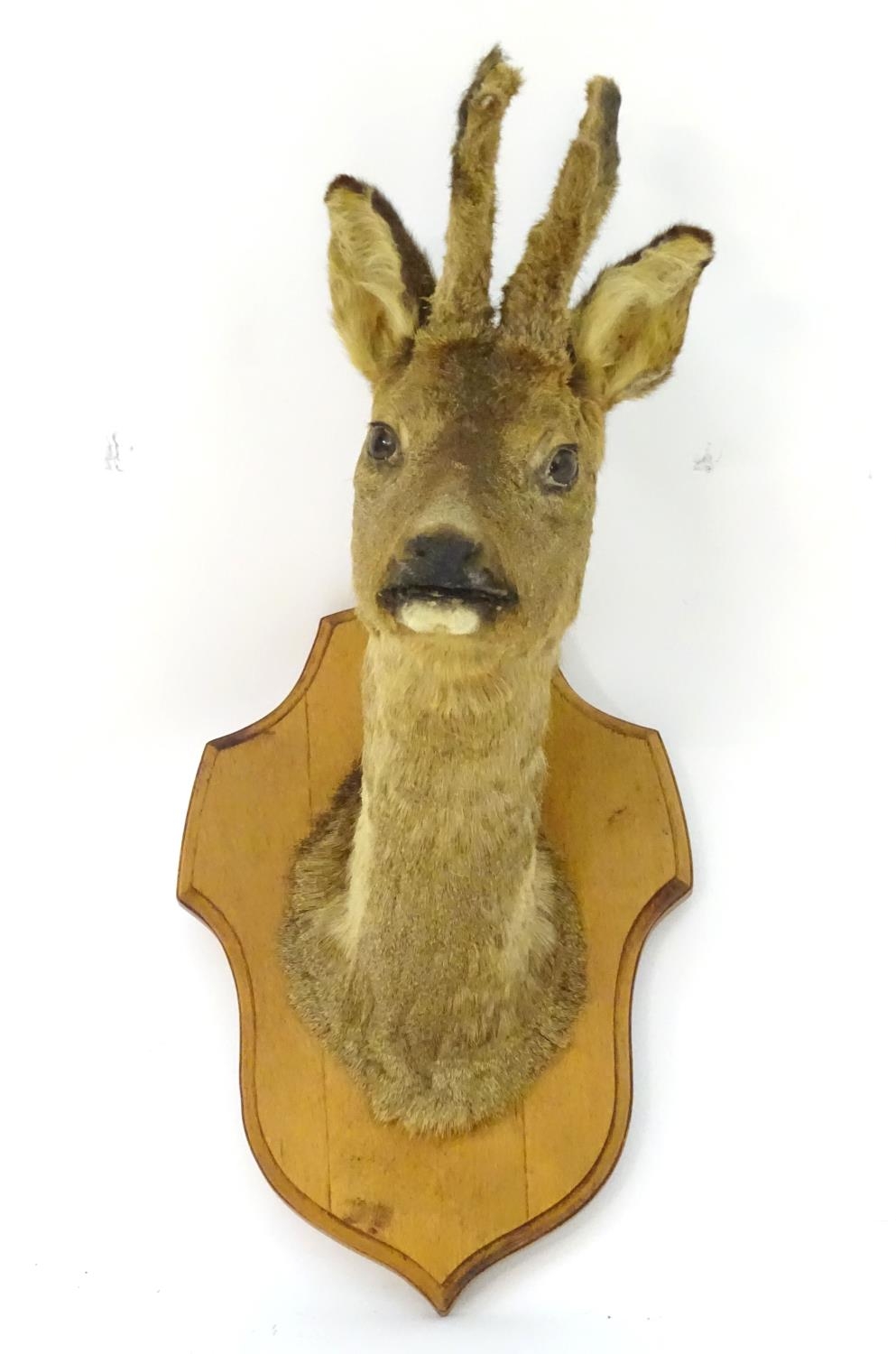 Taxidermy: a mid-20thC Continental head mount of a Roe buck,...