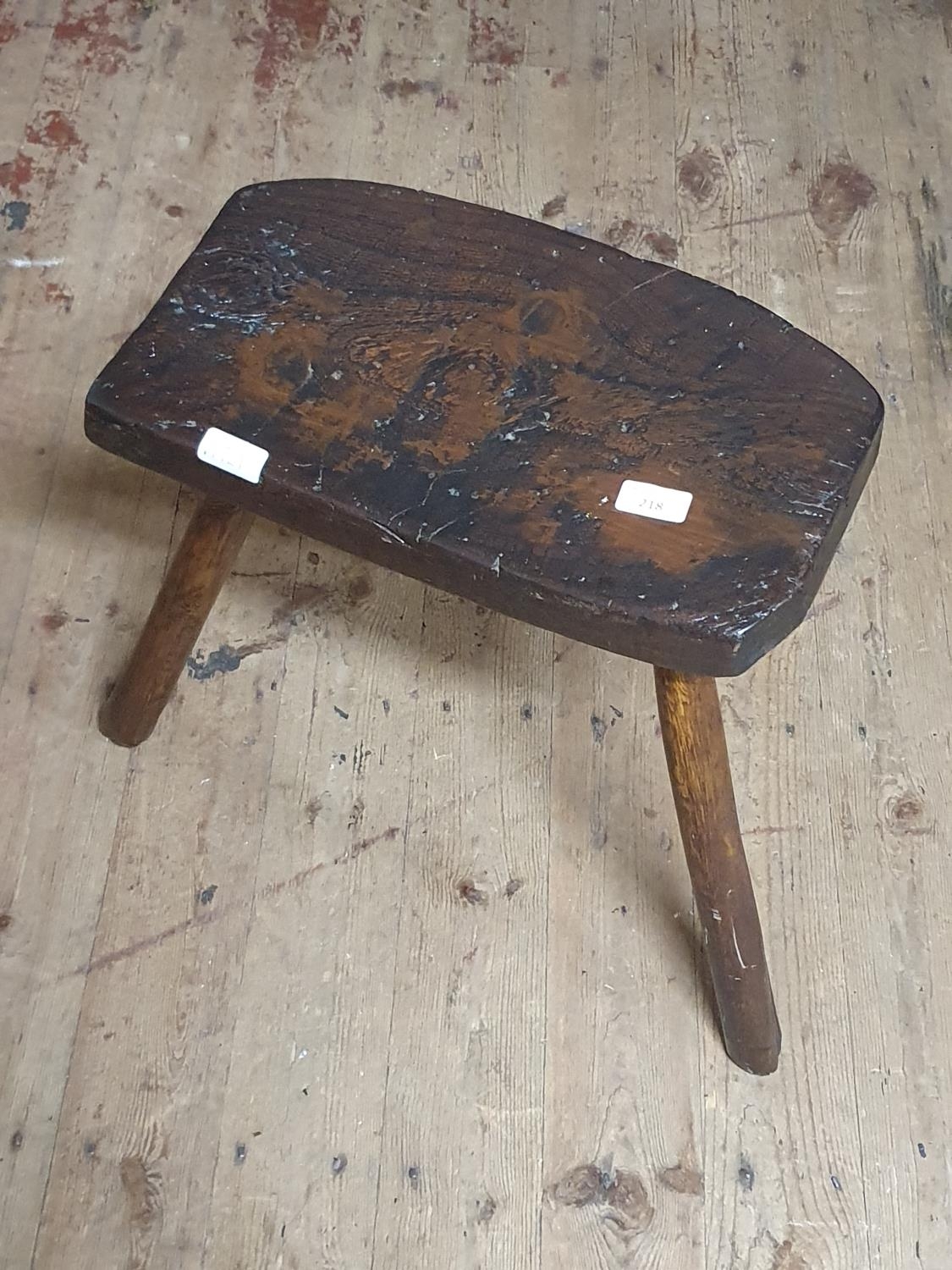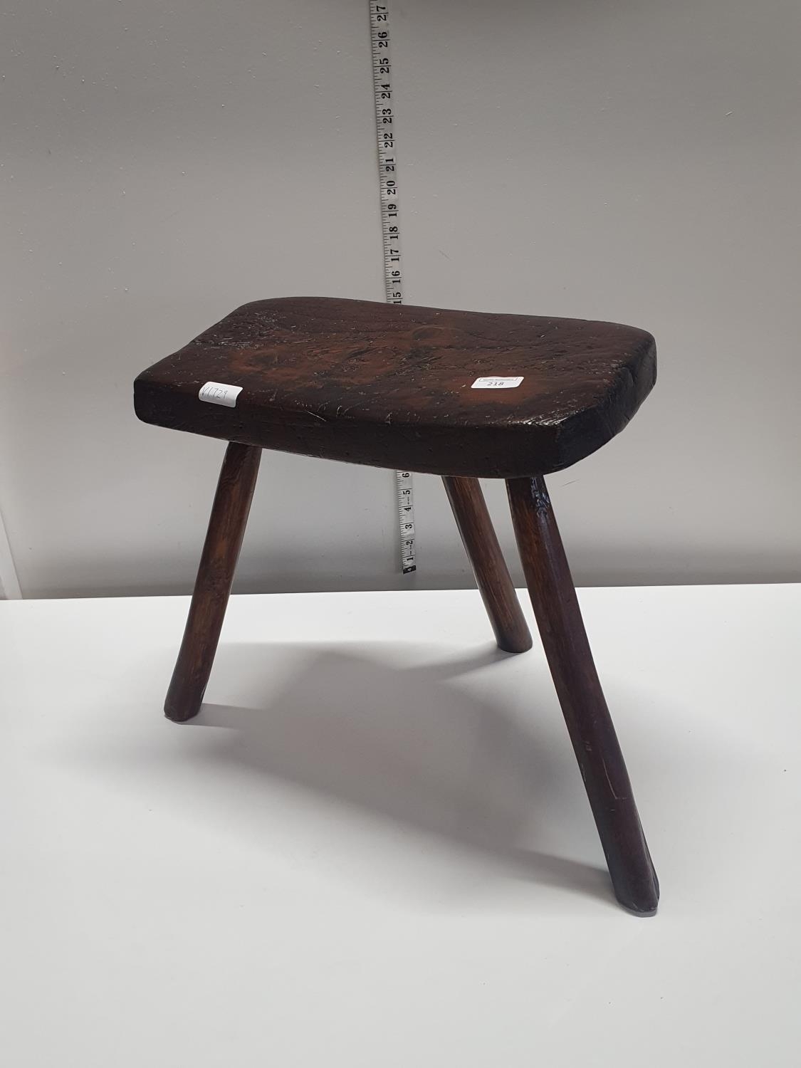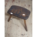 A antique oak three legged stool h41cm, shipping unavailable