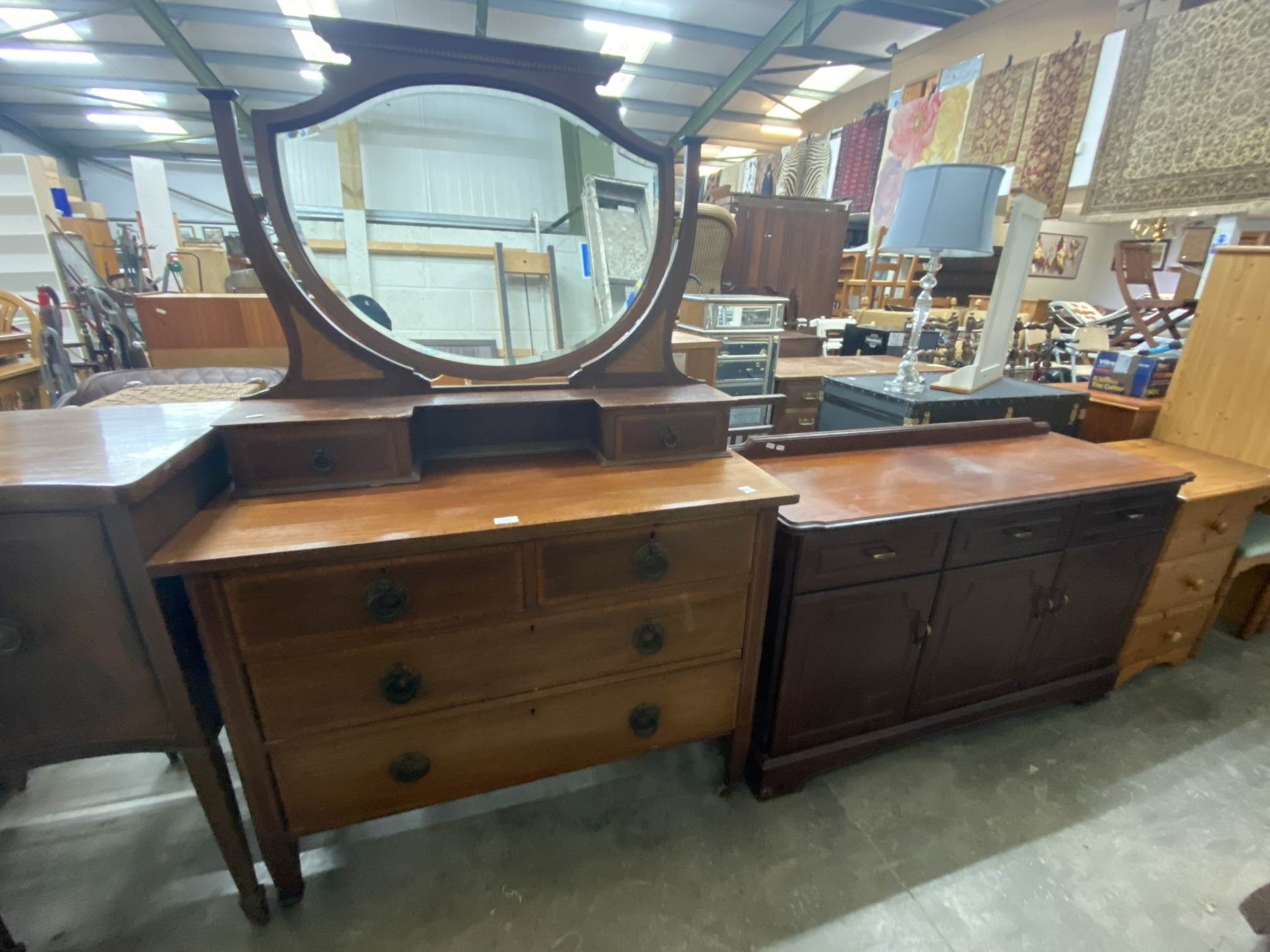 Victorian mahogany dressing chest 165H 107W 47D & a mahogany effect sideboard 82H 130W 44D