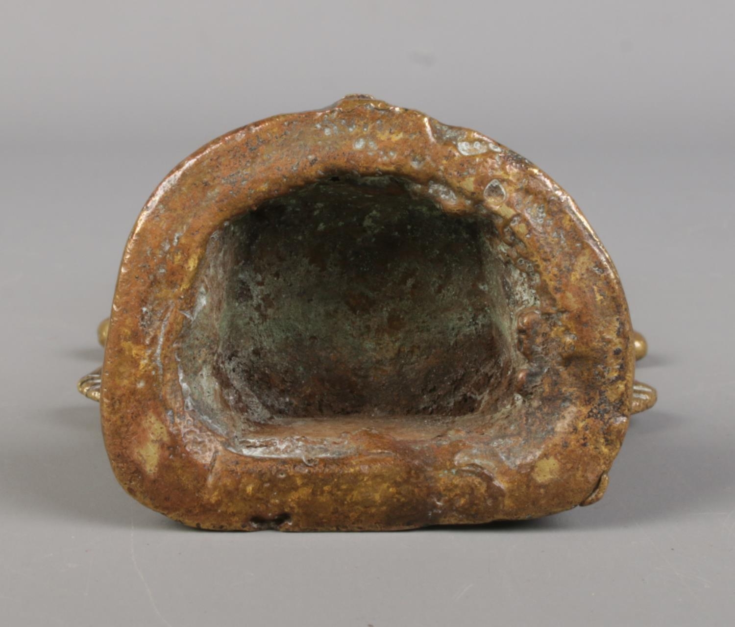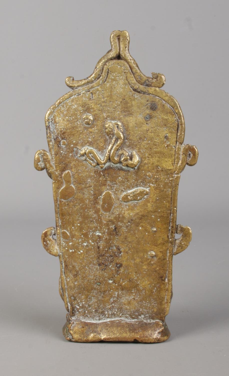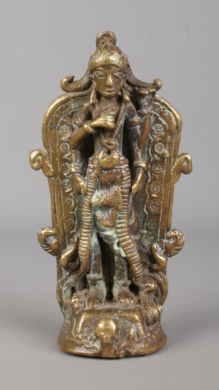 A bronze statue of a four armed deity, possibly Vishnu. Height 14cm.