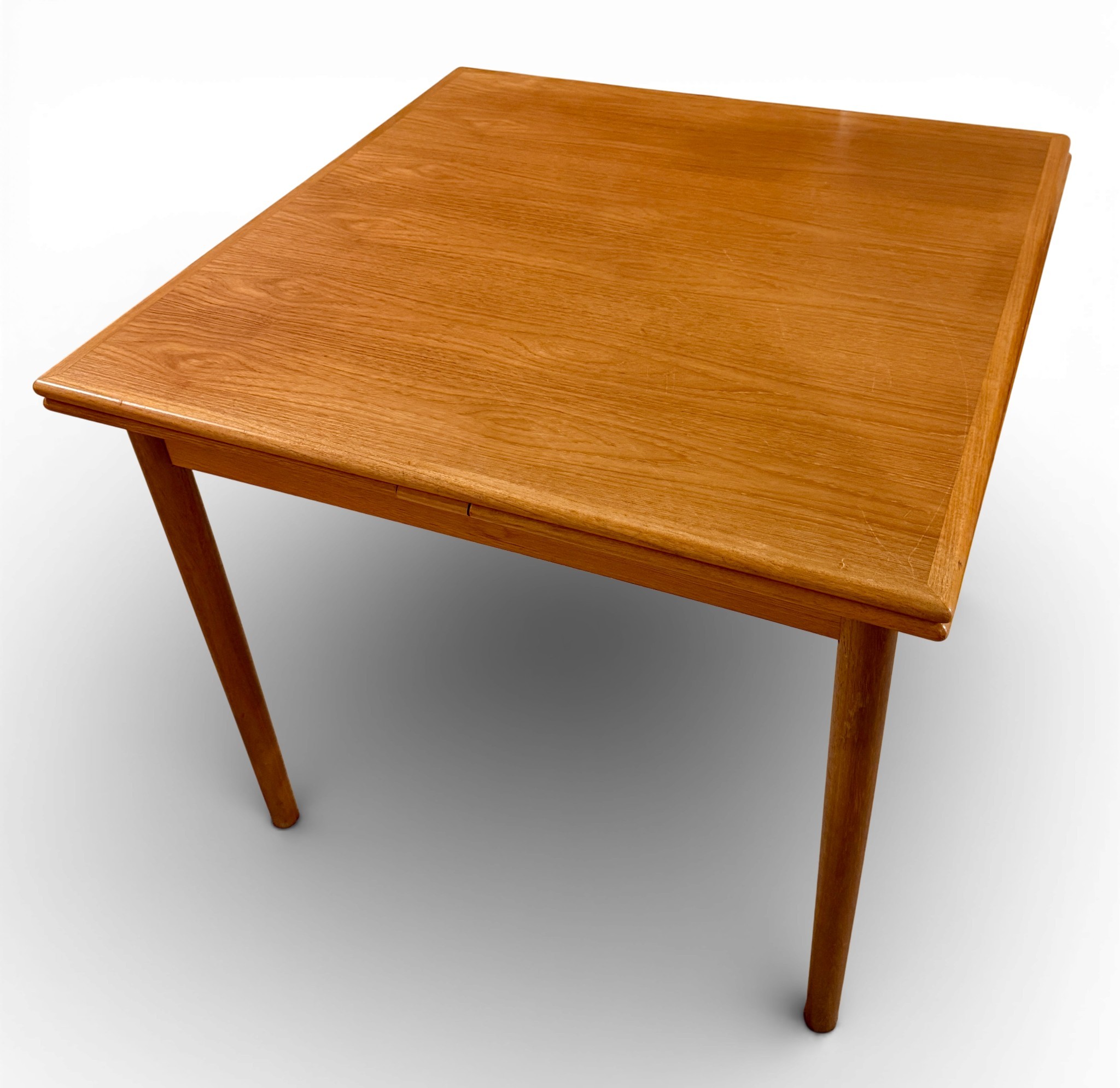 A Möbler Denmark extending dining table. Extended 164cm l x 84cm w x 75cm h. Closed 85cm x 85cm.