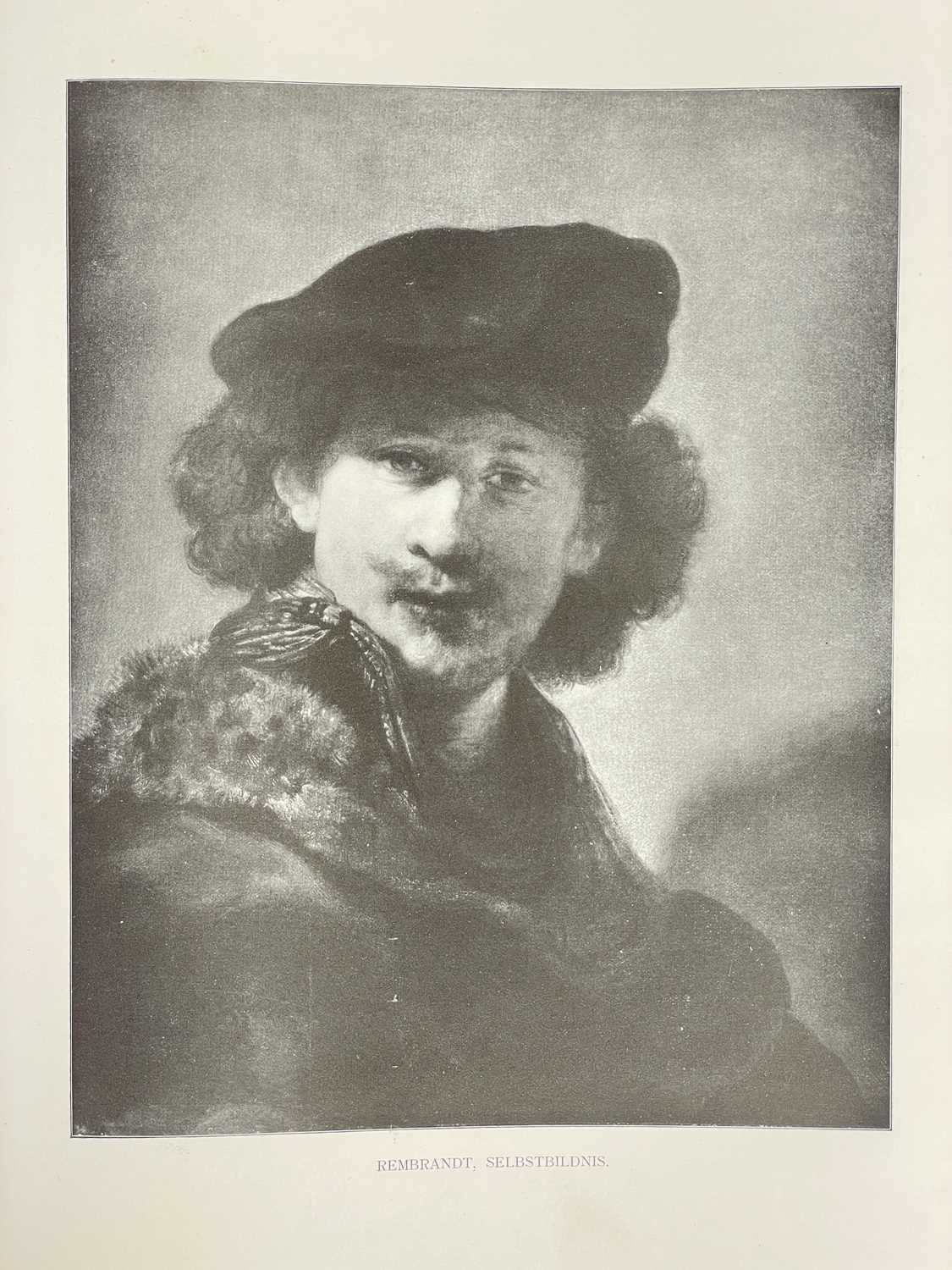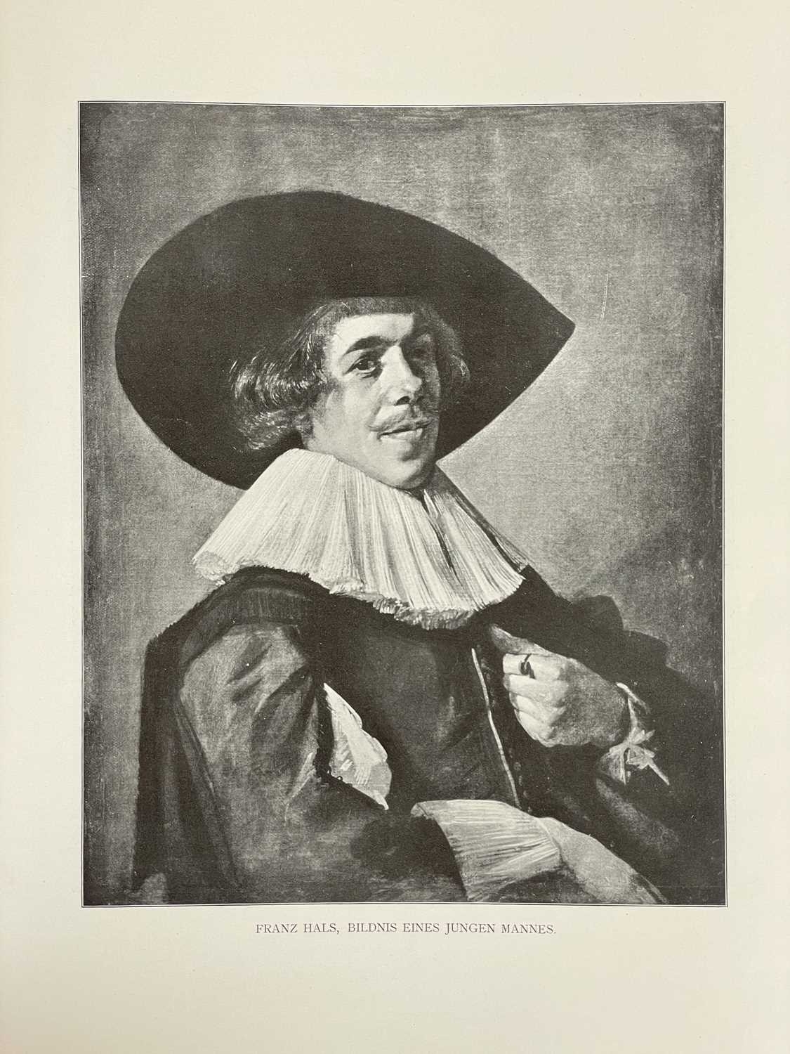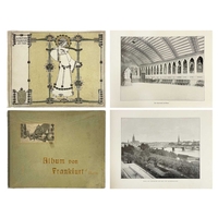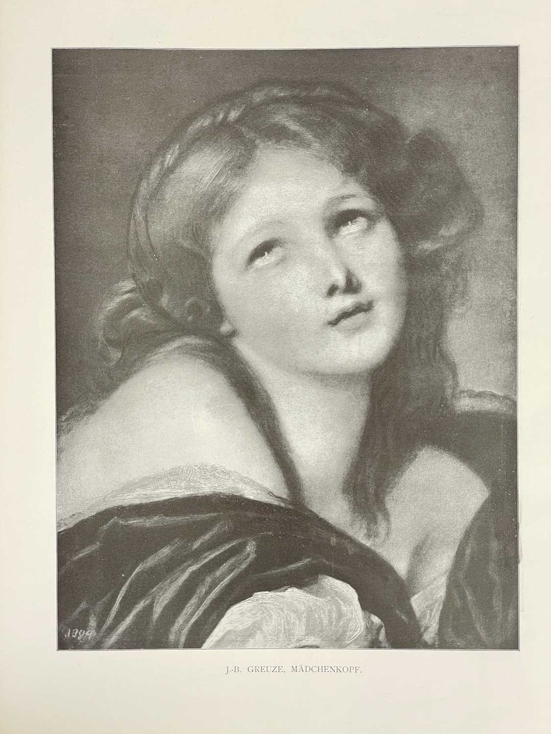 Jessie M. King designs Werke Alter Meister, Kõnigl. Museum Berlin Original cloth backed boards, with design in colour to the upper cover of a girl with birds and flowers by Jessie M. King, a little shelf wear, decorative endpapers, tear to joint of ffep, black and white repoductions, small amount of spoiling to margins, generally vg, Globus Verlag, Berlin, 1902; with another good copy, bumped with a small amount of loss to printed covers. (2) Provenance From the collection of Colin White (1927–2022) (see lot 1 for more information)