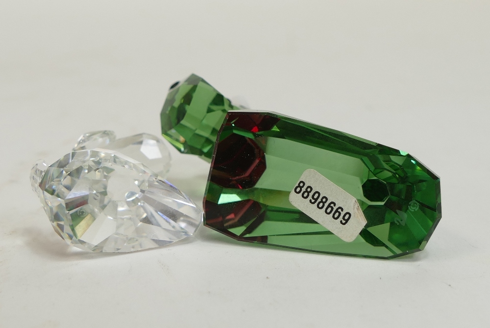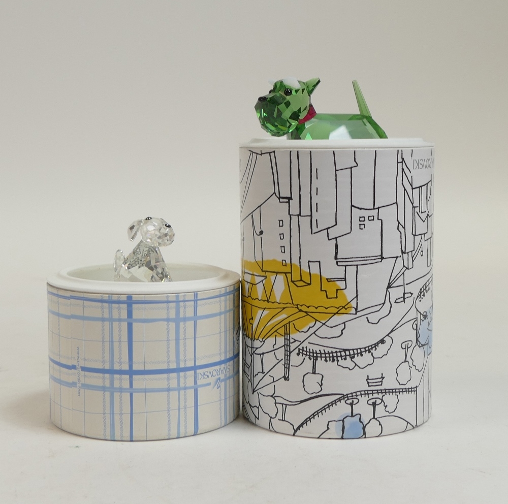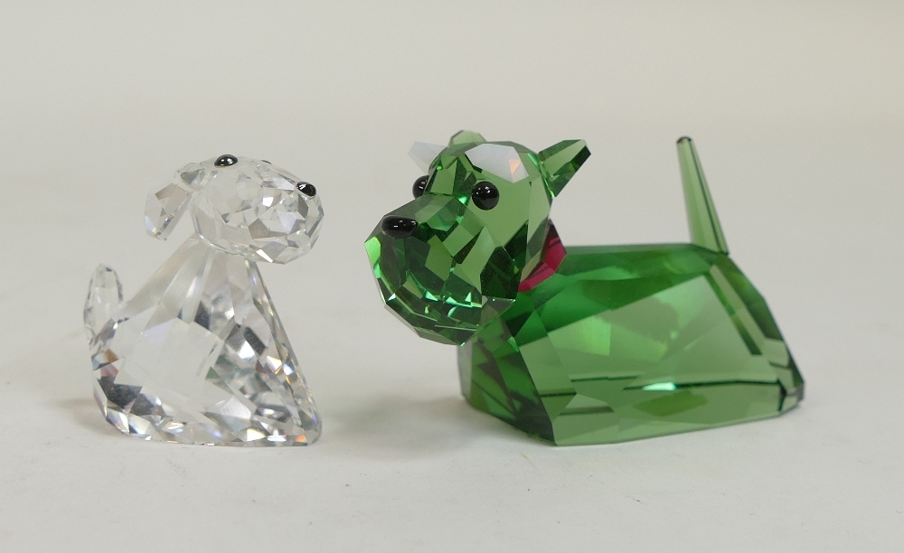 Swarovski Crystal The Gang of Dogs Collection to include:- Scottie (1089199) retired 2012 designed by Edith Mair presented in erinite crystal with white eyebrows together with Lovlots Dog Robbie B (840908) retired 2007 designed by Elke Kumar presented in clear crystal with black eyes. tallest:-4cm. boxed with certificates of authenticity (2)