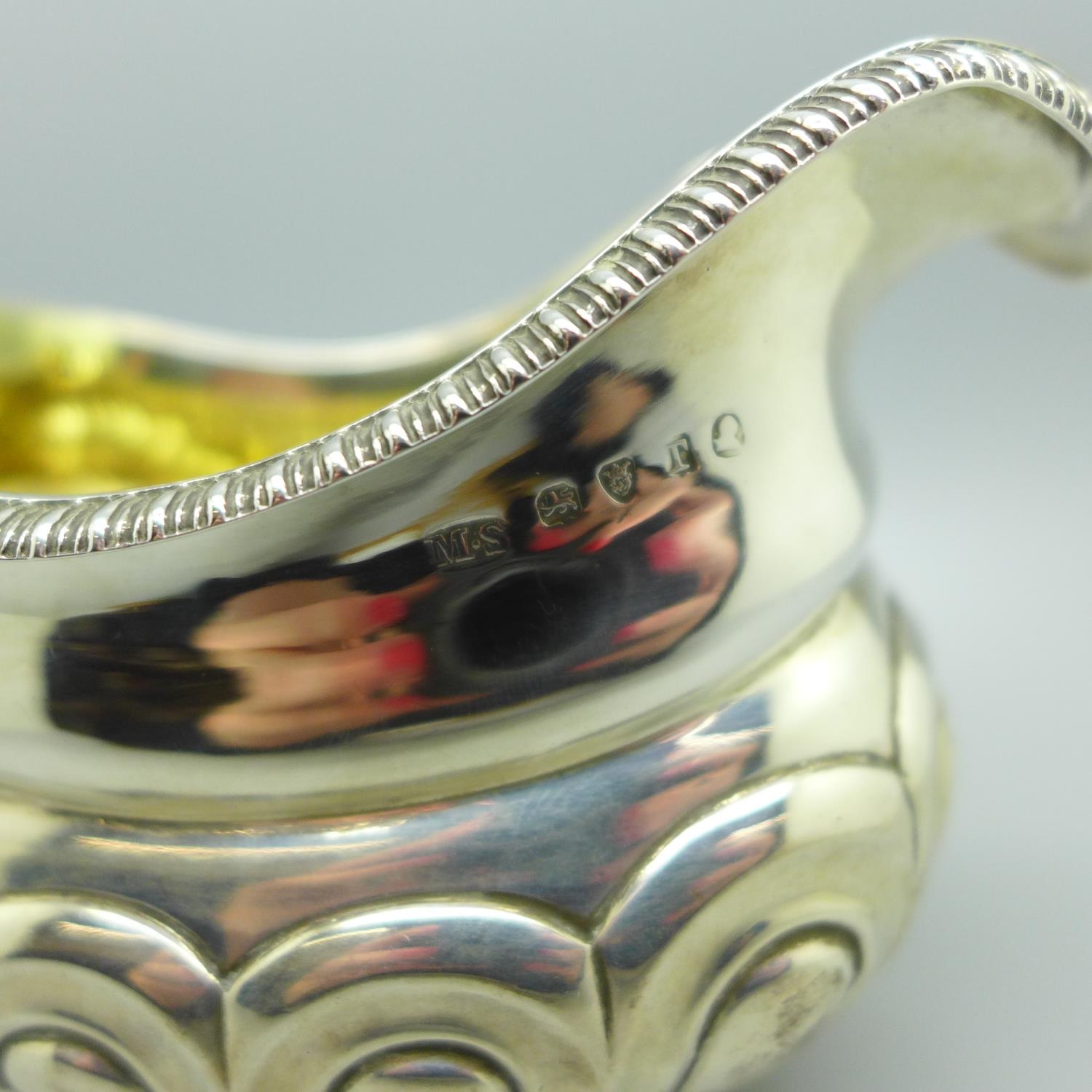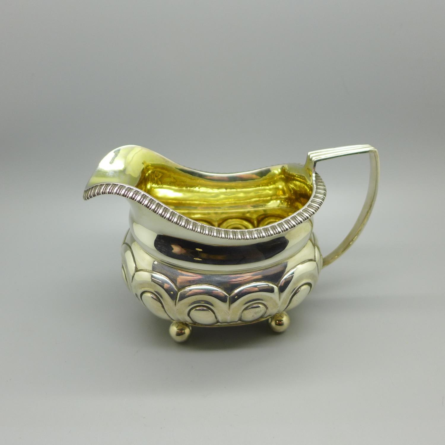 A George III silver cream jug with gilt interior, London 1814, Michael Starkey, 162g