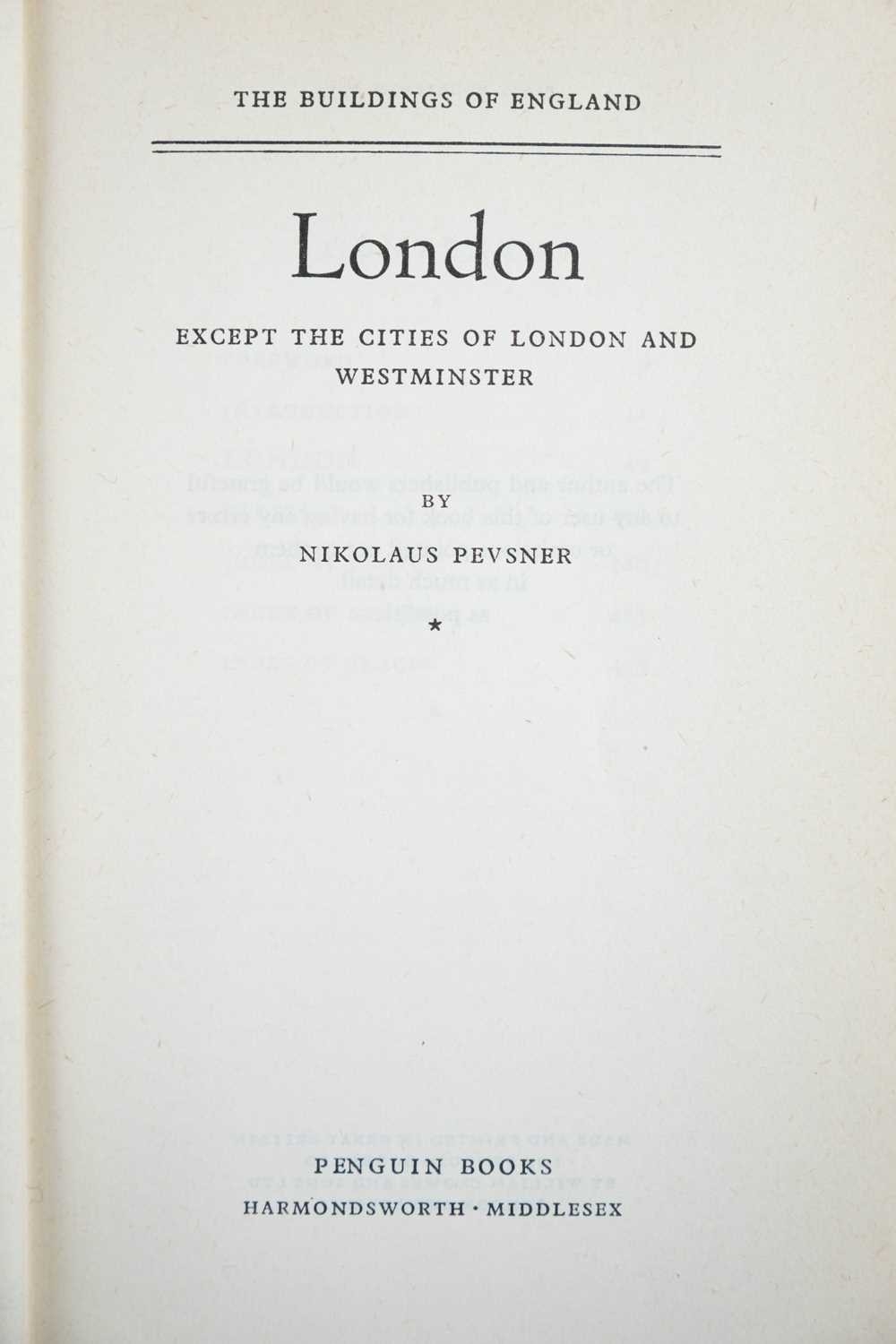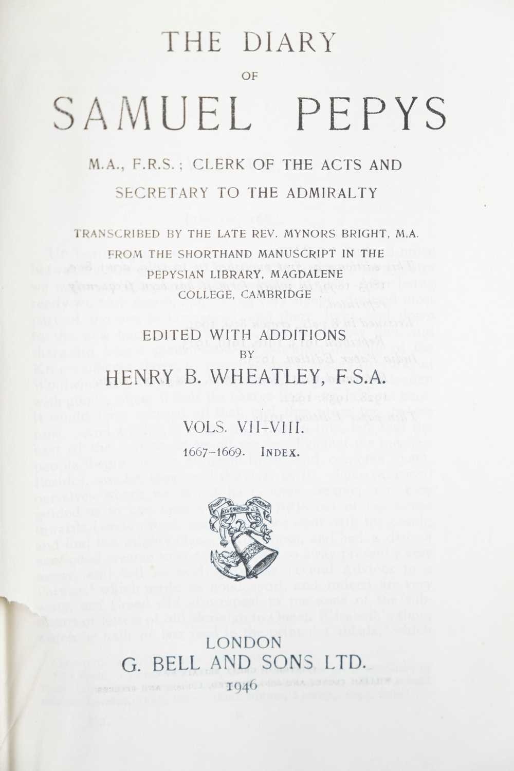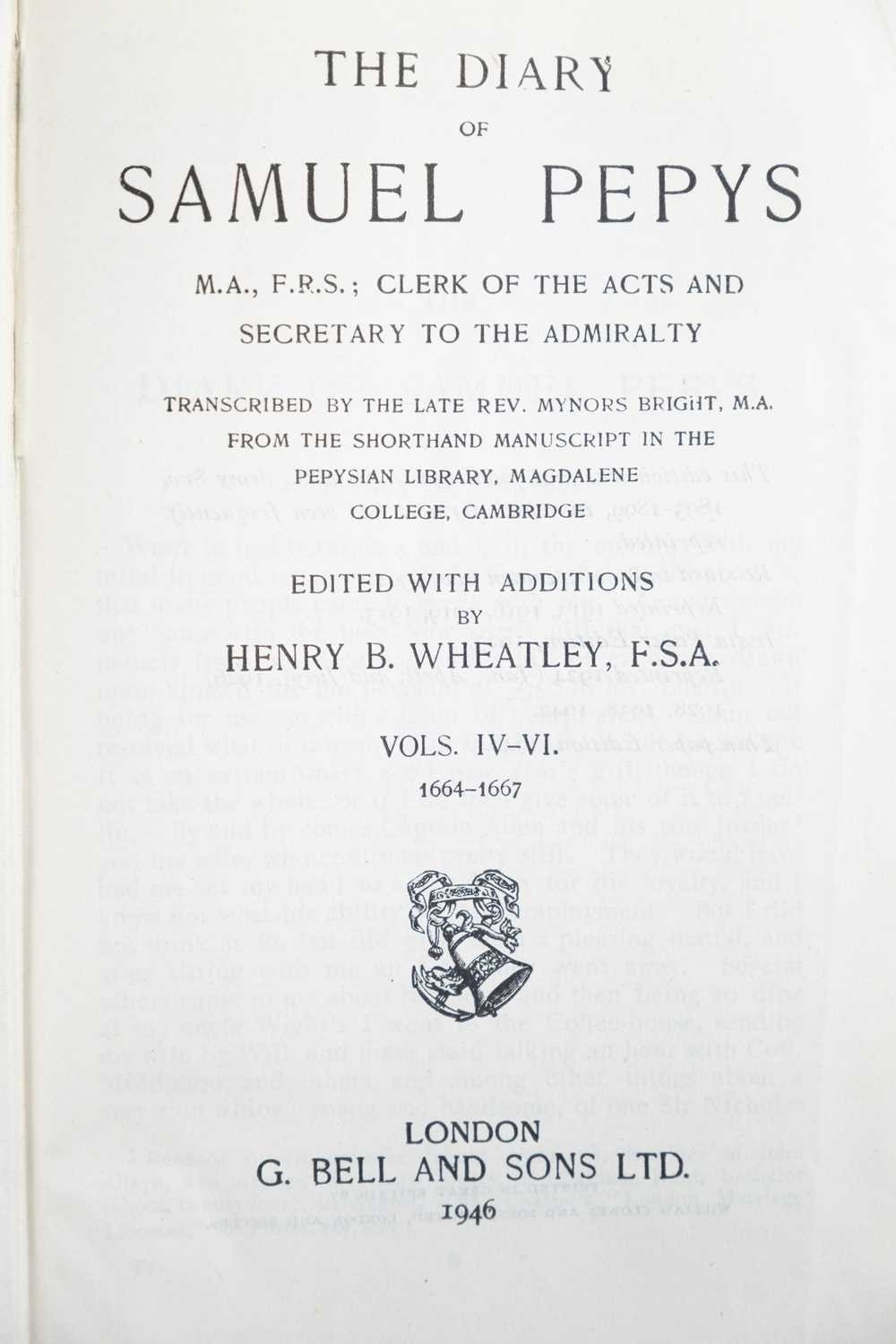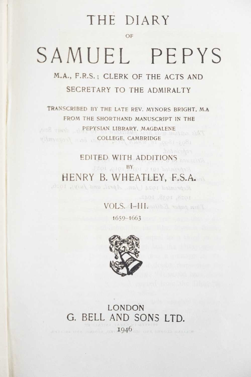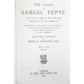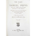 (London) Ten works Henry B. Wheatley (ed). 'The Diary of Samuel Pepys,' thin paper edition, six volumes in three, original cloths, torn dj's with loss, frontis to vol I, vg, G. Bell and Sons, London, 1946; Nikolaus Pevsner. 'London. Except The Cities of London and Westiminster,' first edition, unclipped dj, some toning, vg, Penguin Books, Harmondsworth, 1952; With eight other works. (10)