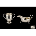 Silver Sauce-boat Swan Neck and Hoofed Feet with Curved C Handle. Hallmark Chester - Date Letter Rubbed, 142.6 grams + A Twin Handle Silver Cup, Hallmark Birmingham 1920, 91.9 grams. Height 3.25 Inches - 8.20 cm.
