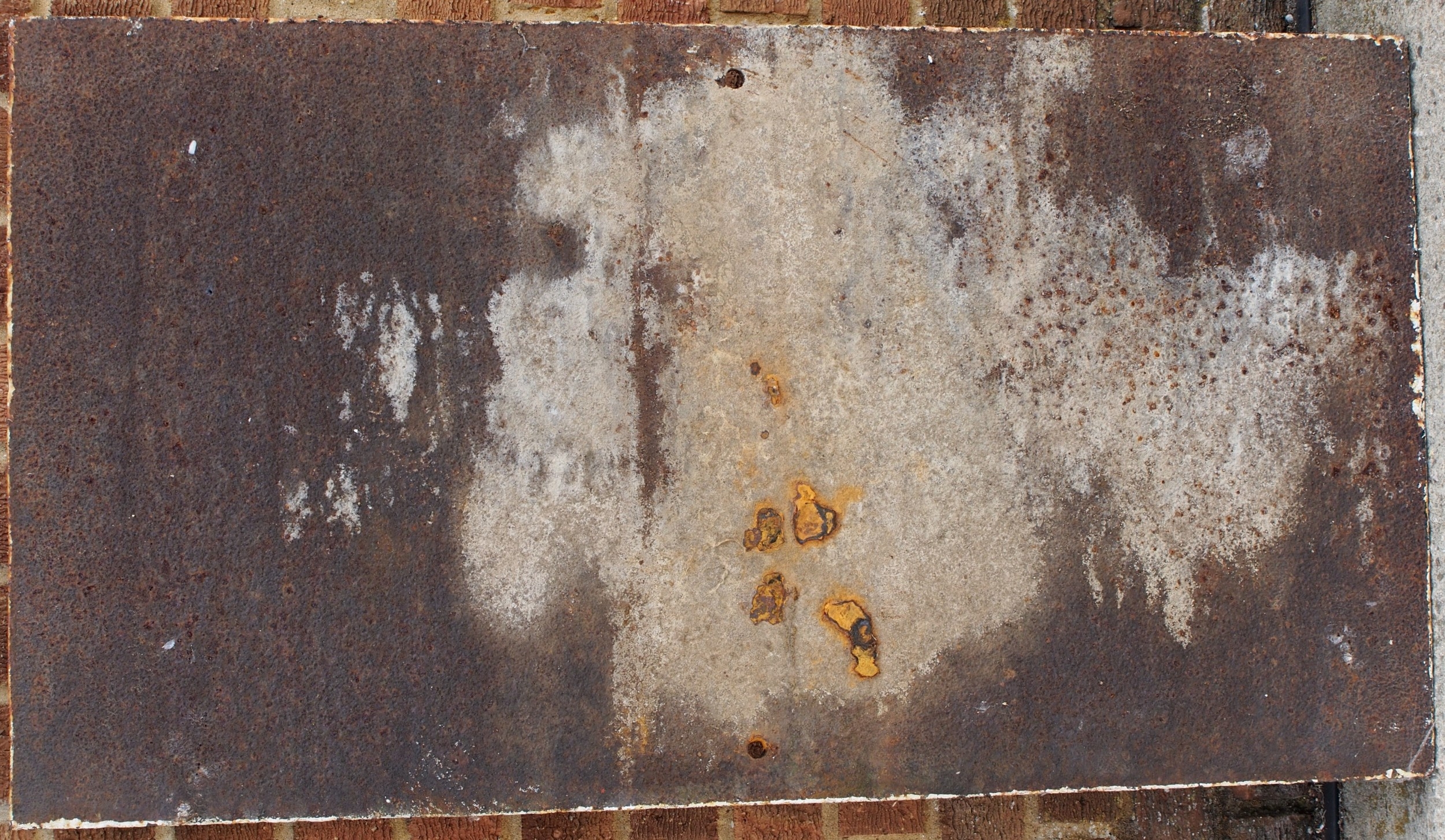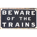 Large C/I notice "BEWARE OF THE TRAINS" 37"x 20", original condition, unknown origin. (PDESK) (Dispatch by Mailboxes/Collect from Banbury Depot)