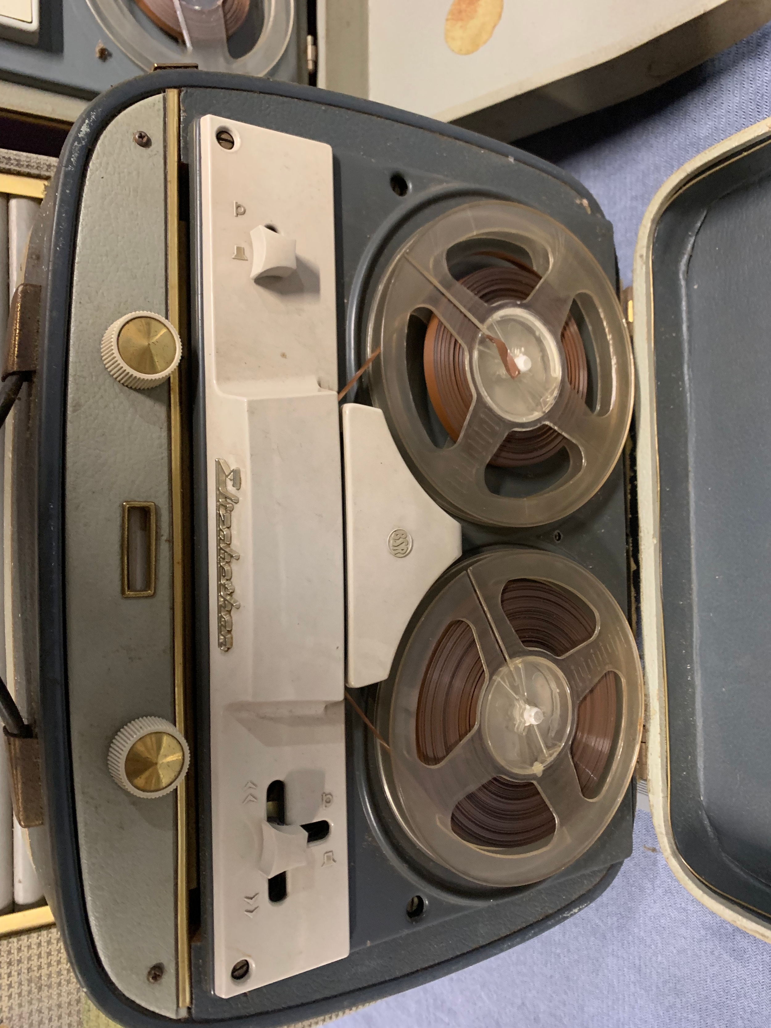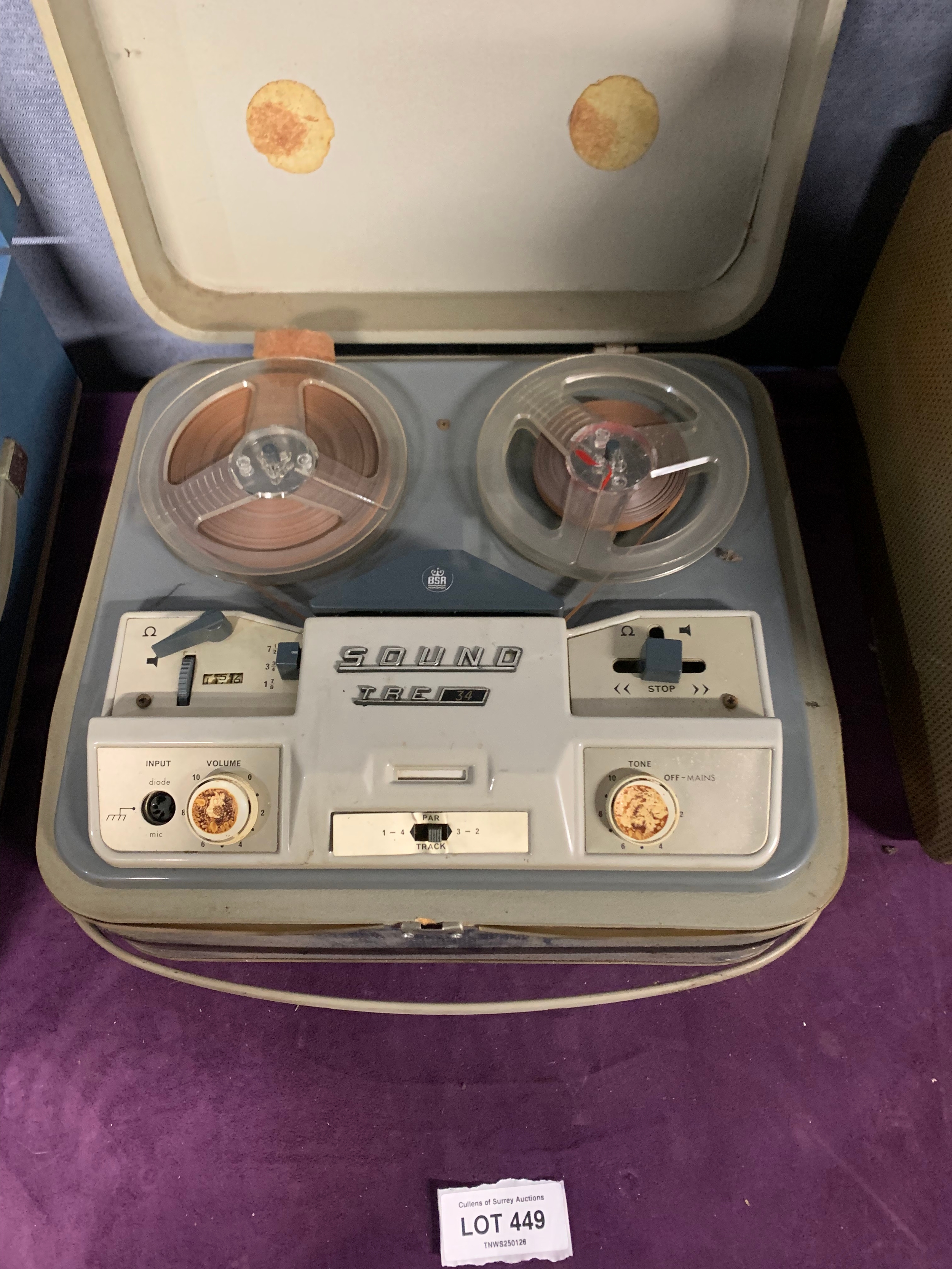 A vintage collection of 2 Turn tables and reel to reel tape recorders including EAR Record player, Elizabethan Reel to Reel and BSR (Birmingham sound reproducers) Sound Tre 34 reel to reel