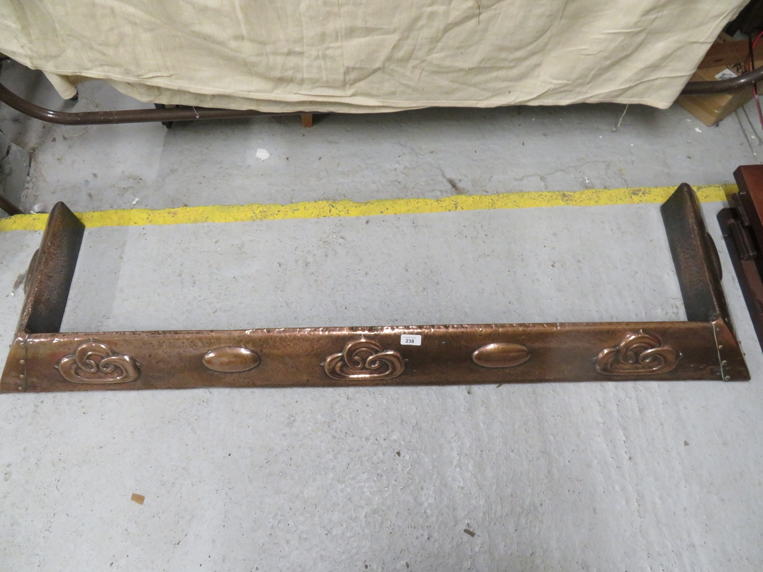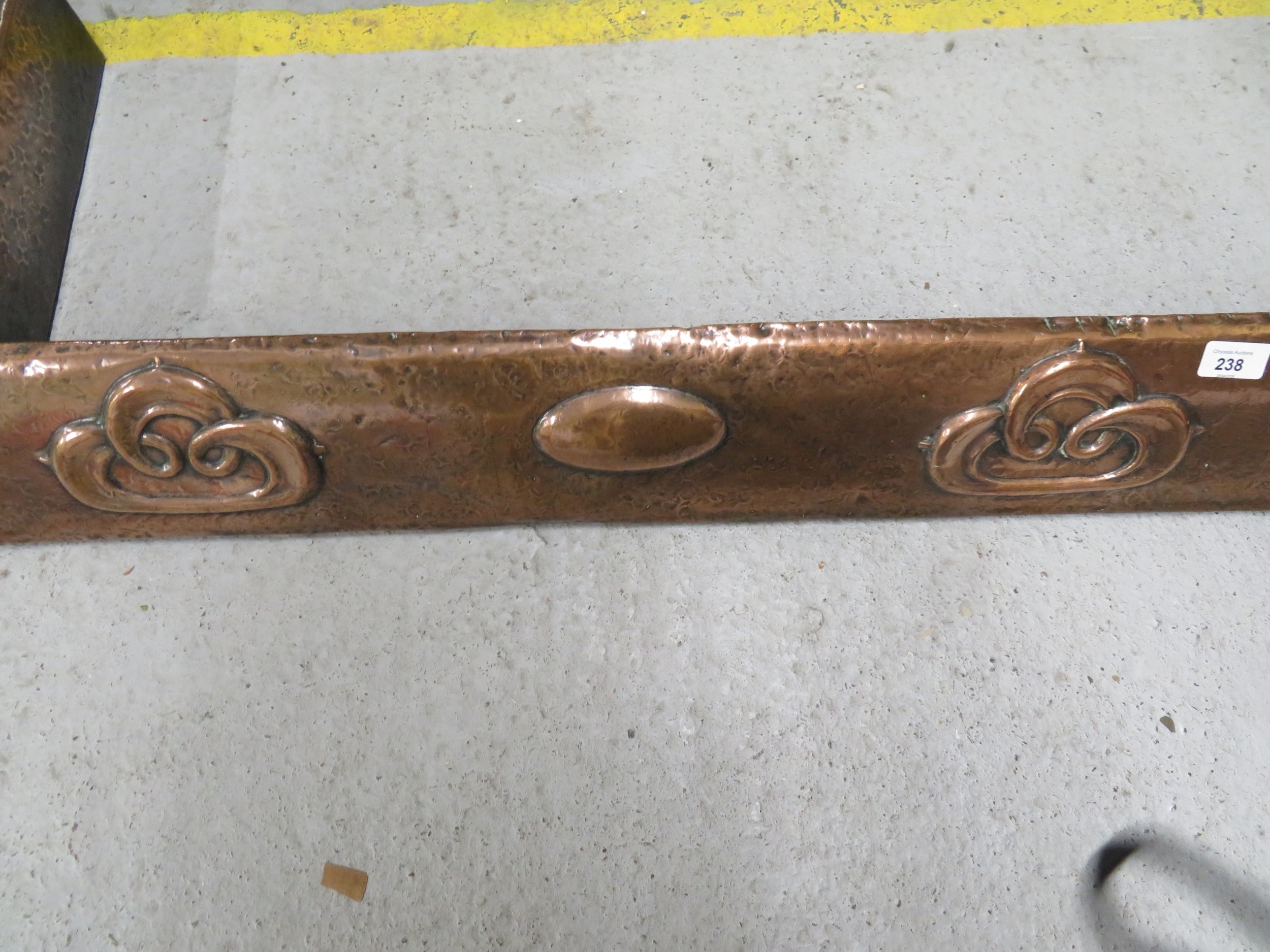 Art Nouveau beaten copper fire kerb