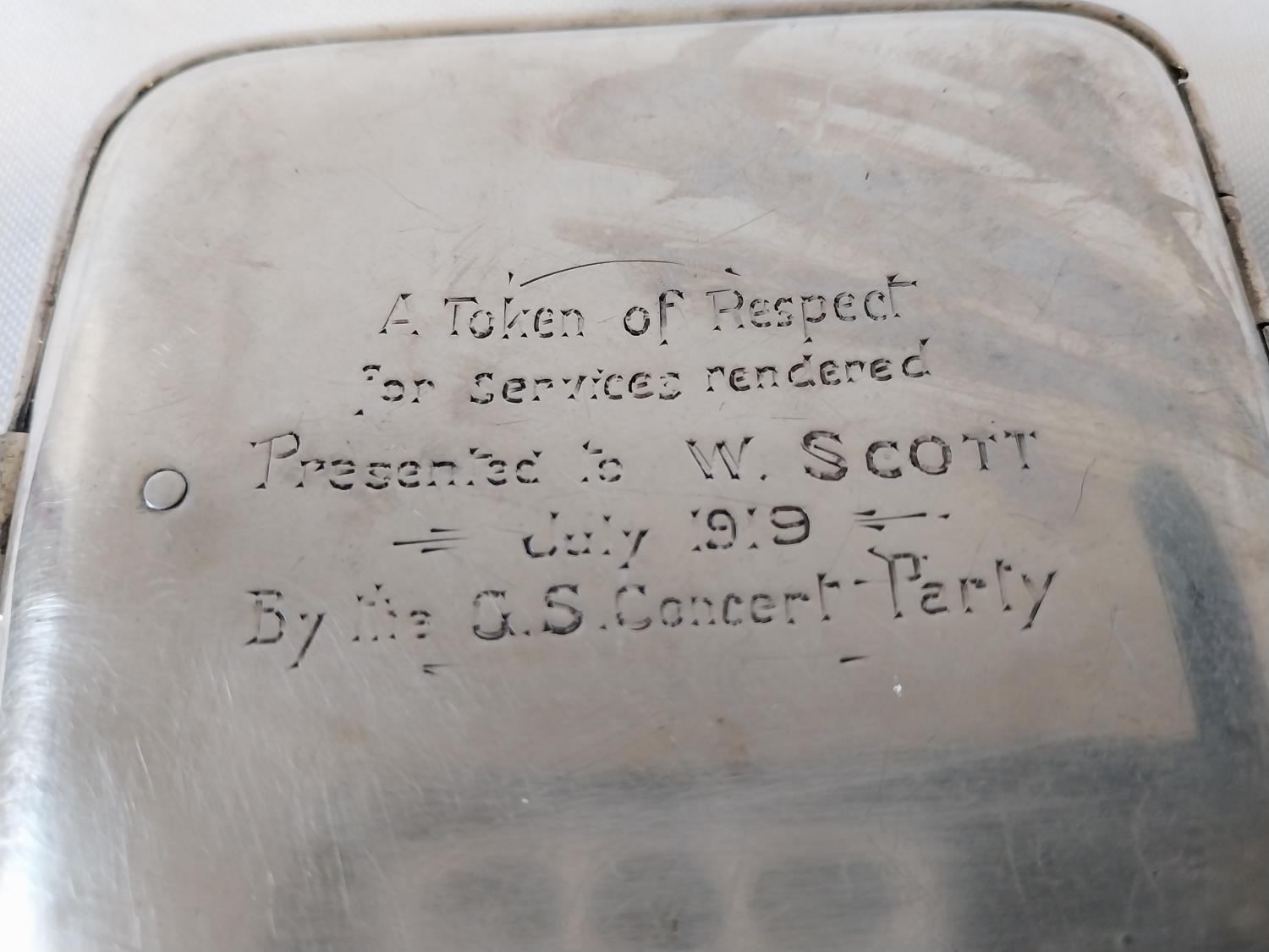 HM Silver cigarette case WW1 presented by G.S. Concert Party c1919 108grams