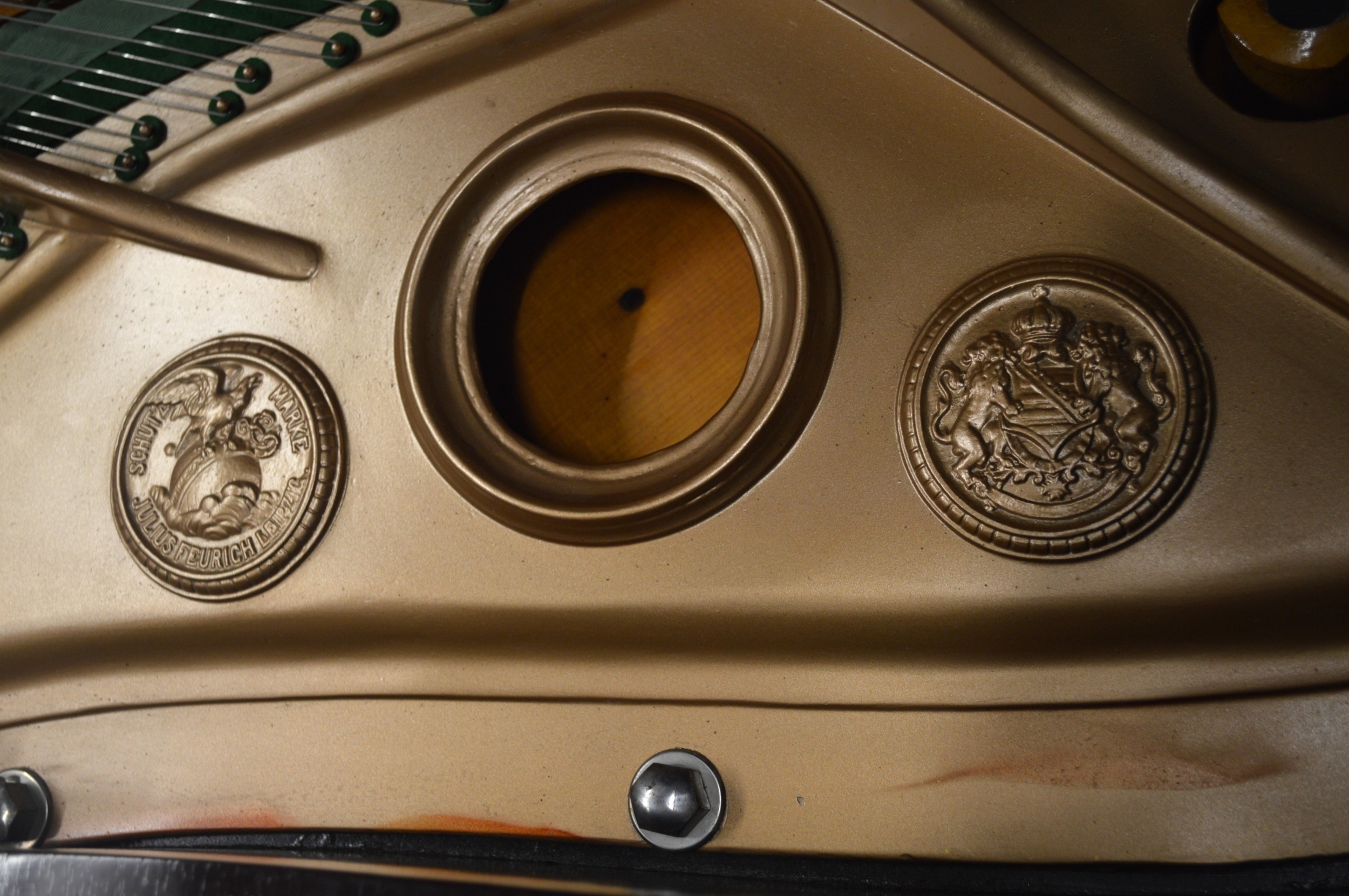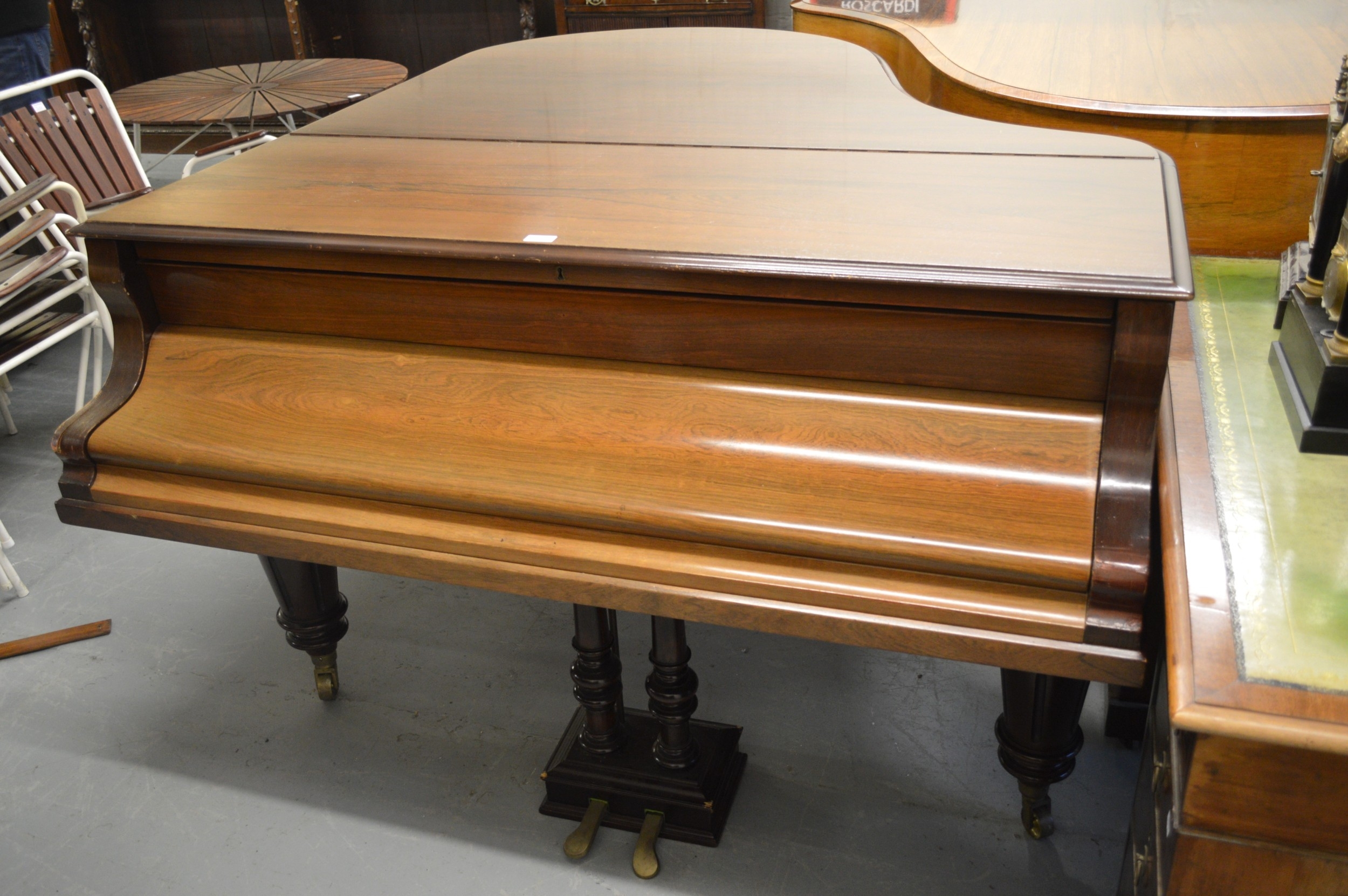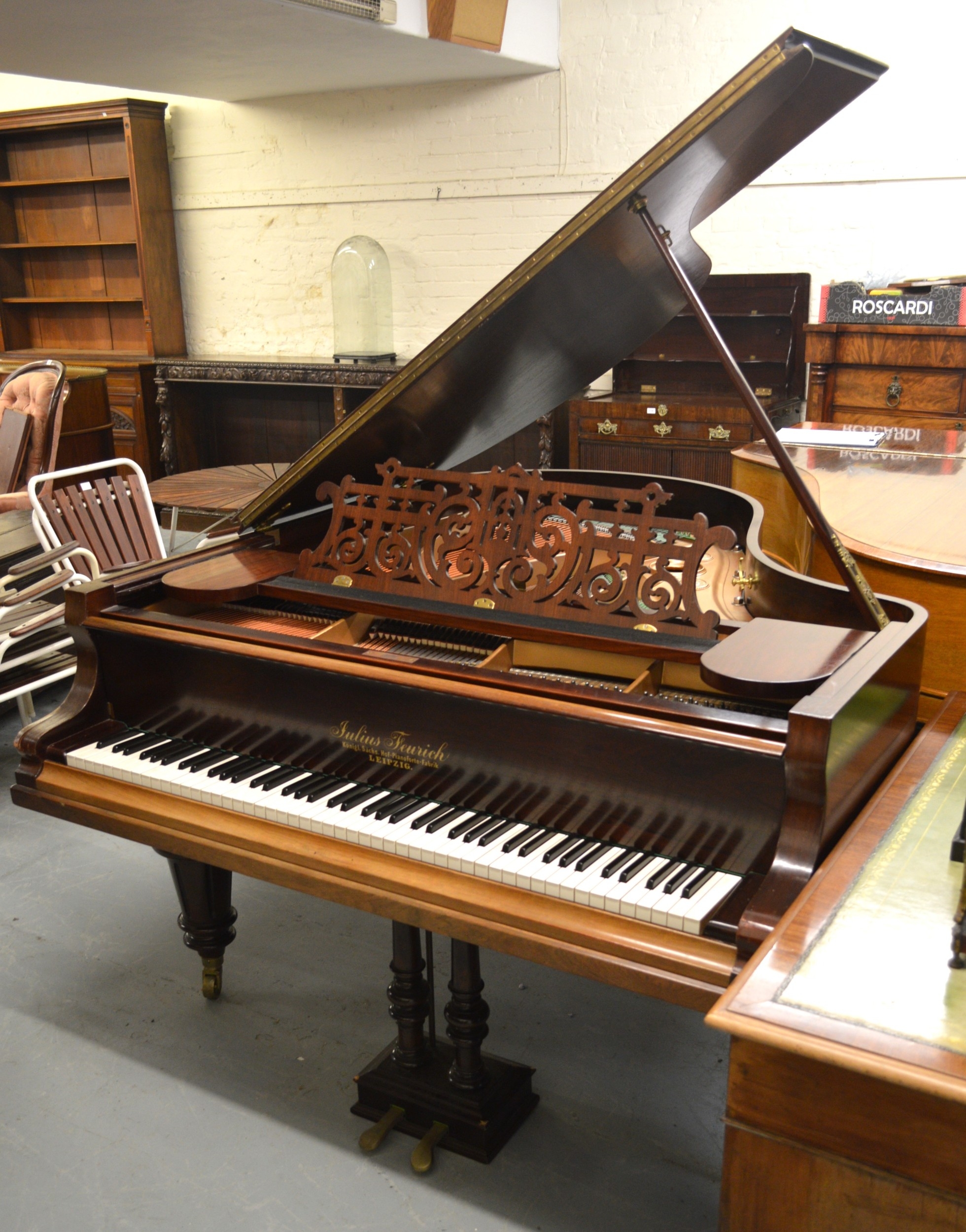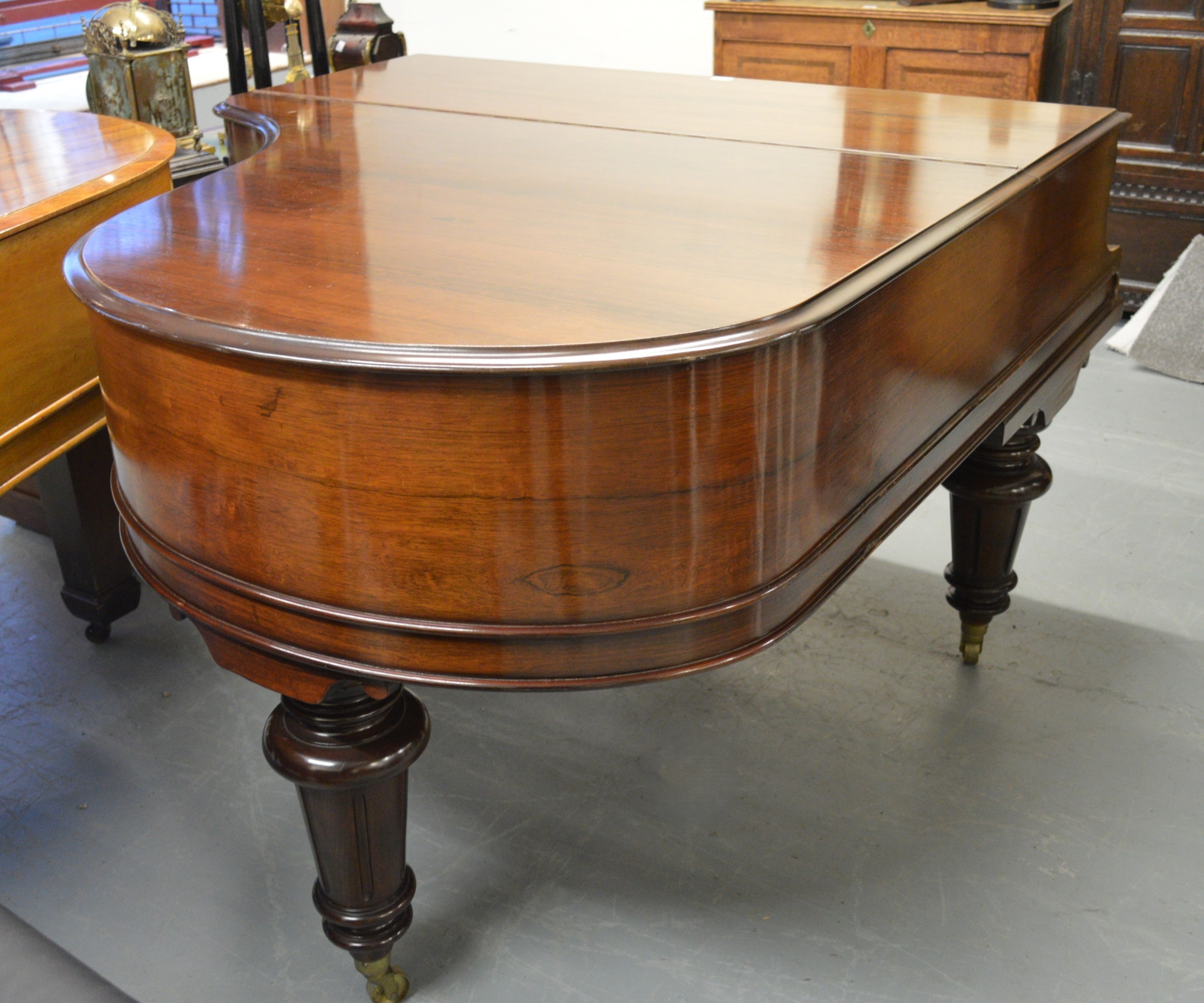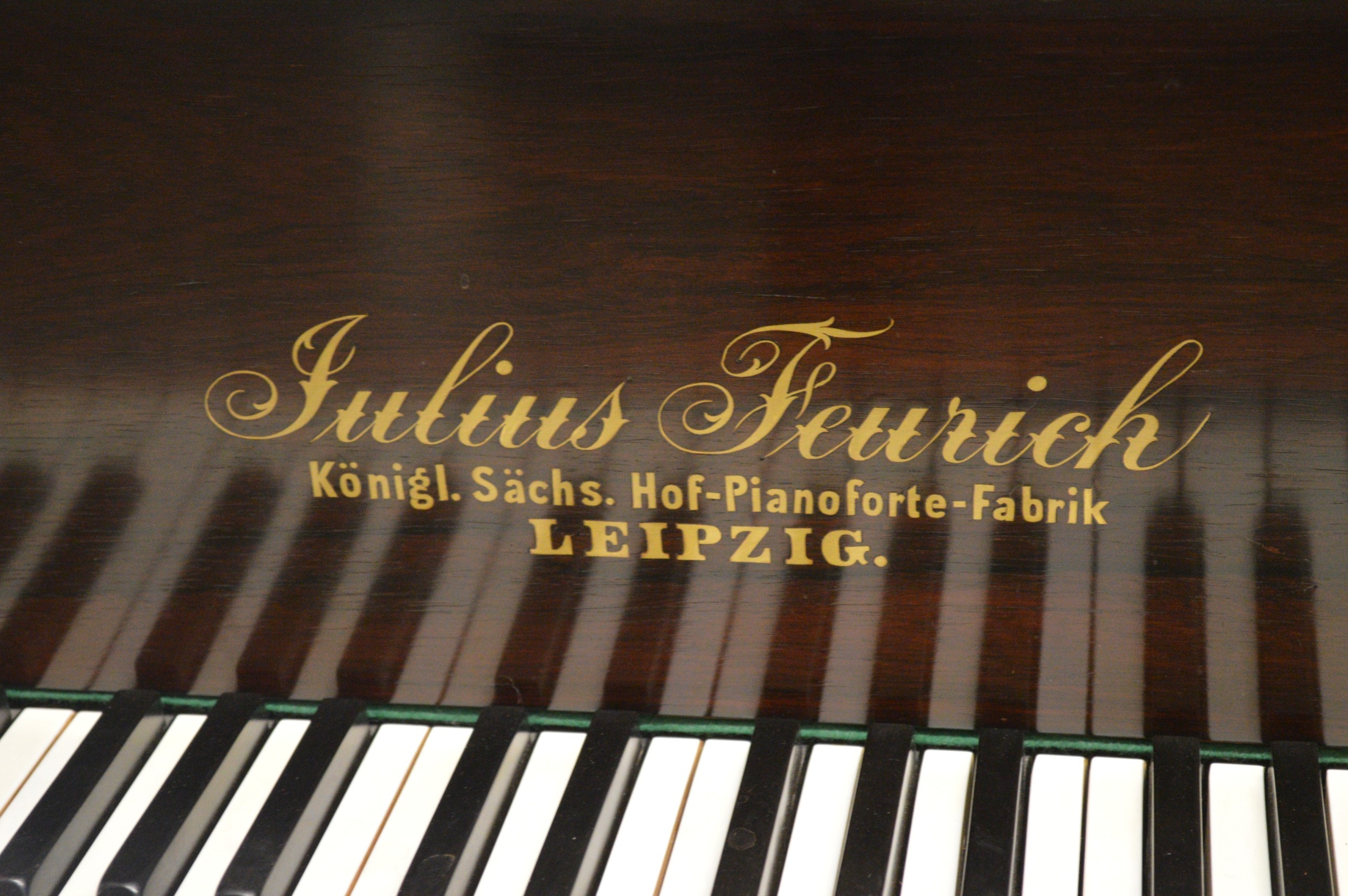Julius Feurich of Leipzig, rosewood cased baby grand piano with ivory keys raised on turned fluted tapering supports with brass casters (Ivory submission No. TYV1XCTV)