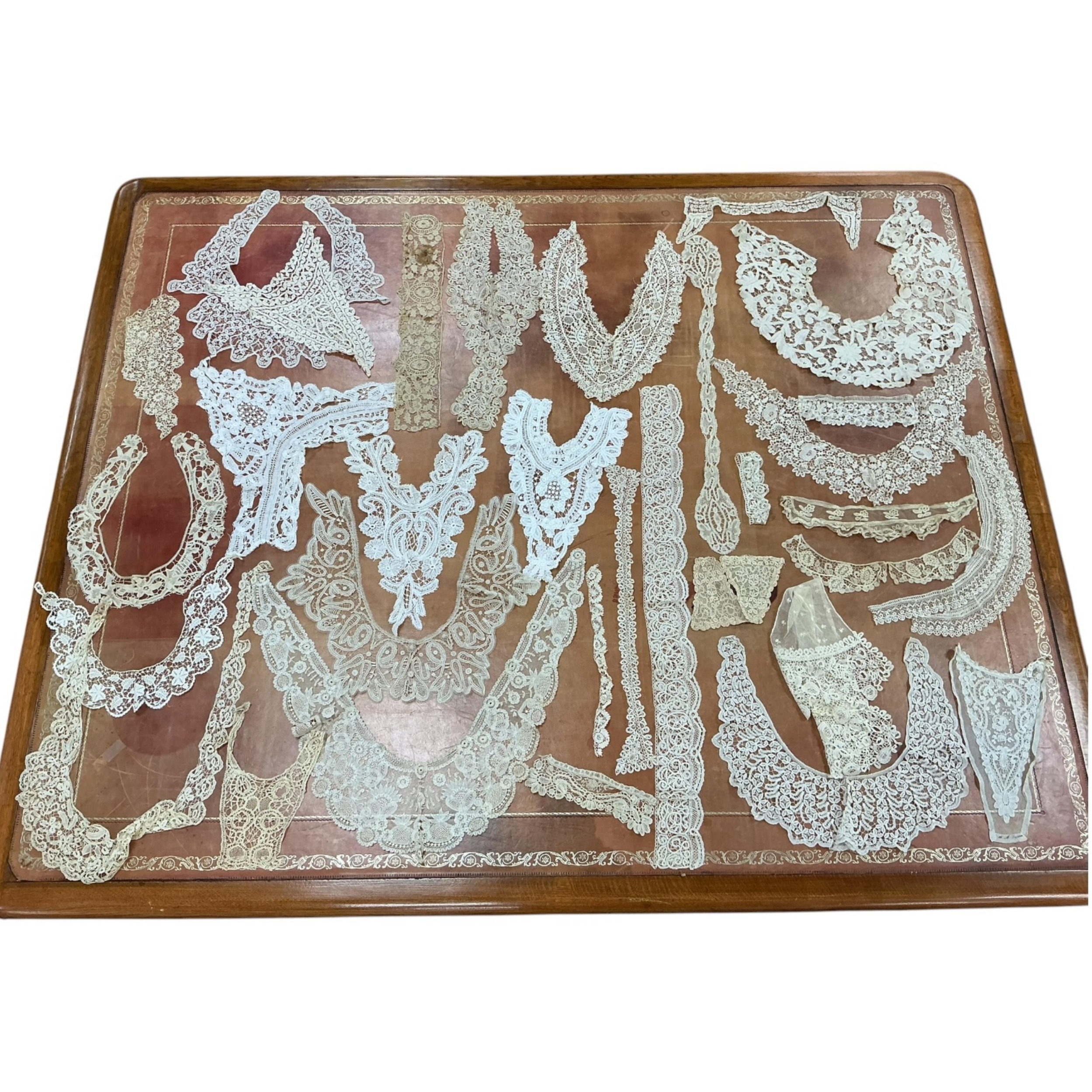 A collection of 19th century hand made lace collars, frontiers (24), cuffs, trimming, including Brussels bobbin and needle lace, Bucks, Maltese etc.