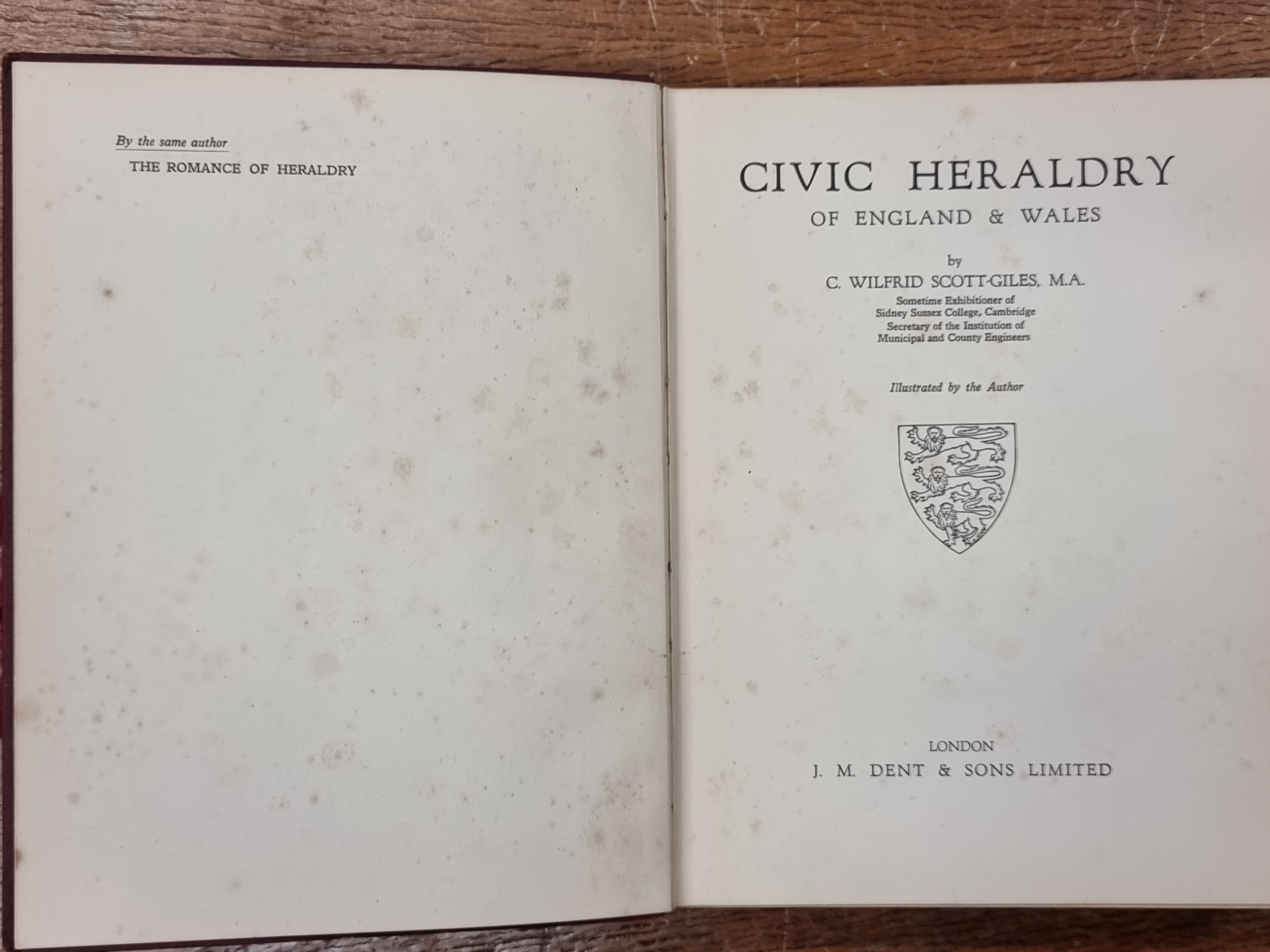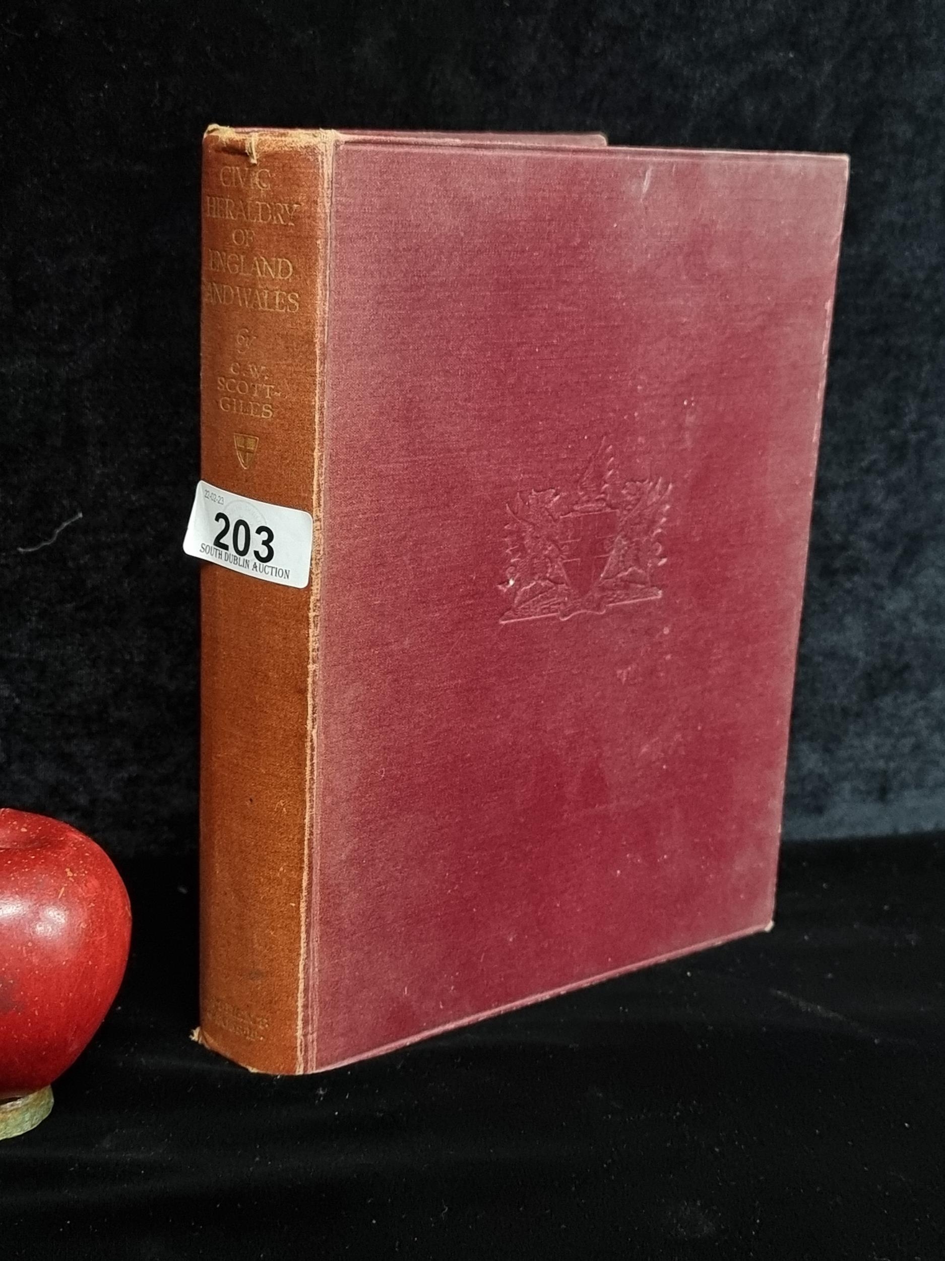 A first edition hardback copy of "Civic Heraldry Of England & Wales" by C. Wilfrid Scott-Giles, M.A. and published by Dent, London in 1933. In very good condition and filled with wonderful illustrations.