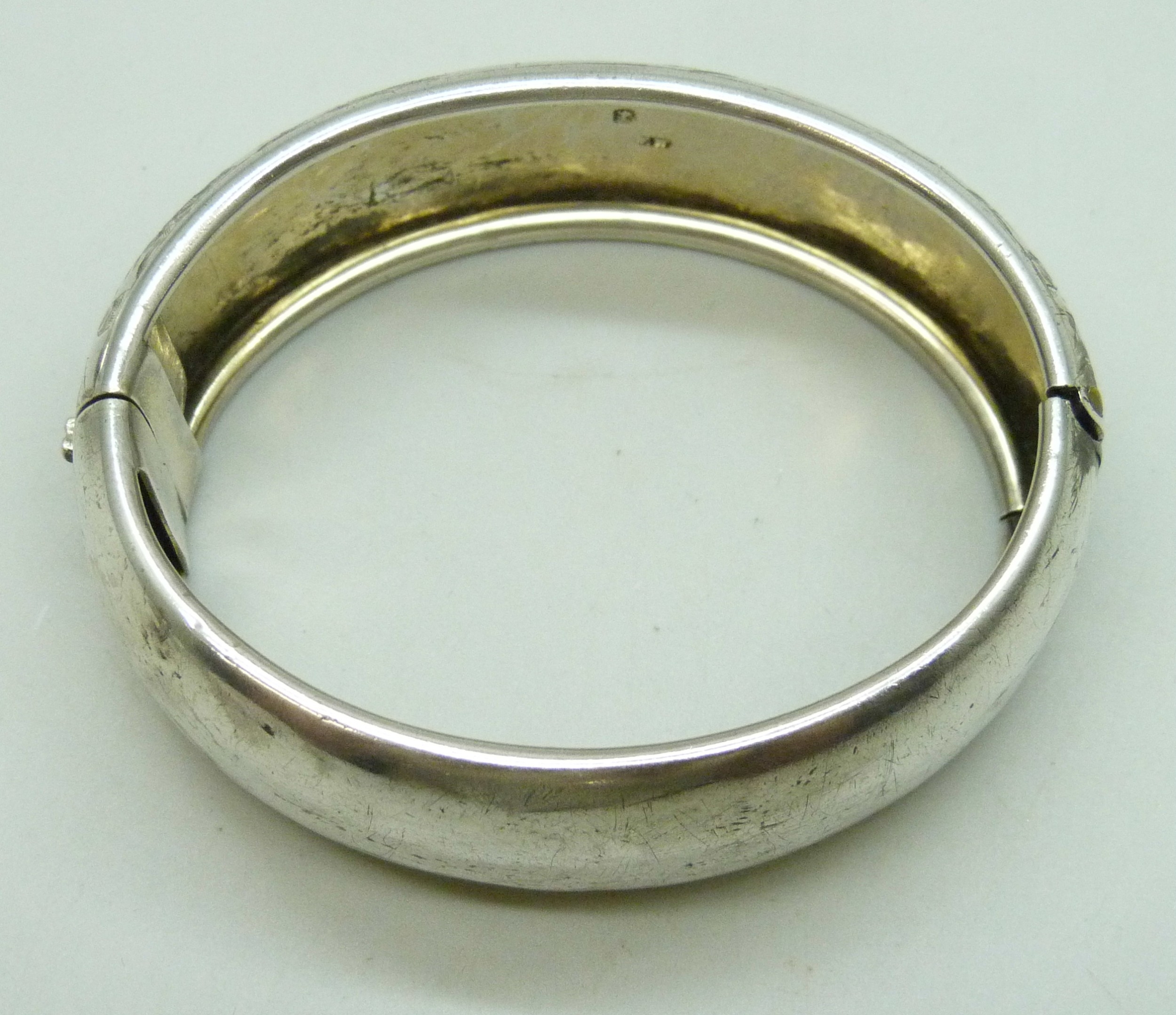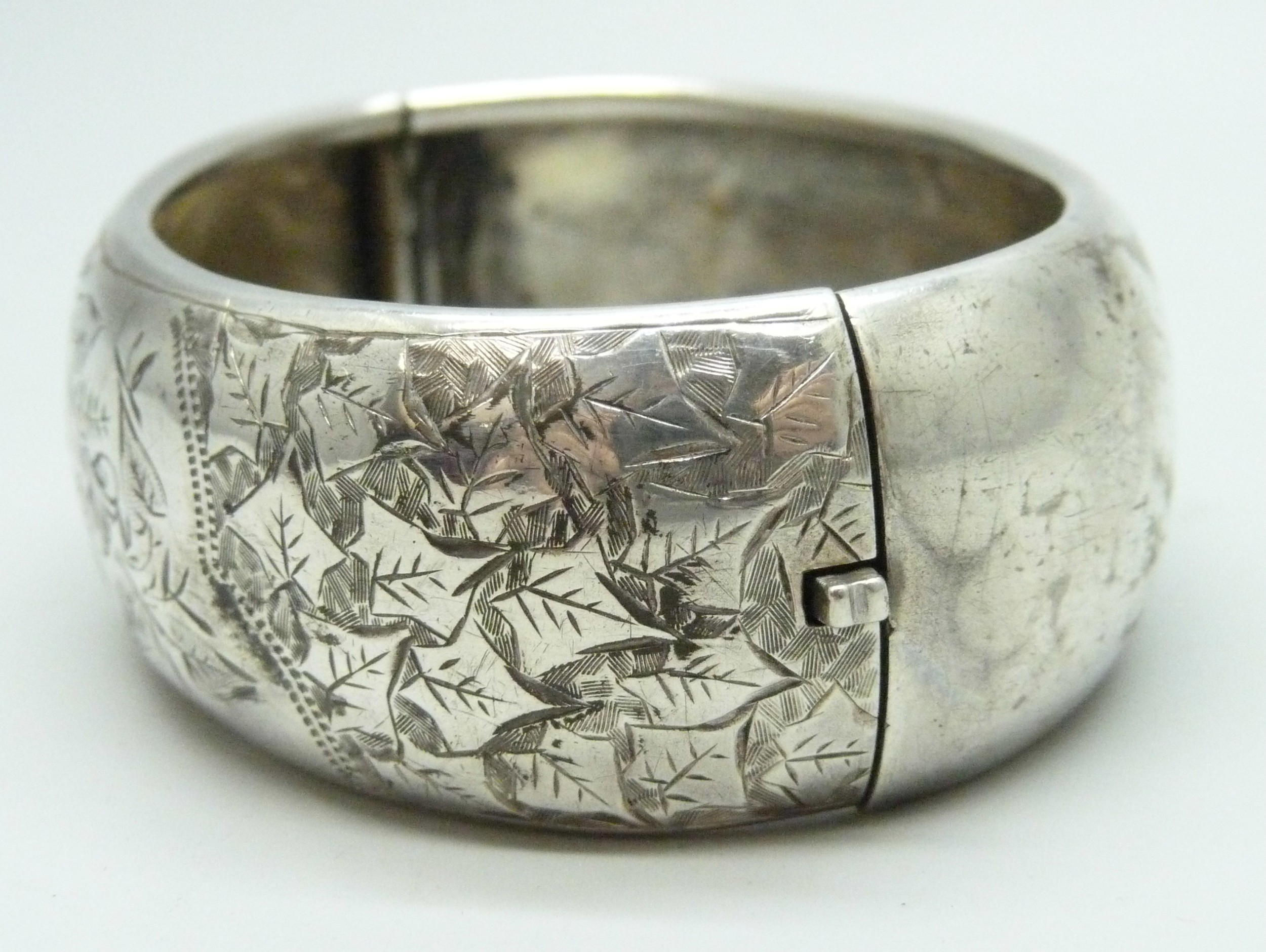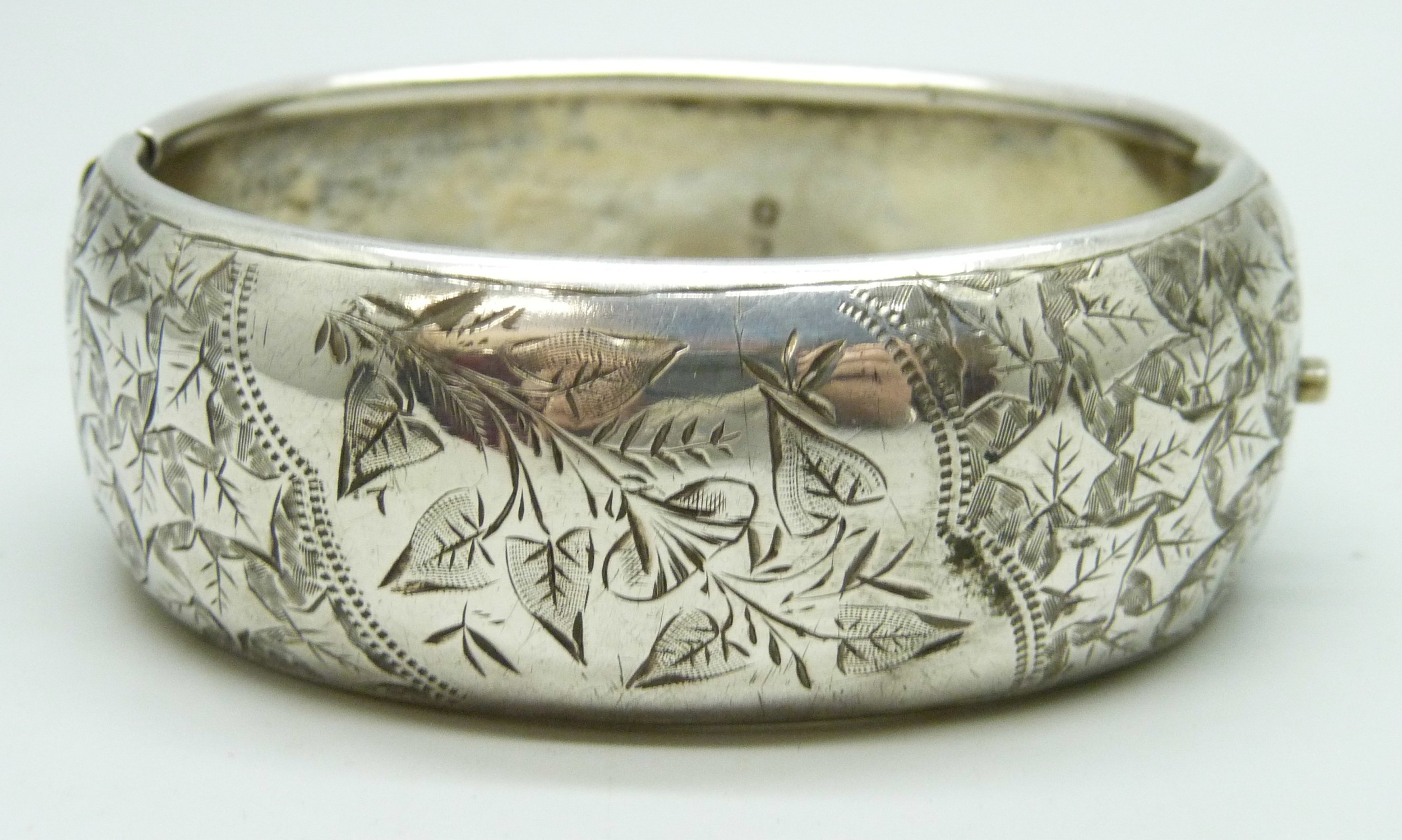 A Victorian silver bangle, Birmingham, 1884, 32g, 6 x 4.7cm