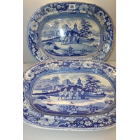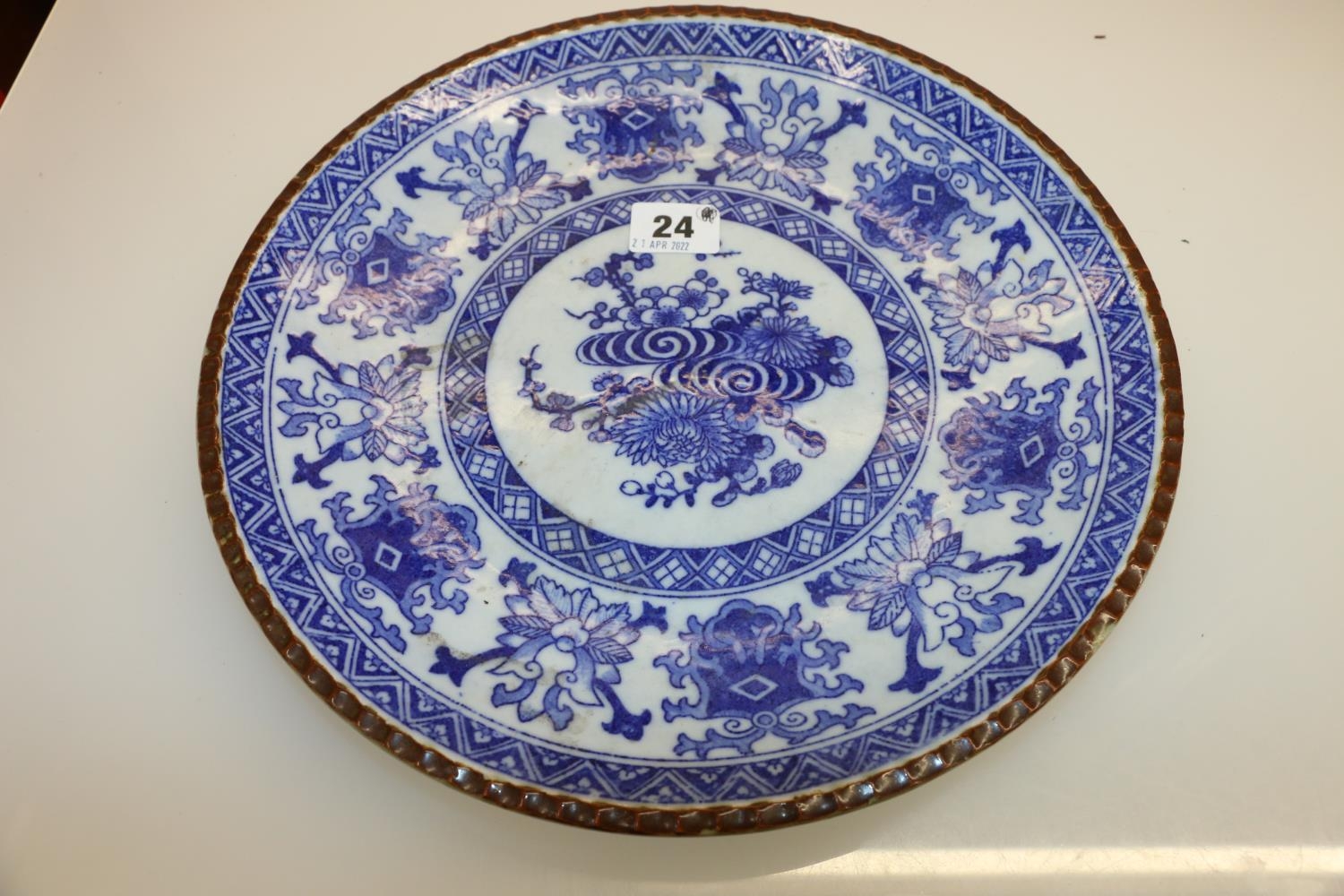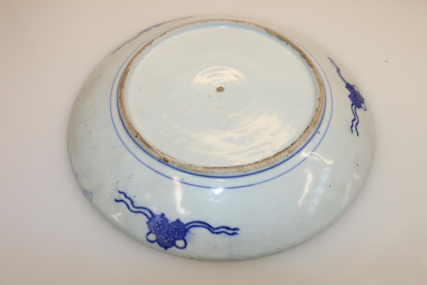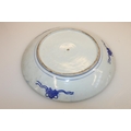Oriental blue and white floral decorated dish, 30cm diameter.