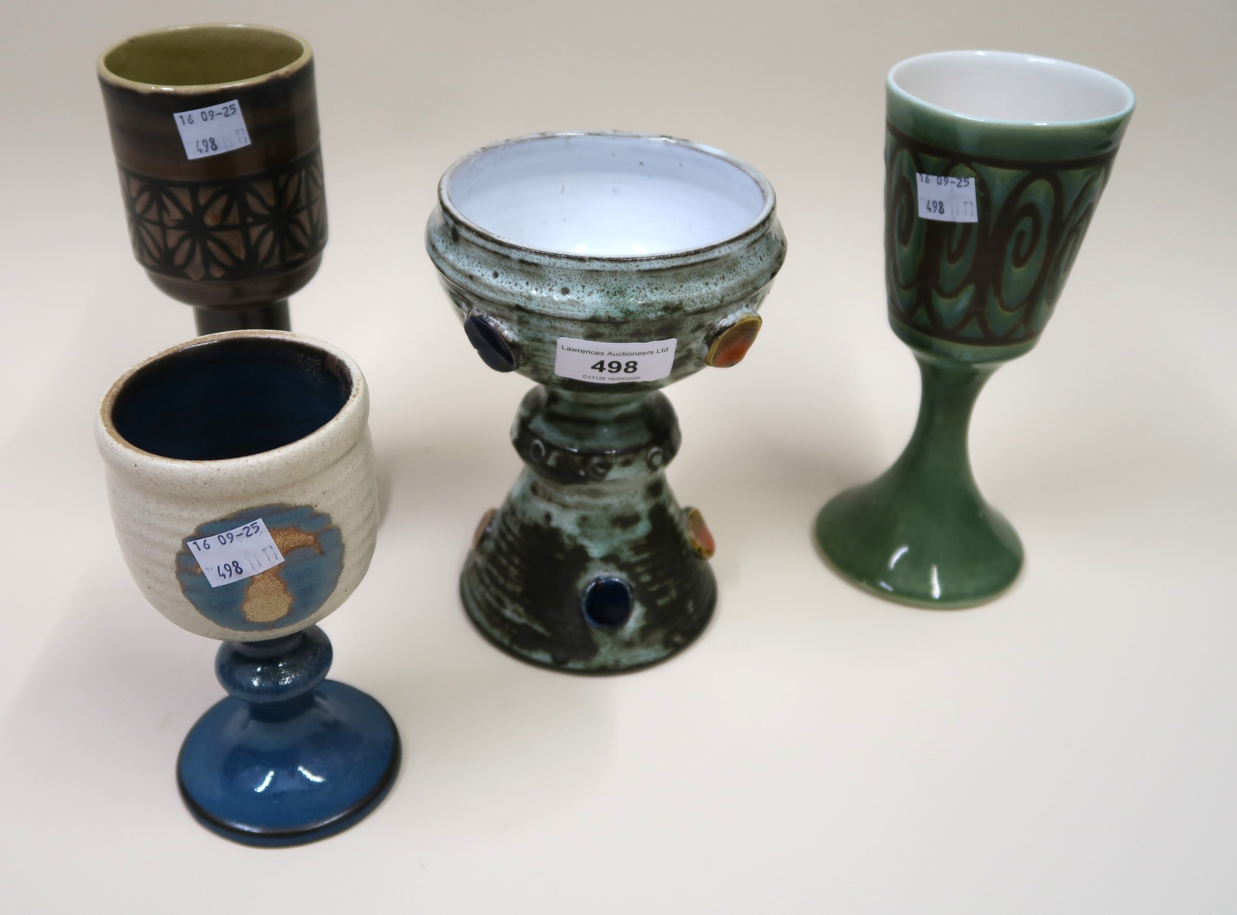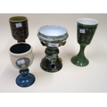 Wye Welsh studio pottery chalice / goblet, Adam Dworski, together with three other pottery goblets, 17cm high