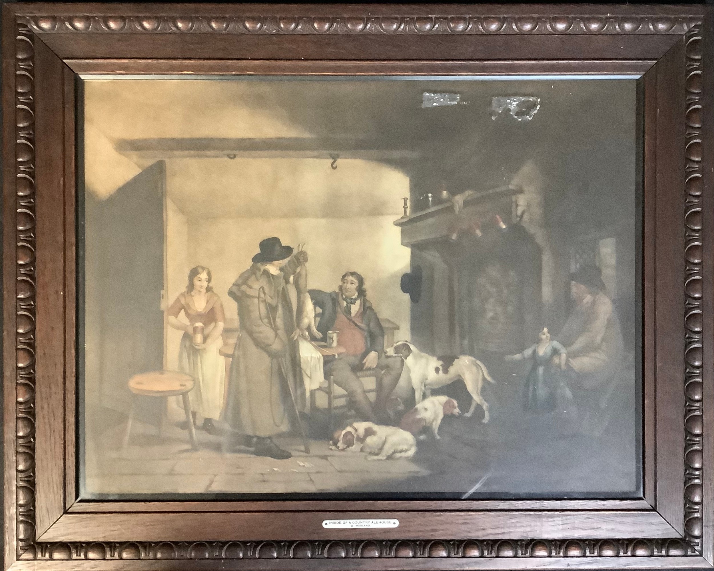 After George Morland, Inside a Country Ale House, coloured print, 44cm x 58cm, oak frame