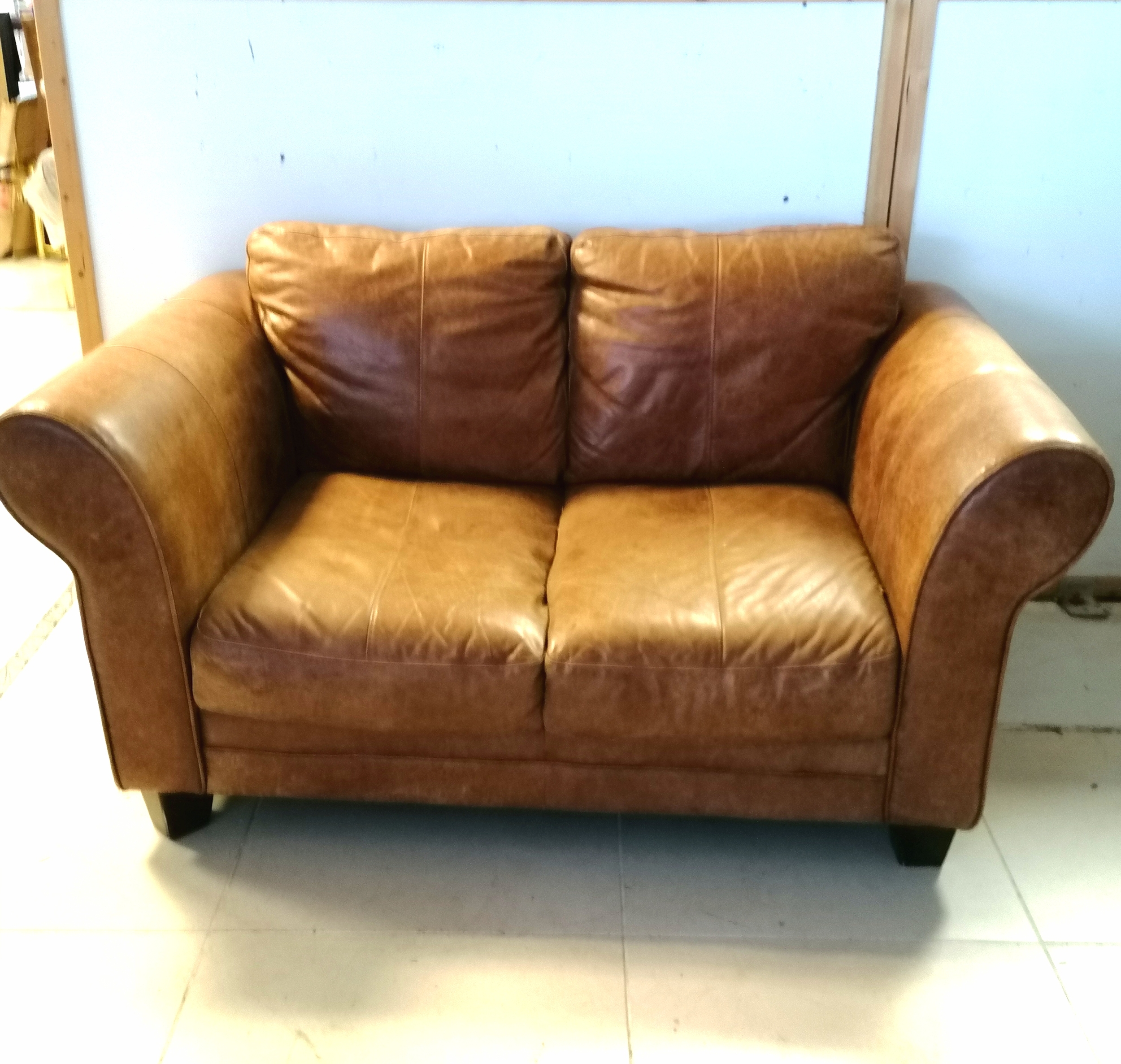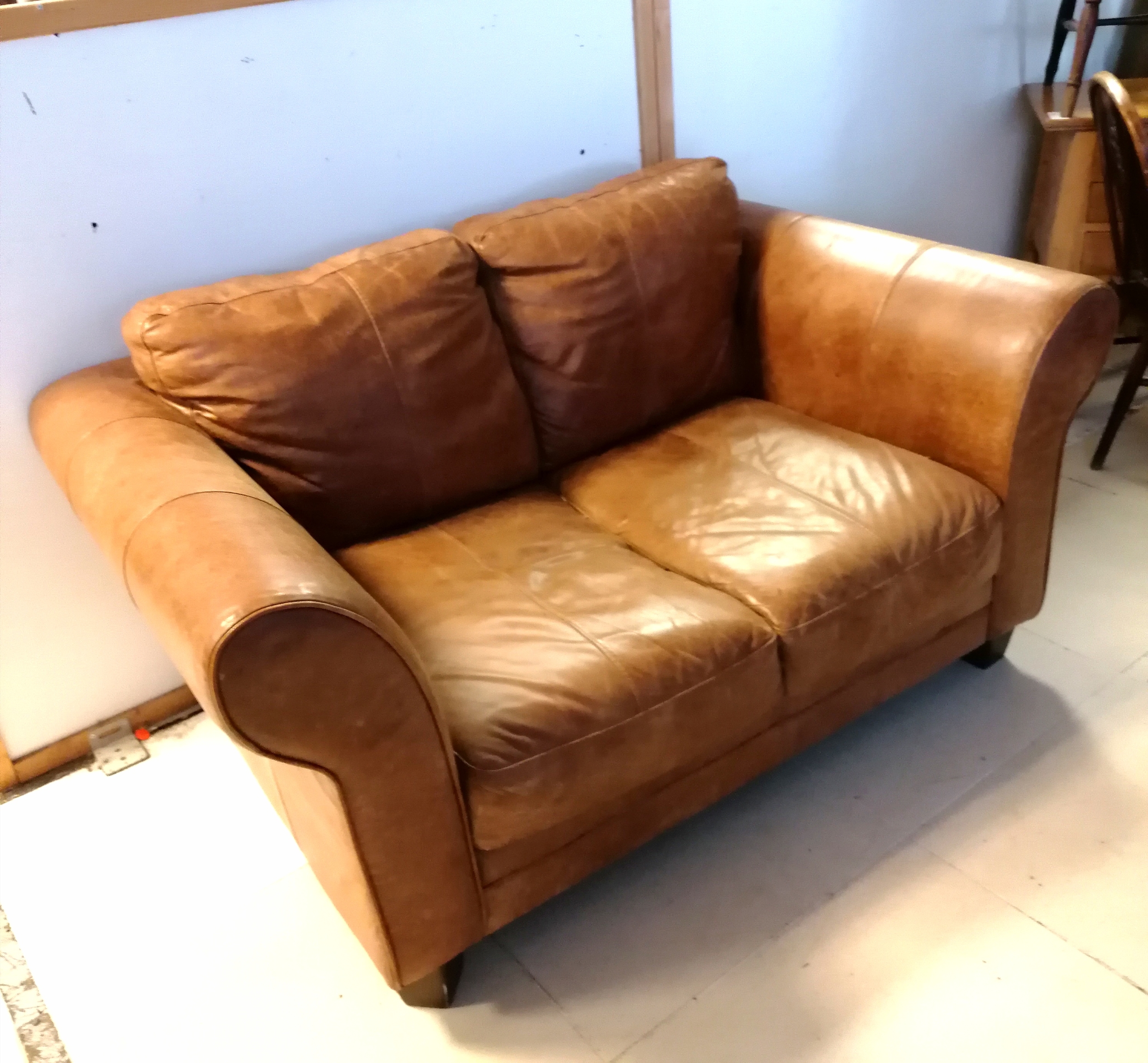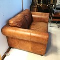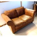 Tan leather 2 seater sofa - 155cm x 95cm x 72cm