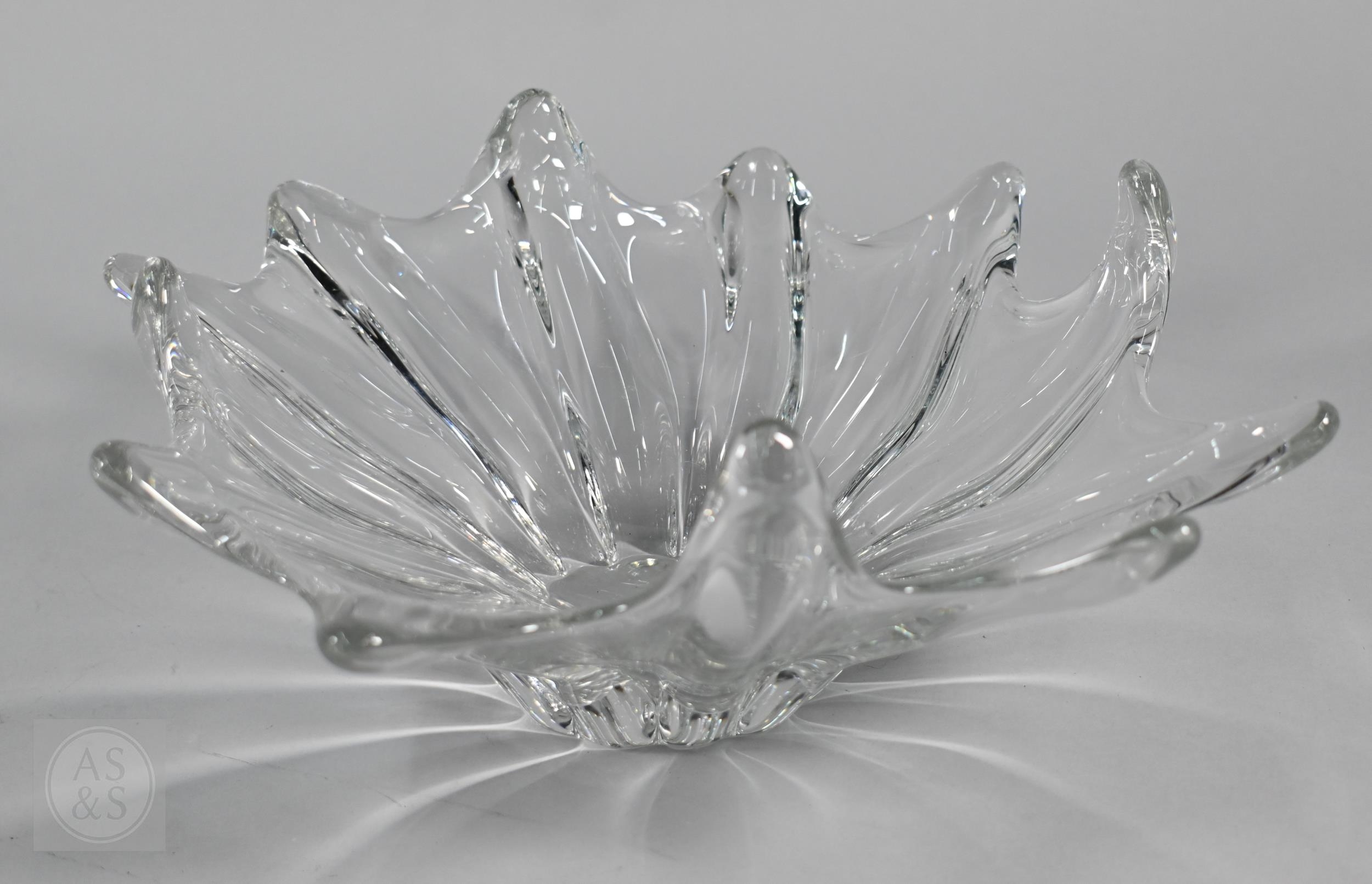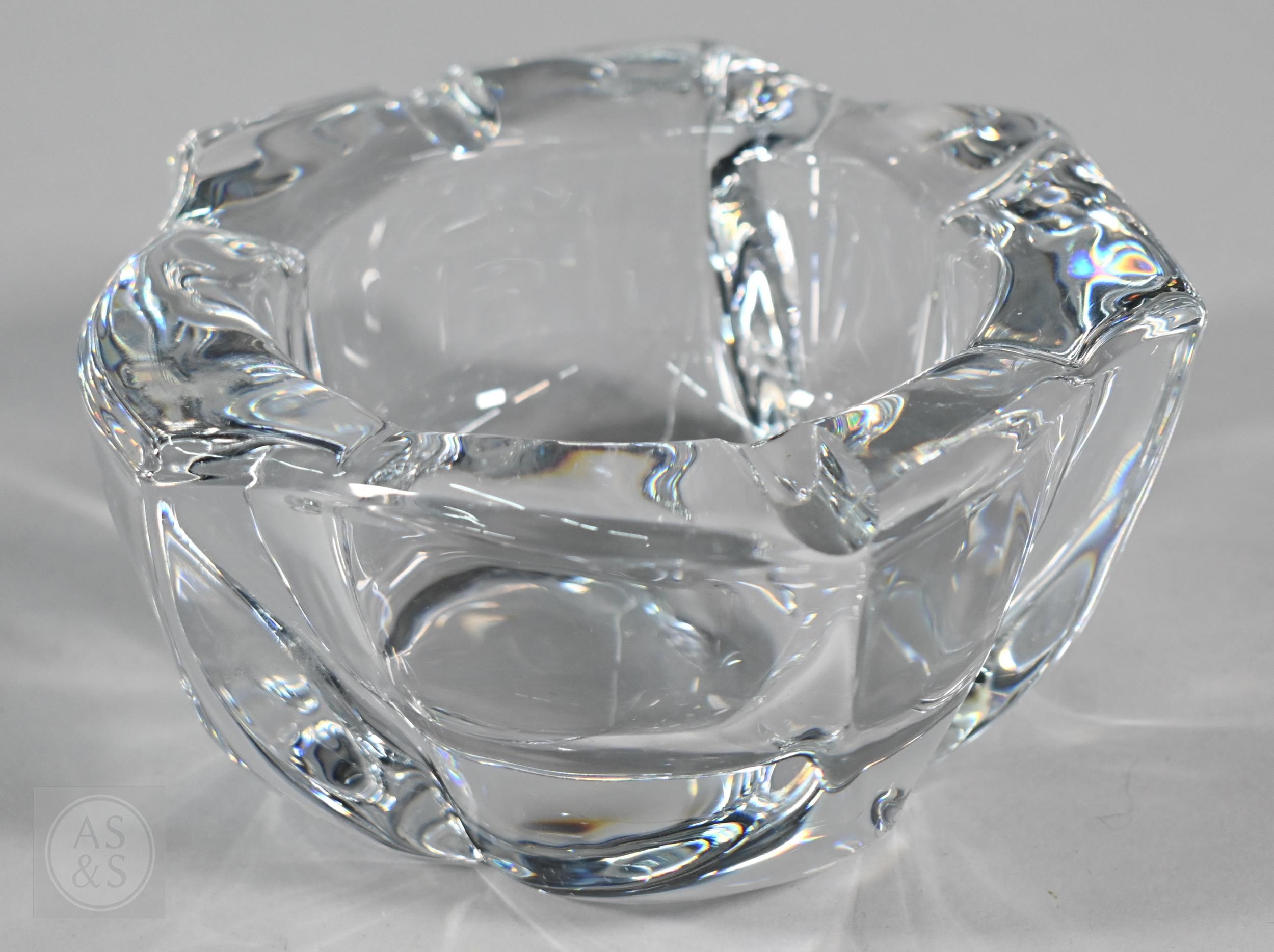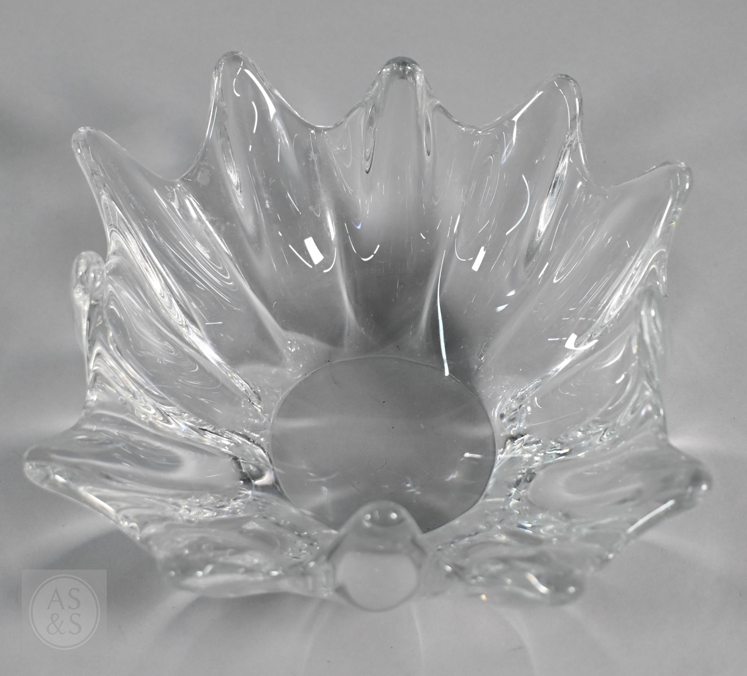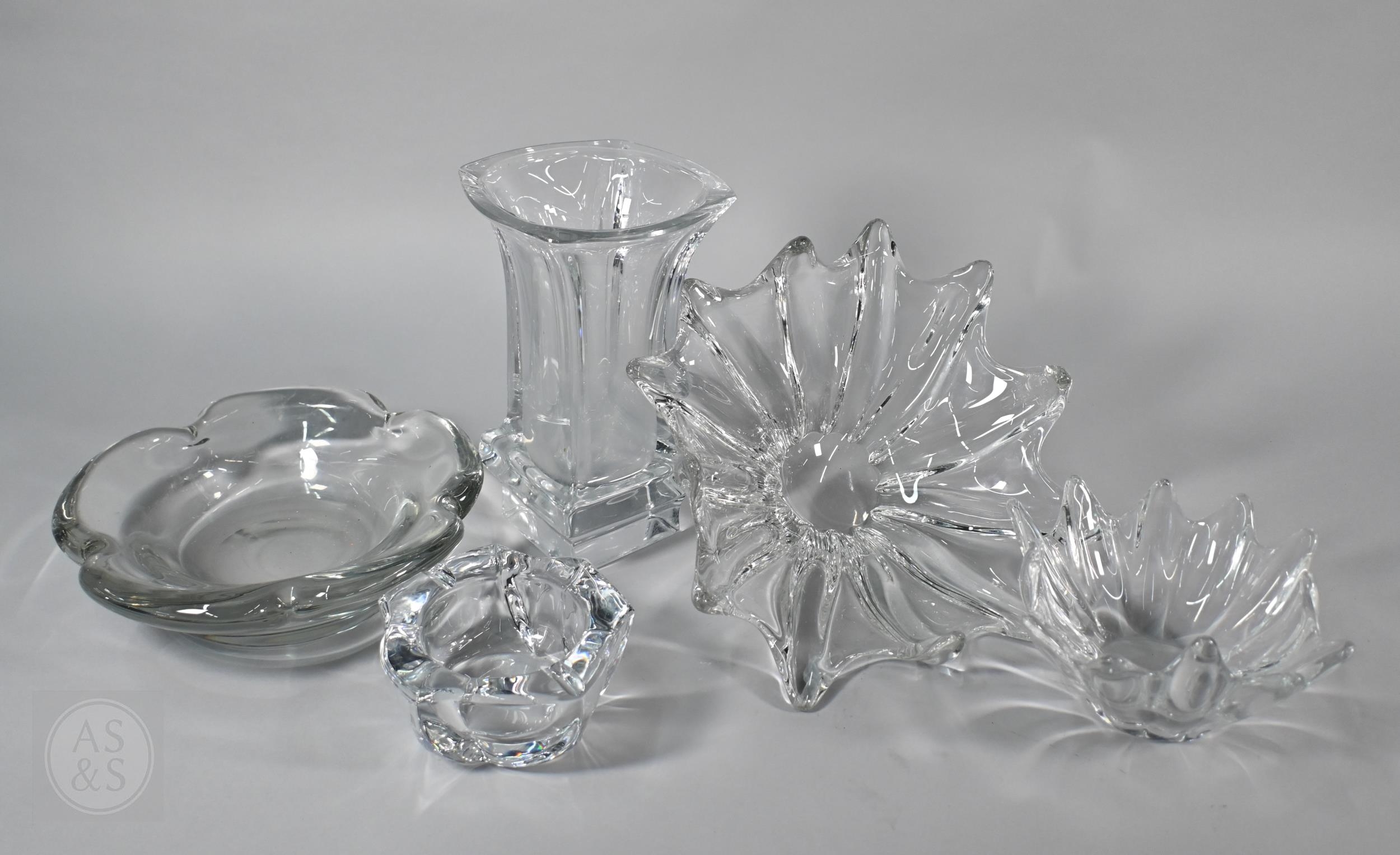 Four Daum (France) heavy glass bowls and a Crystal d'Arques vase (5)