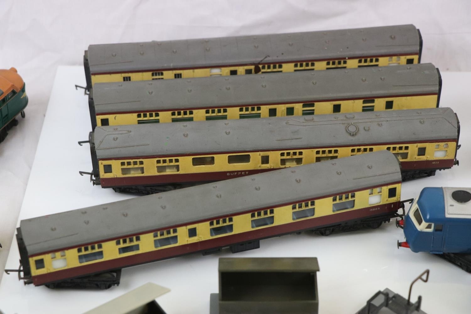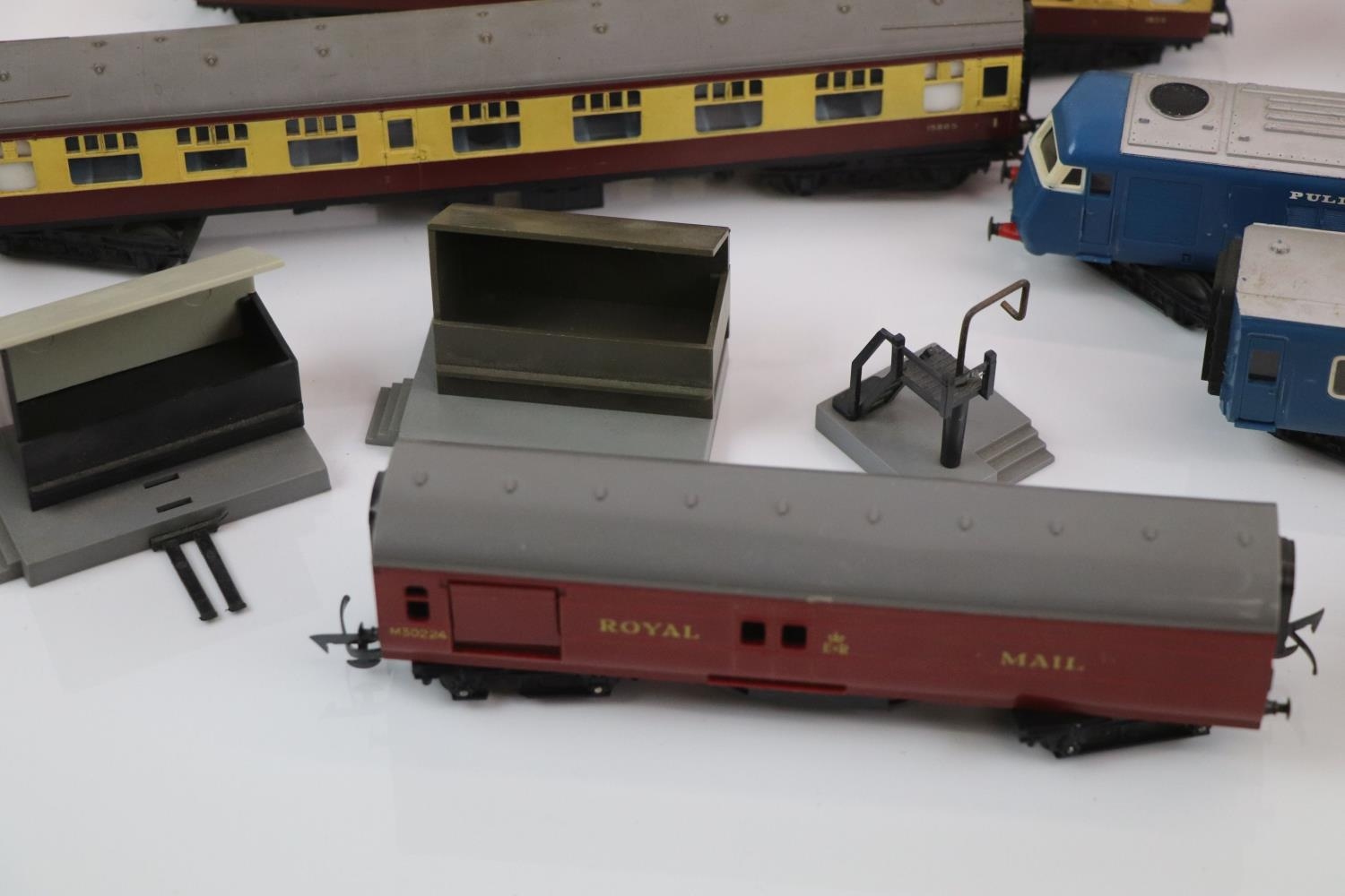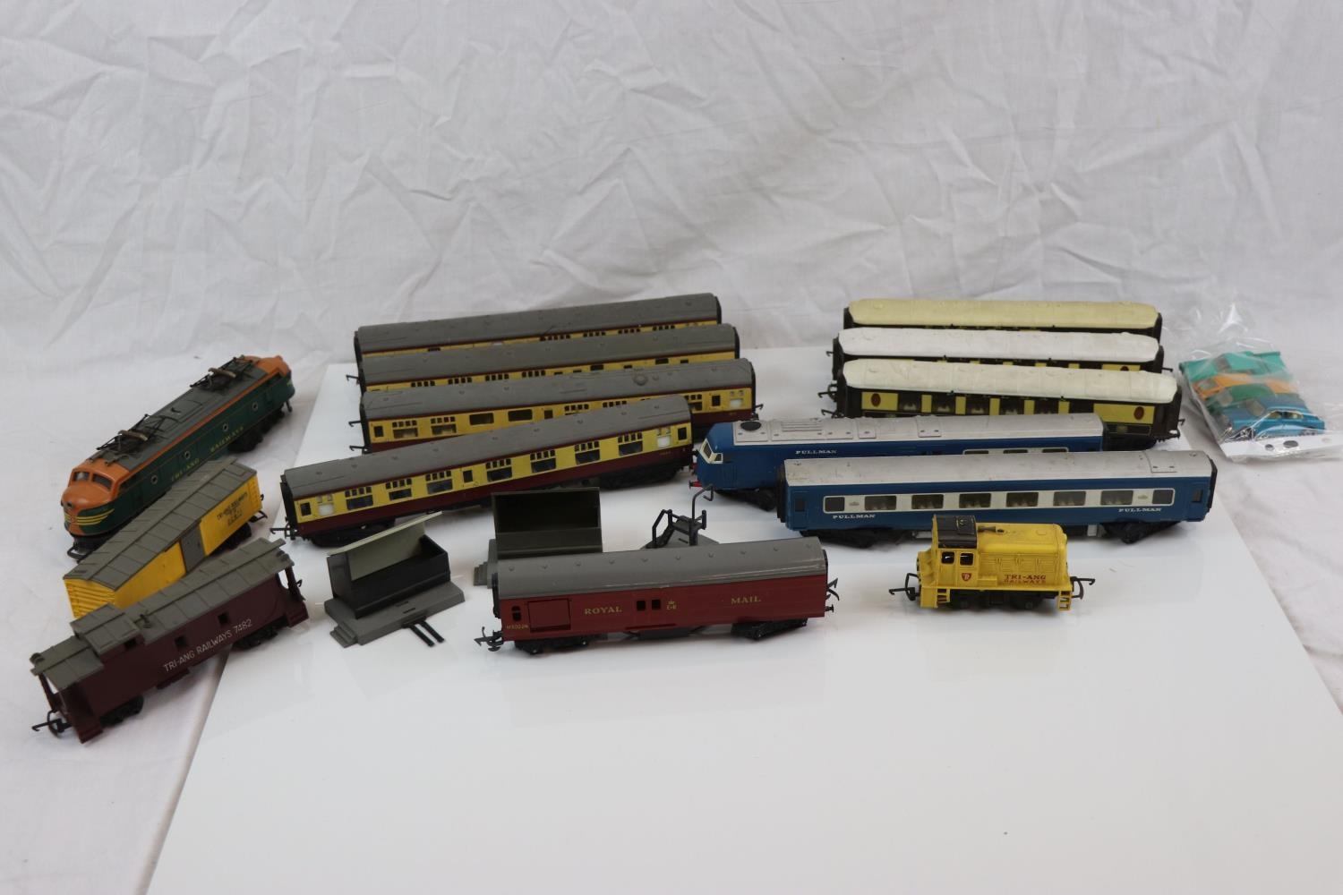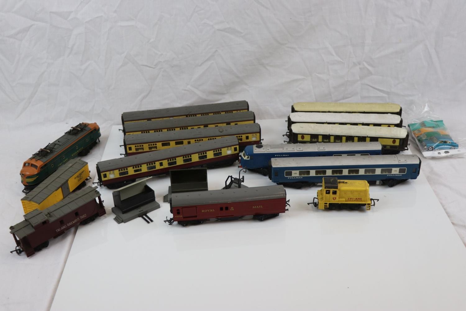 Collection of Triang OO gauge model railway to include 10 x items of rolling stock, 2 x locomotives and Royal Mail set, plus 4 x Matchbox Lesney diecast models