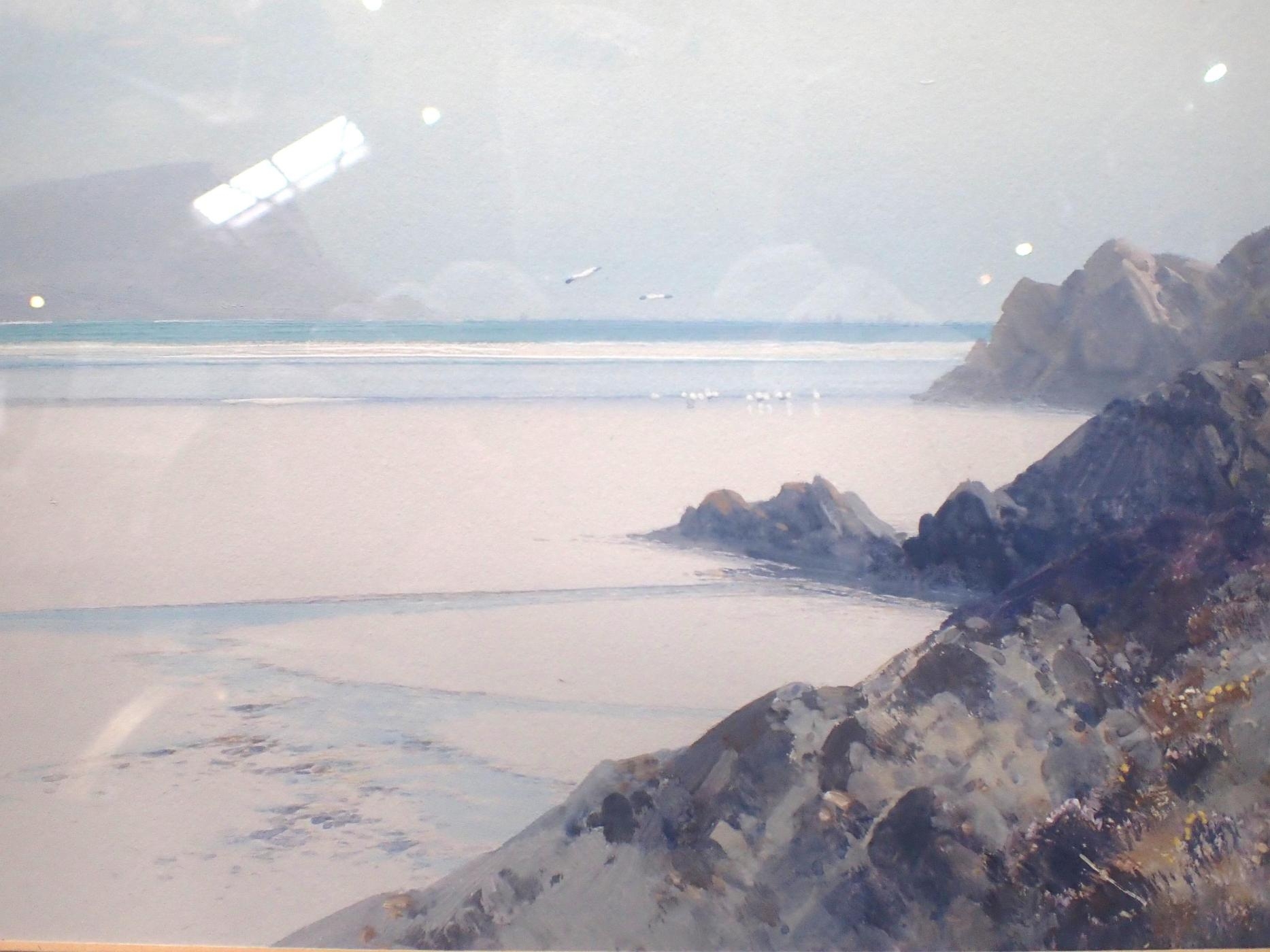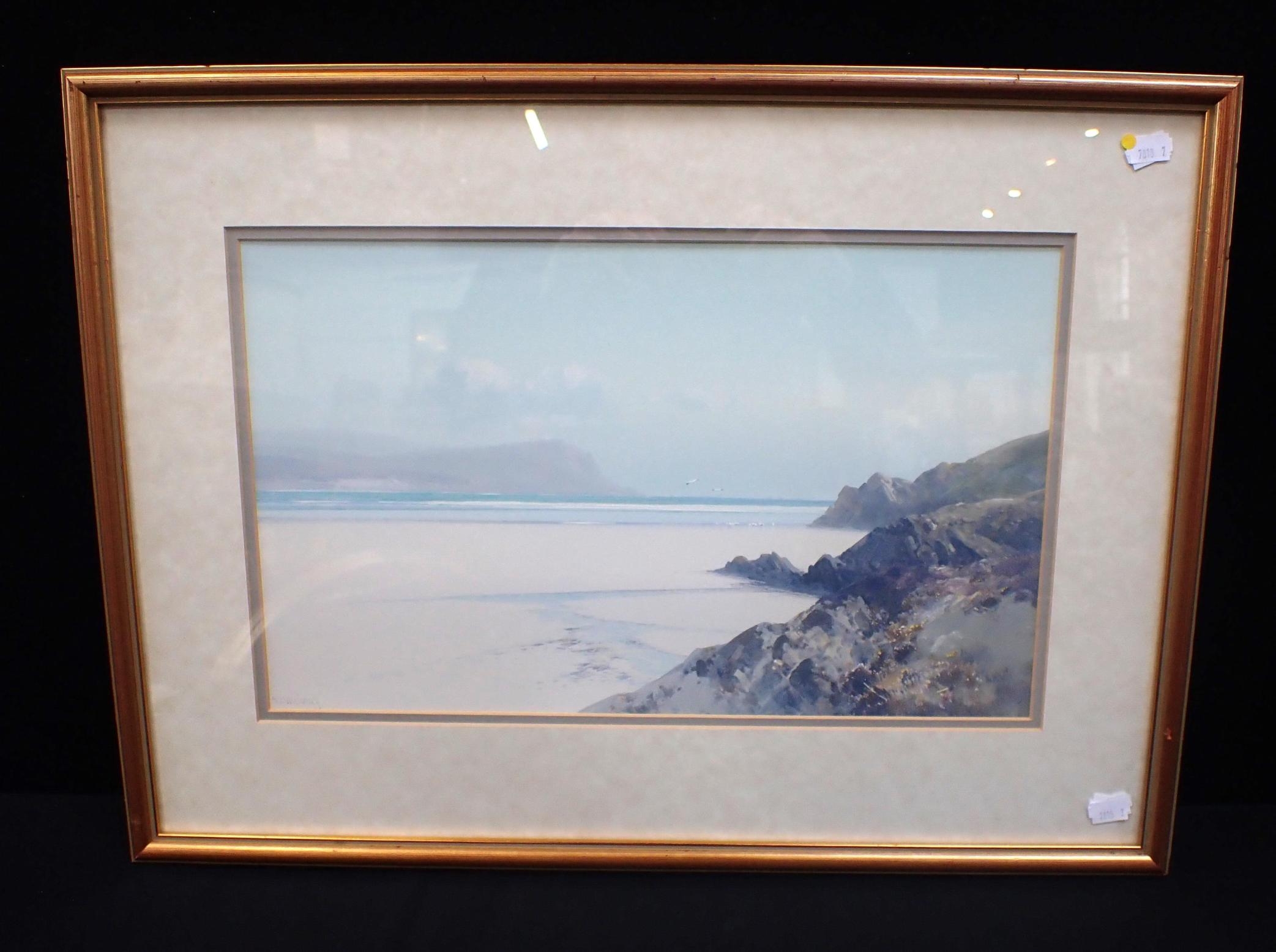 FREDERICK JOHN WIDGERY 1861-1942: 'MOUTH OF THE GANNEL, NEWQUAY' watercolour/gouache 46 x 63cm (framed)