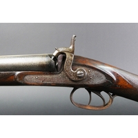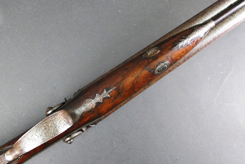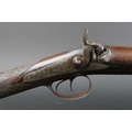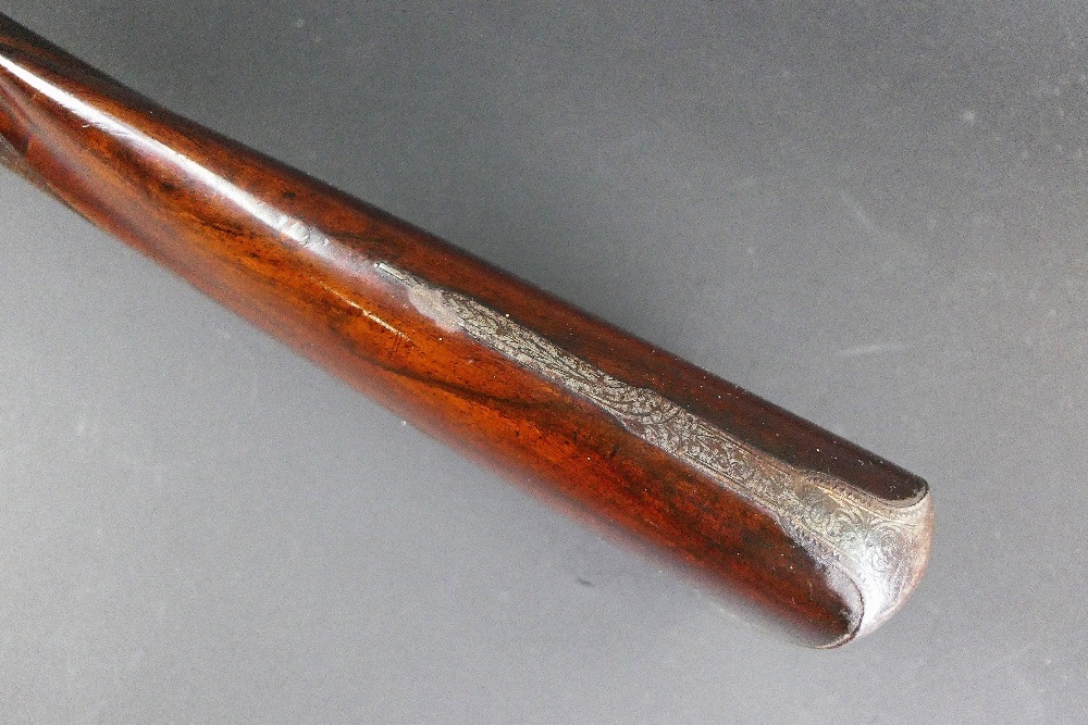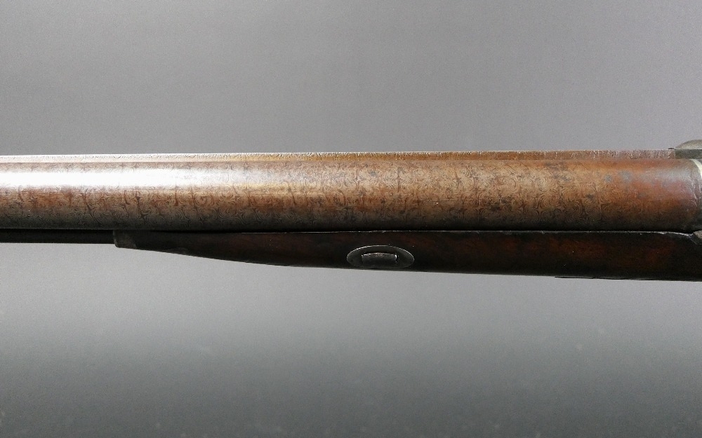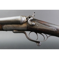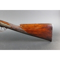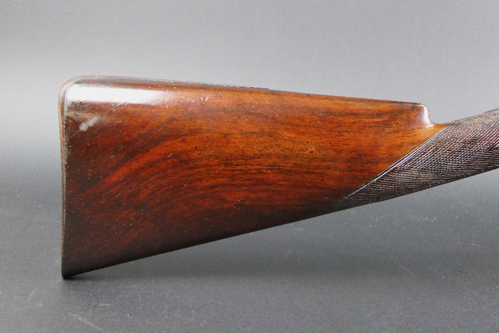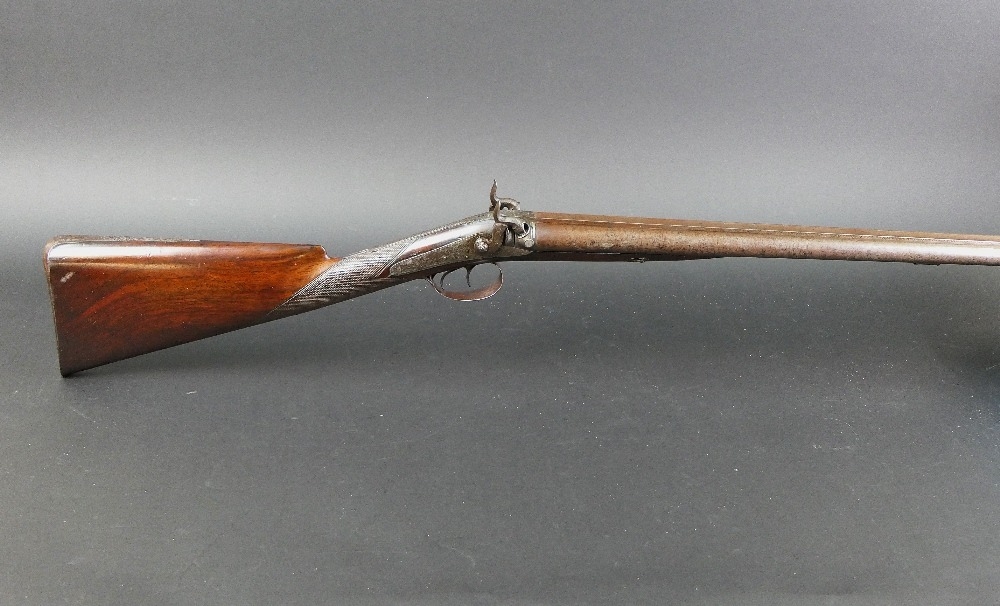 W & J Rigby Dublin 16 bore side by side hammer shotgun, with 28" damascus barrels, the rib marked WM & JN Rigby Dublin, having platinum lines and plugs, the hammers engraved in the manner of Dolphins and the locks with scroll engraving and marked WM & JN Rigby, with similar engraving to the trigger guard, double trigger with 14" stock with steel butt plate. NOTE: William and John Jason Rigby traded as W & J Rigby from 24 Suffolk Street Dublin circa 1850. Serial No. 8197. Sold as a section 58 obsolete calibre.