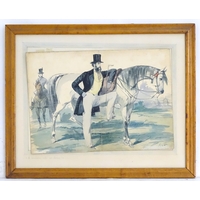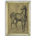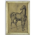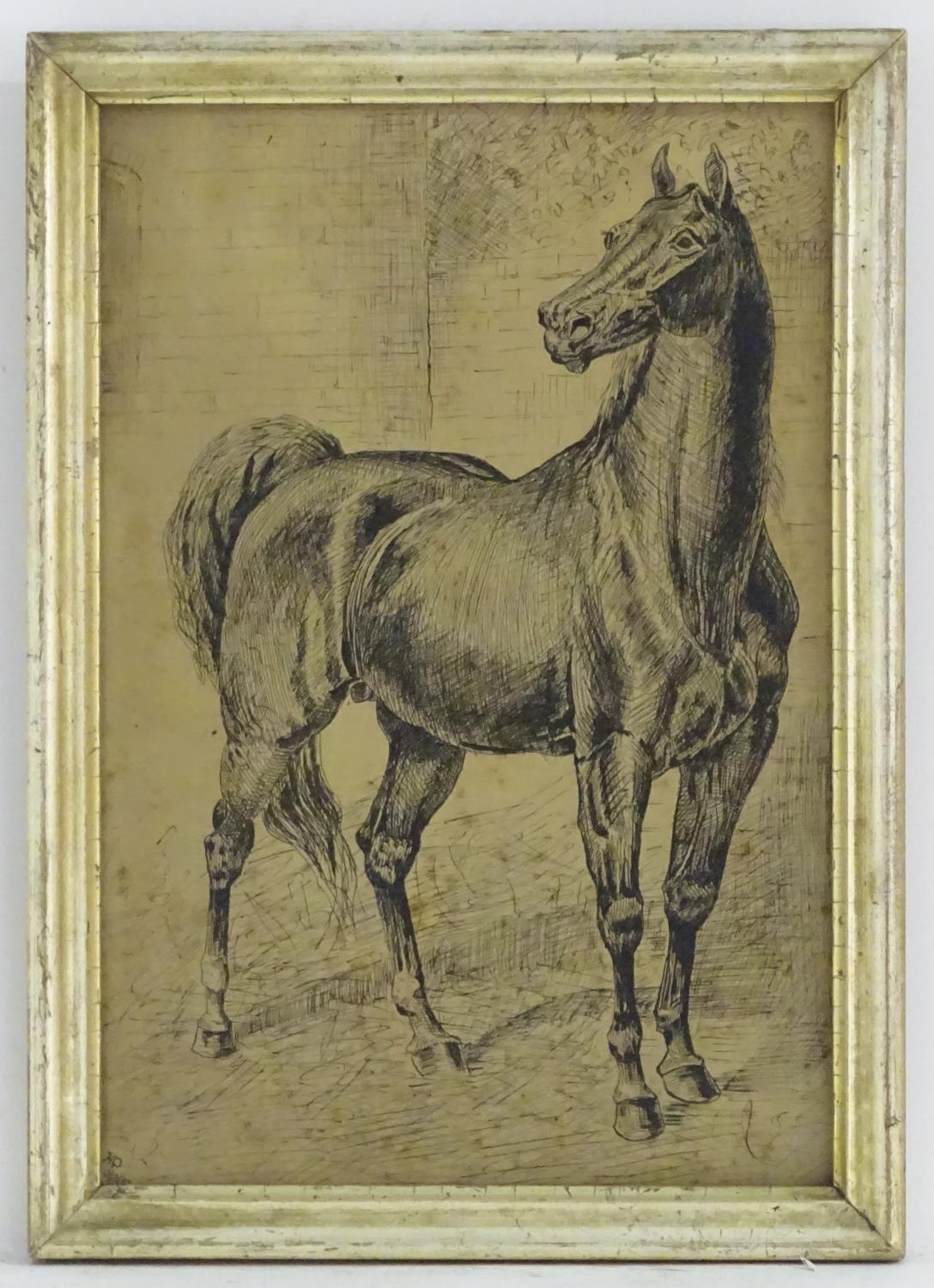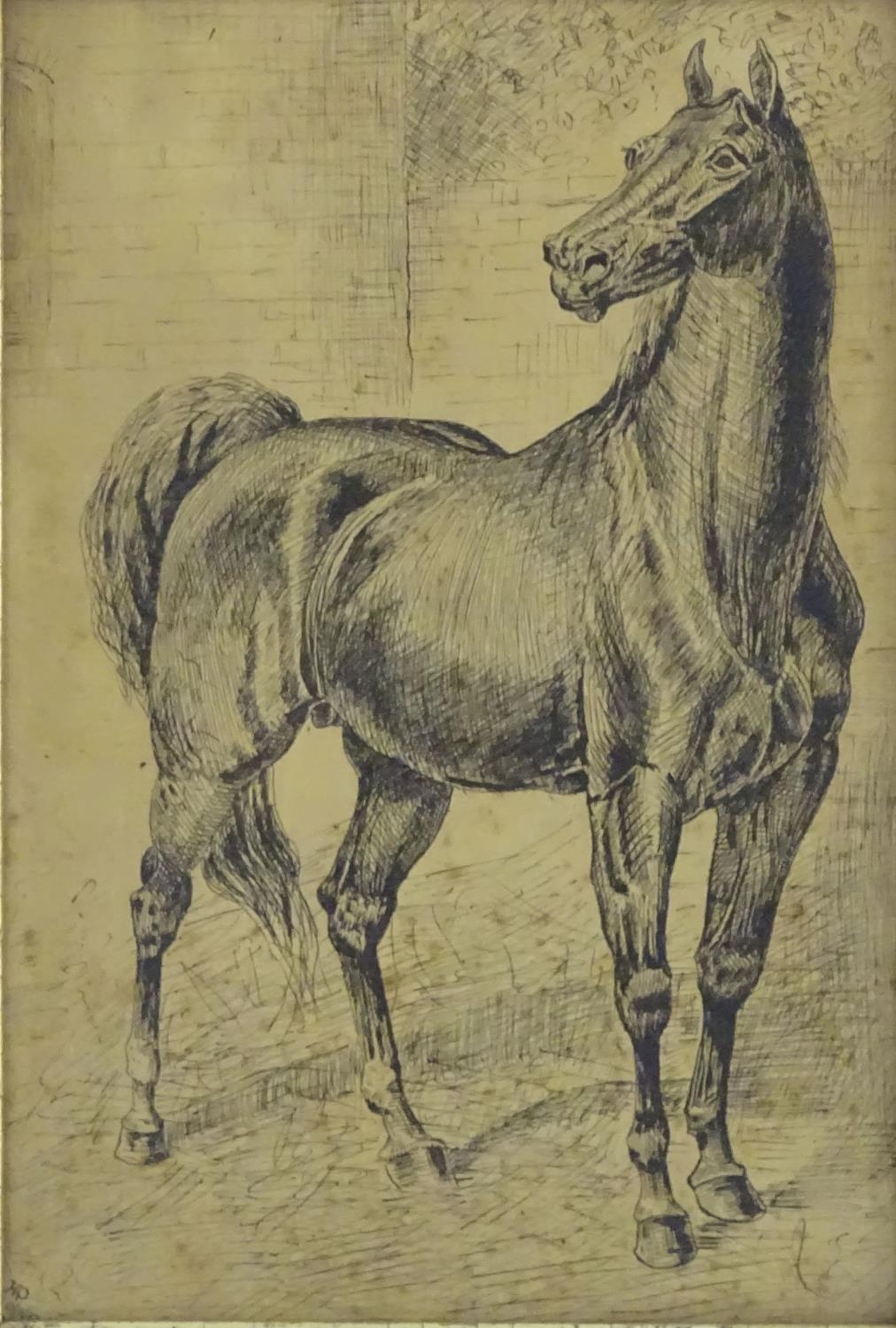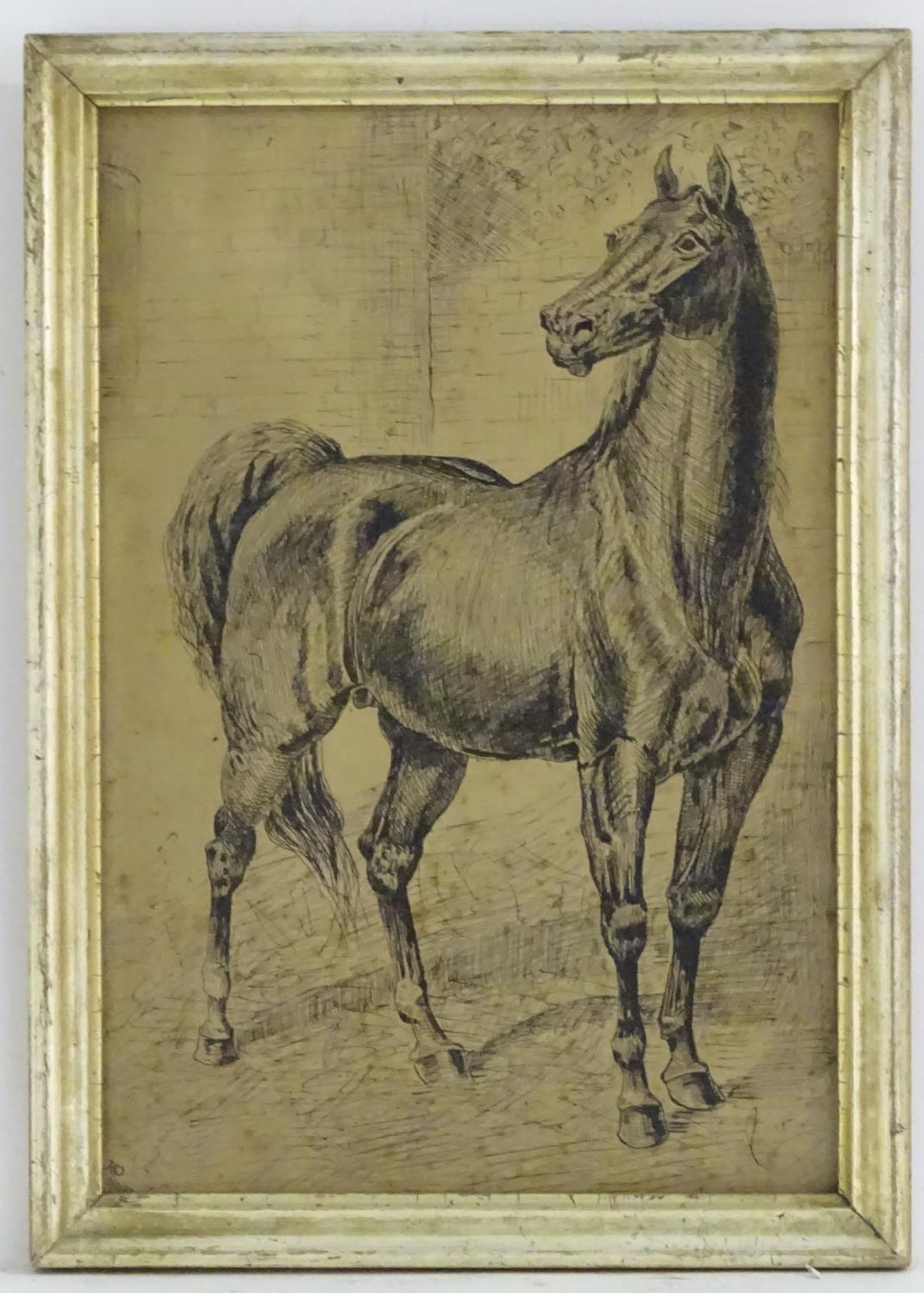 HP, XIX, Pen and ink, A study of a stallion / horse. Monogrammed and dated 9 / 2 / (18)87 lower left. Approx. 11" x 7 1/2"