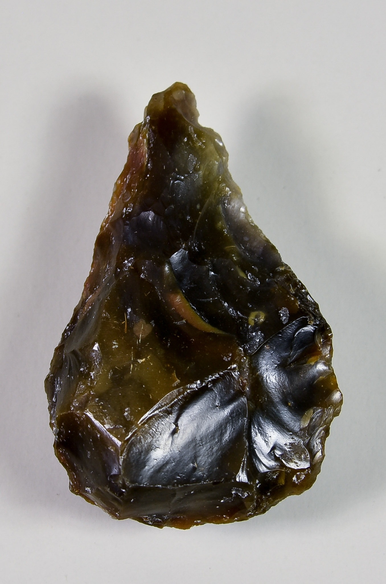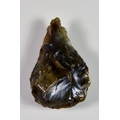 An Acheulean Knapped Handaxe, in form of thick convex butt to fine point, Lower Palaeolithic, in dark grey and brown flint, discovered at Hampton Beach, Herne Bay, Kent, England, 3.5ins overall