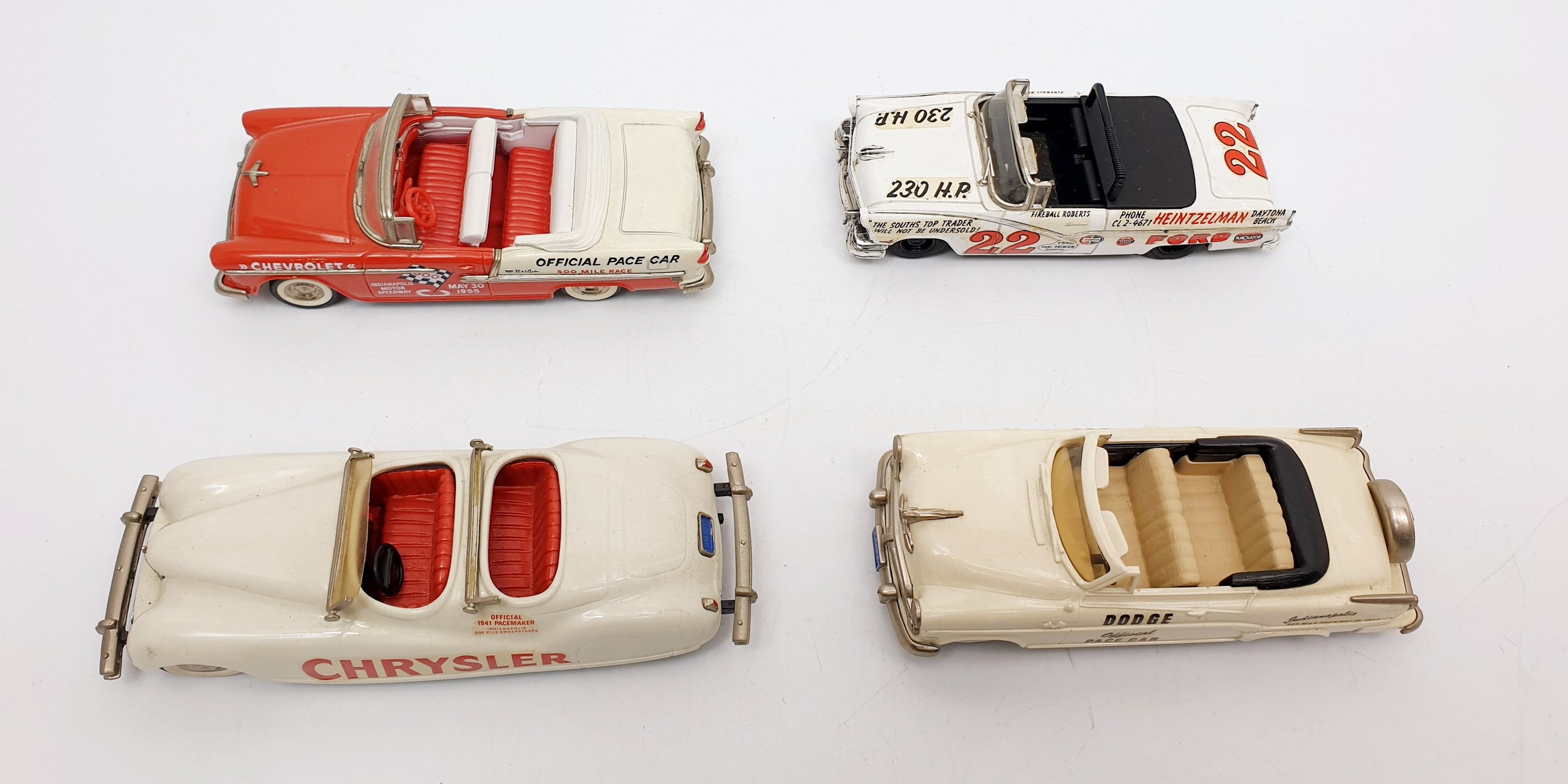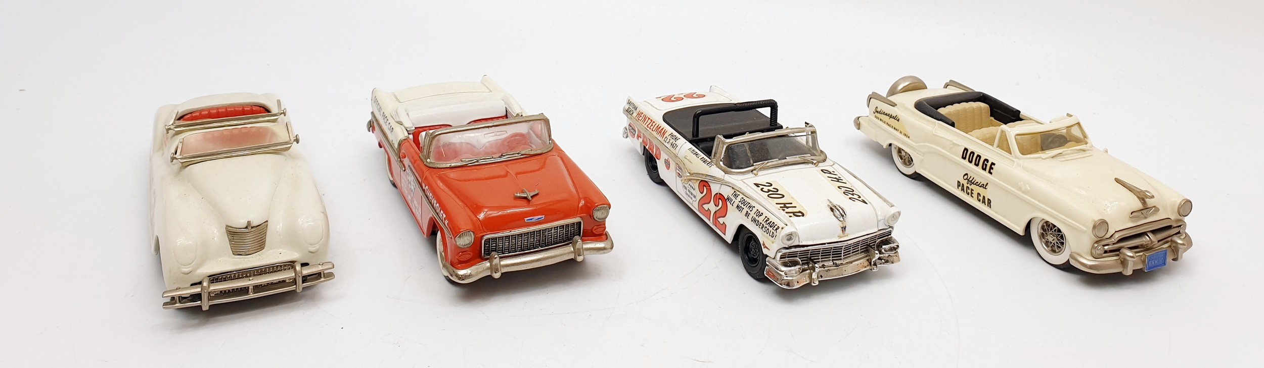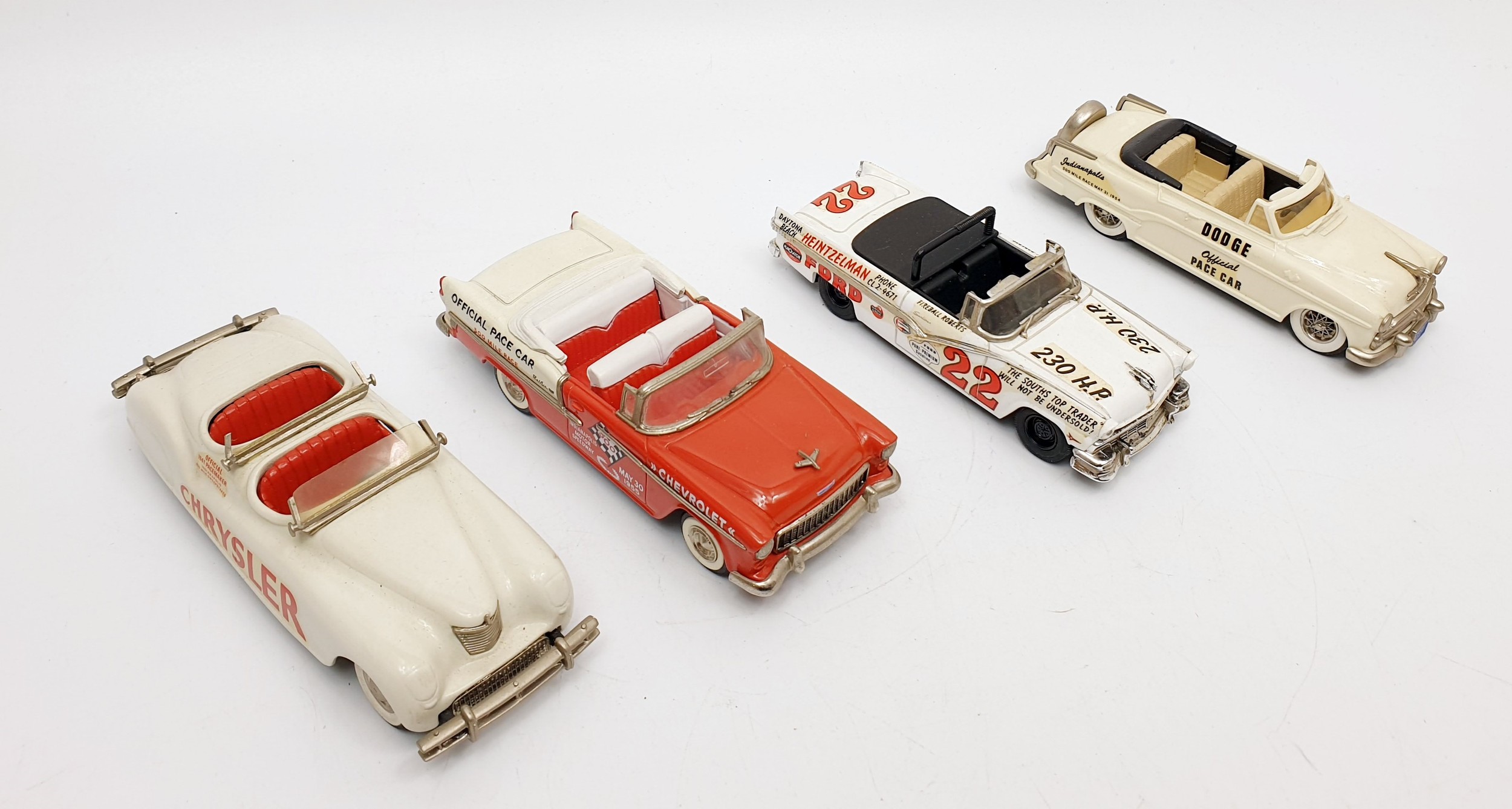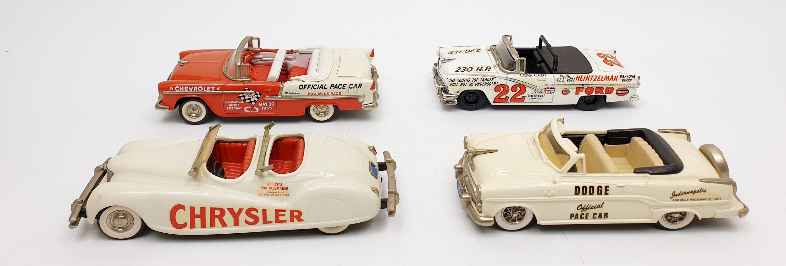 Four 1:43 scale diecast models of Indianpolis and Daytona Beach vintage Pace cars inc Brooklin Models.