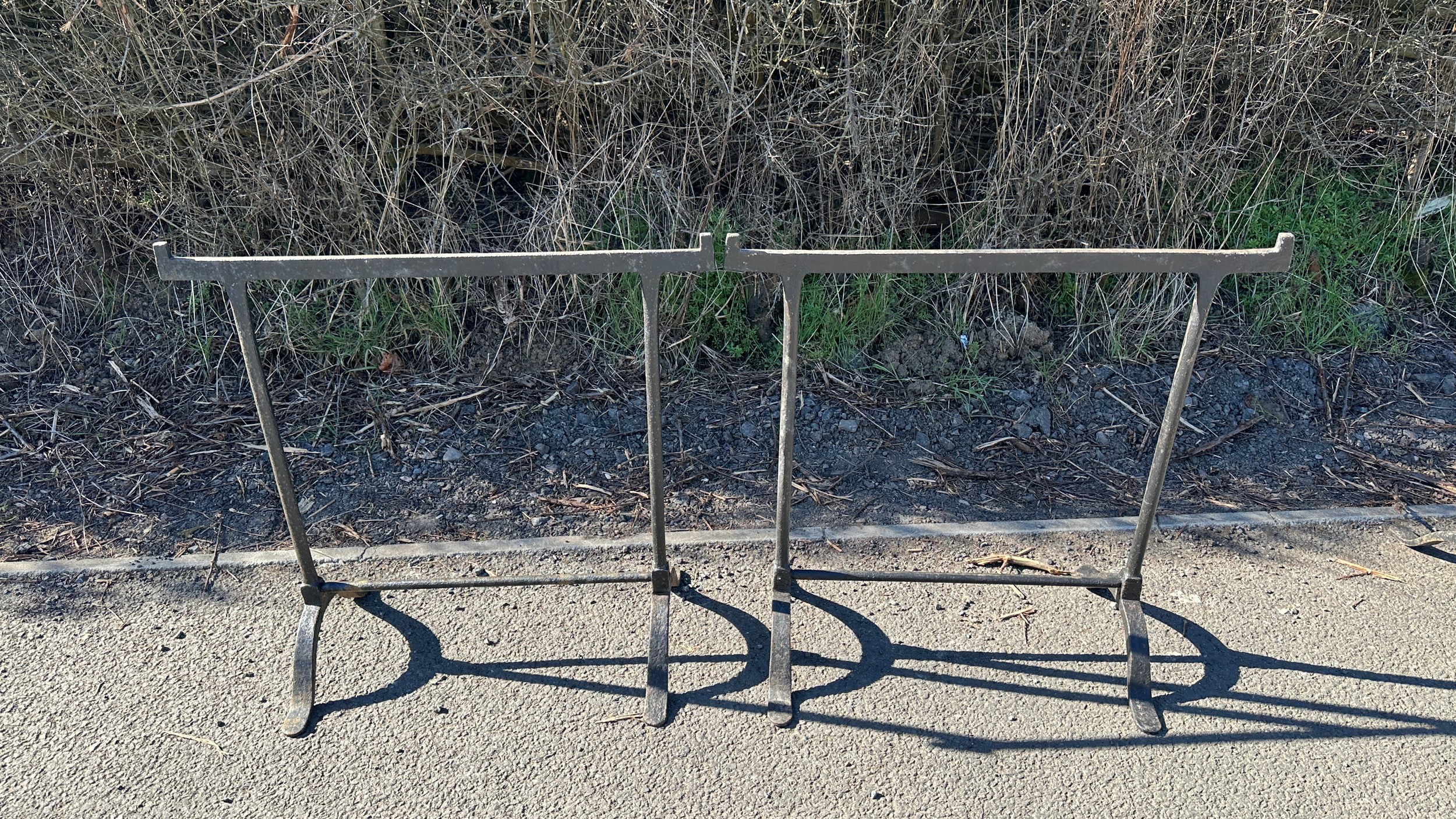 Pair of antique metal Trestles, Height 28.5 inches, Length 32 inches