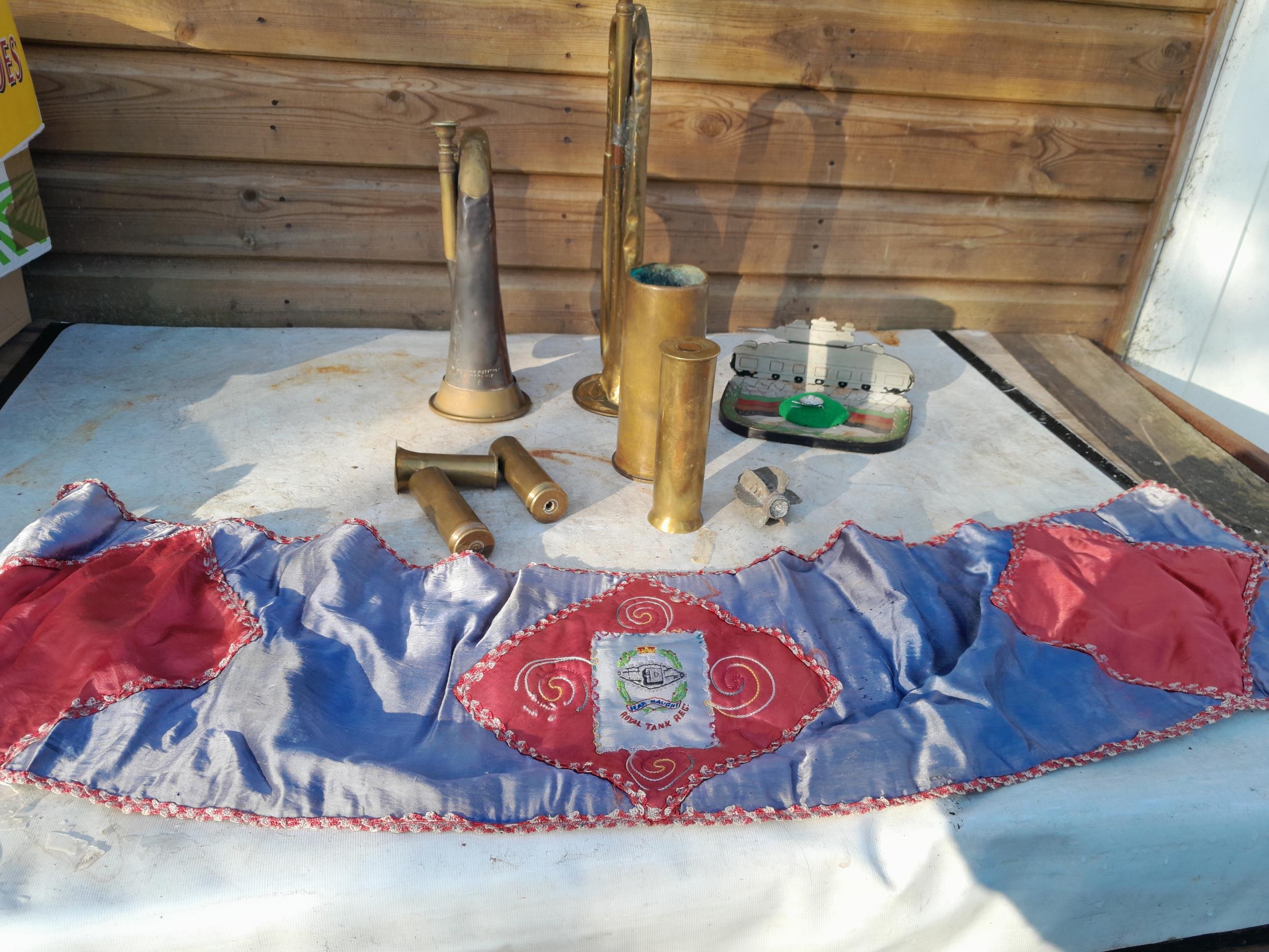 Military related items : mainly tank regiment throughout the 20th century : shells, scarf, trench art etc.