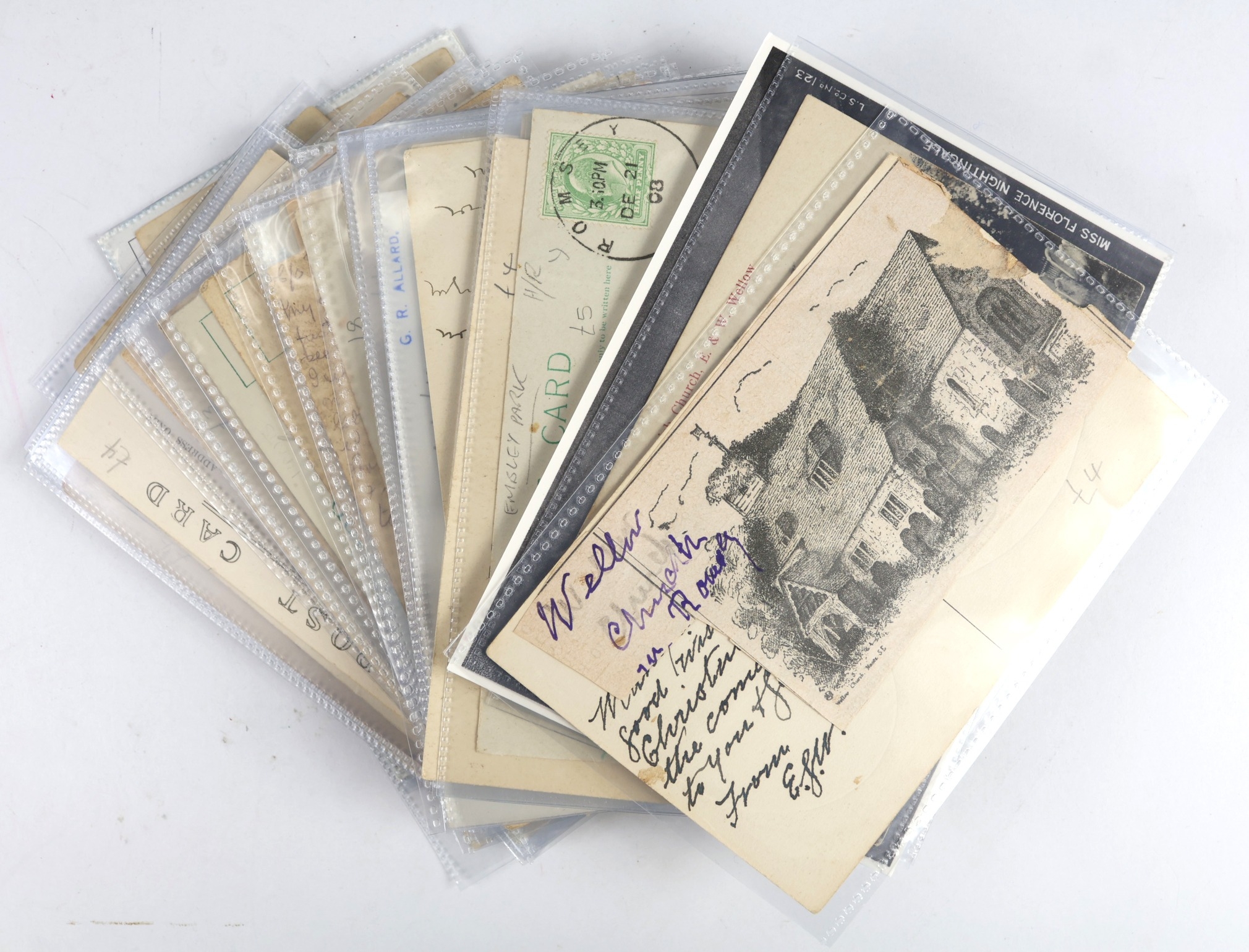 Florence Nightingale / Wellow, comprehensive collection, to include her funeral, crowd at graveside, wreaths, etc, the church, her abodes, portrait, interesting selection (approx 54 cards)