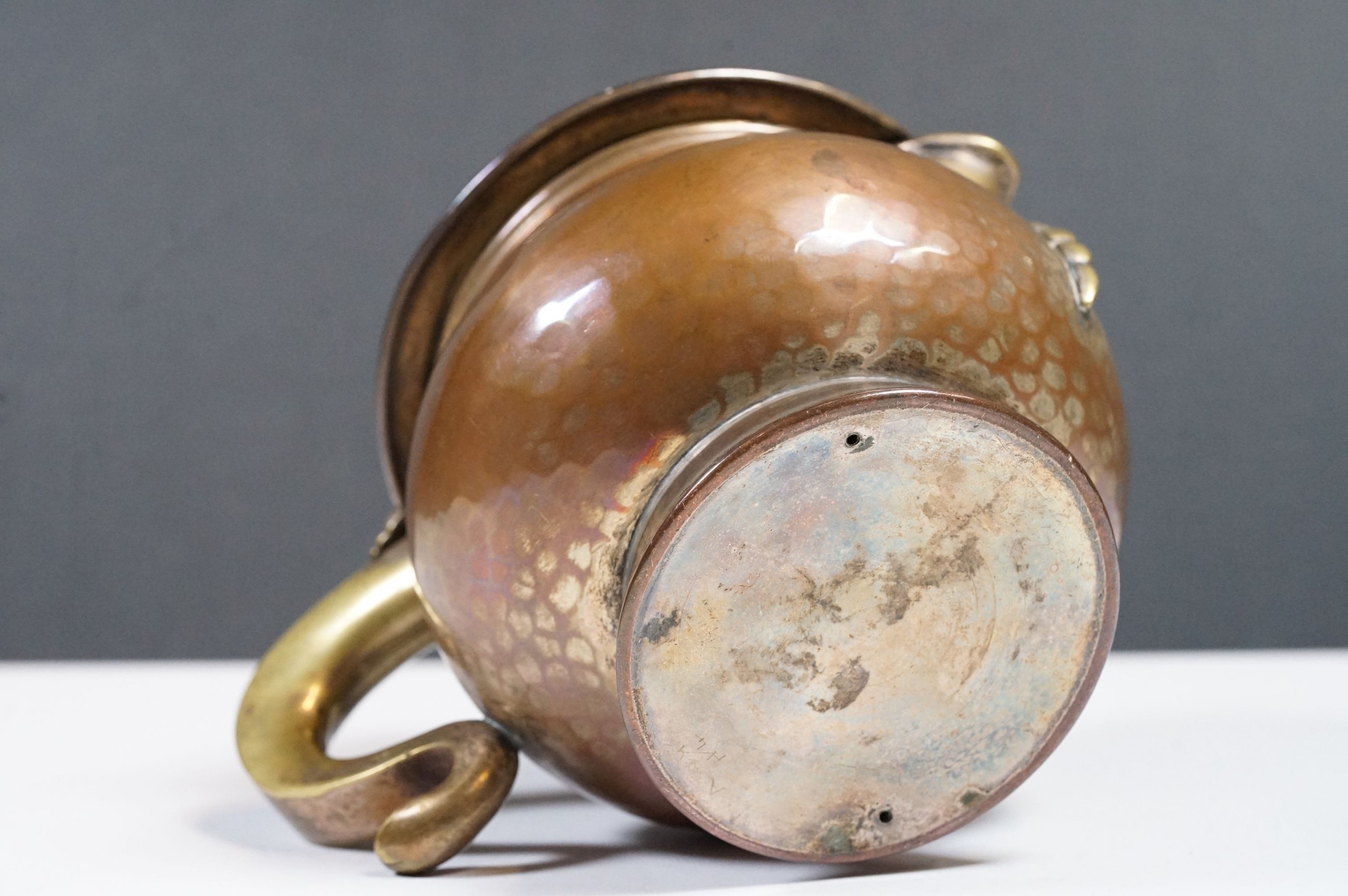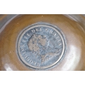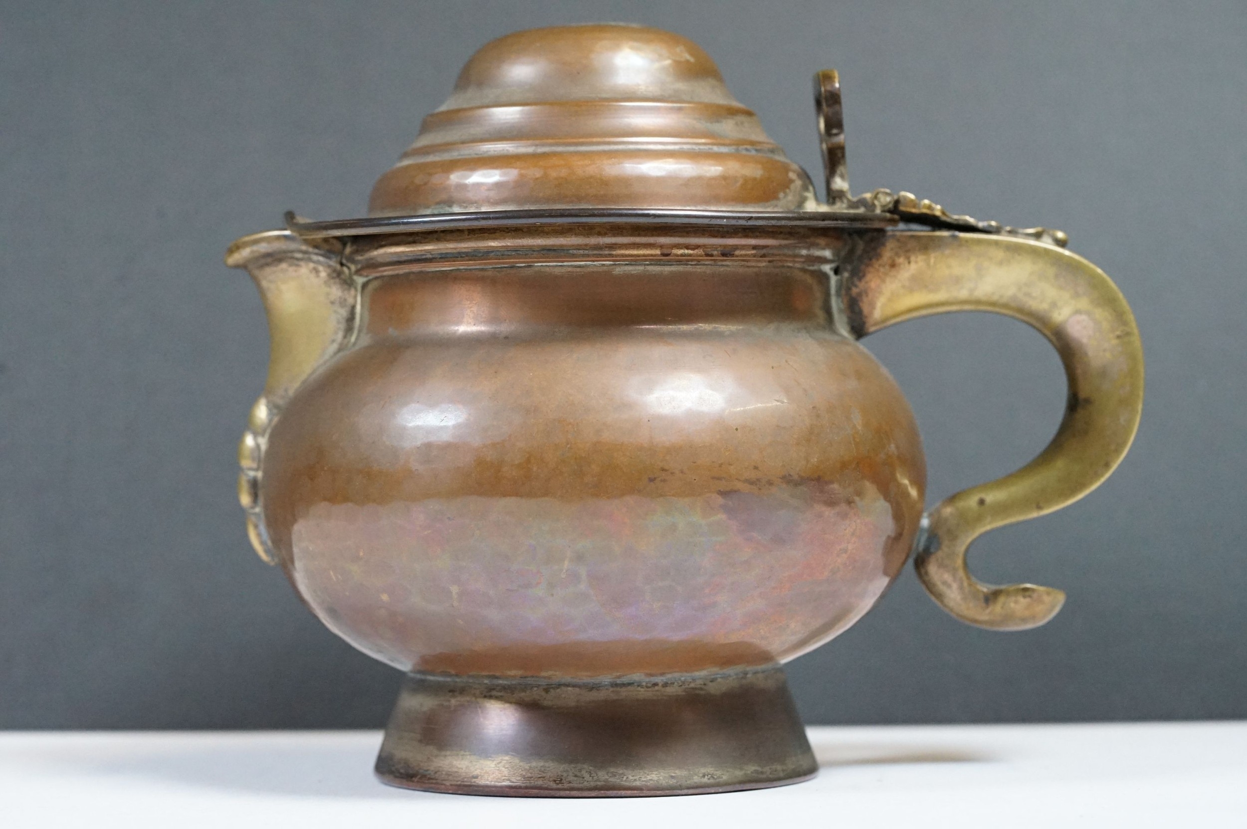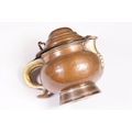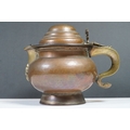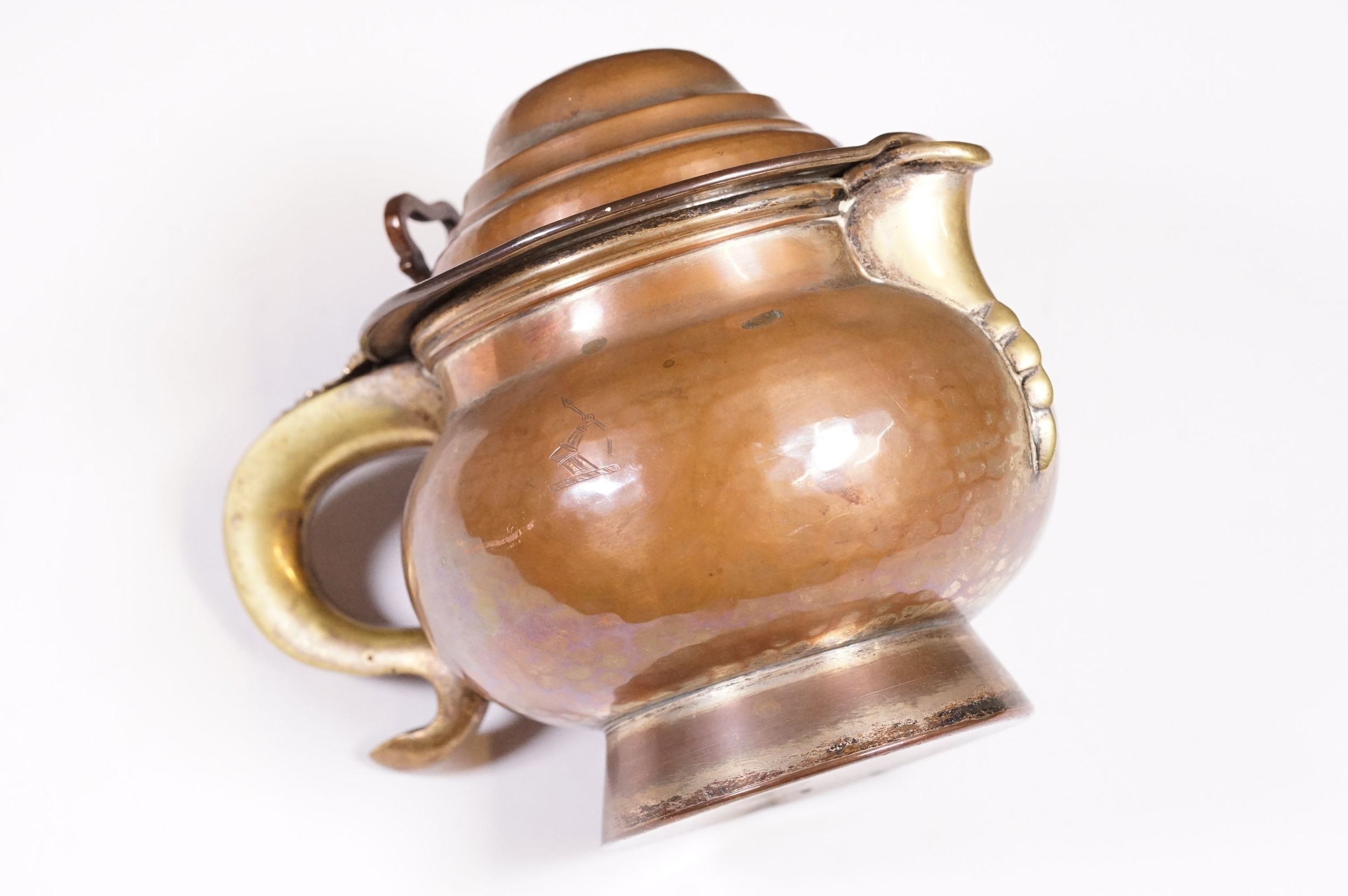 An antique Georgian copper ale tankard set with King George III coin to the lid.
