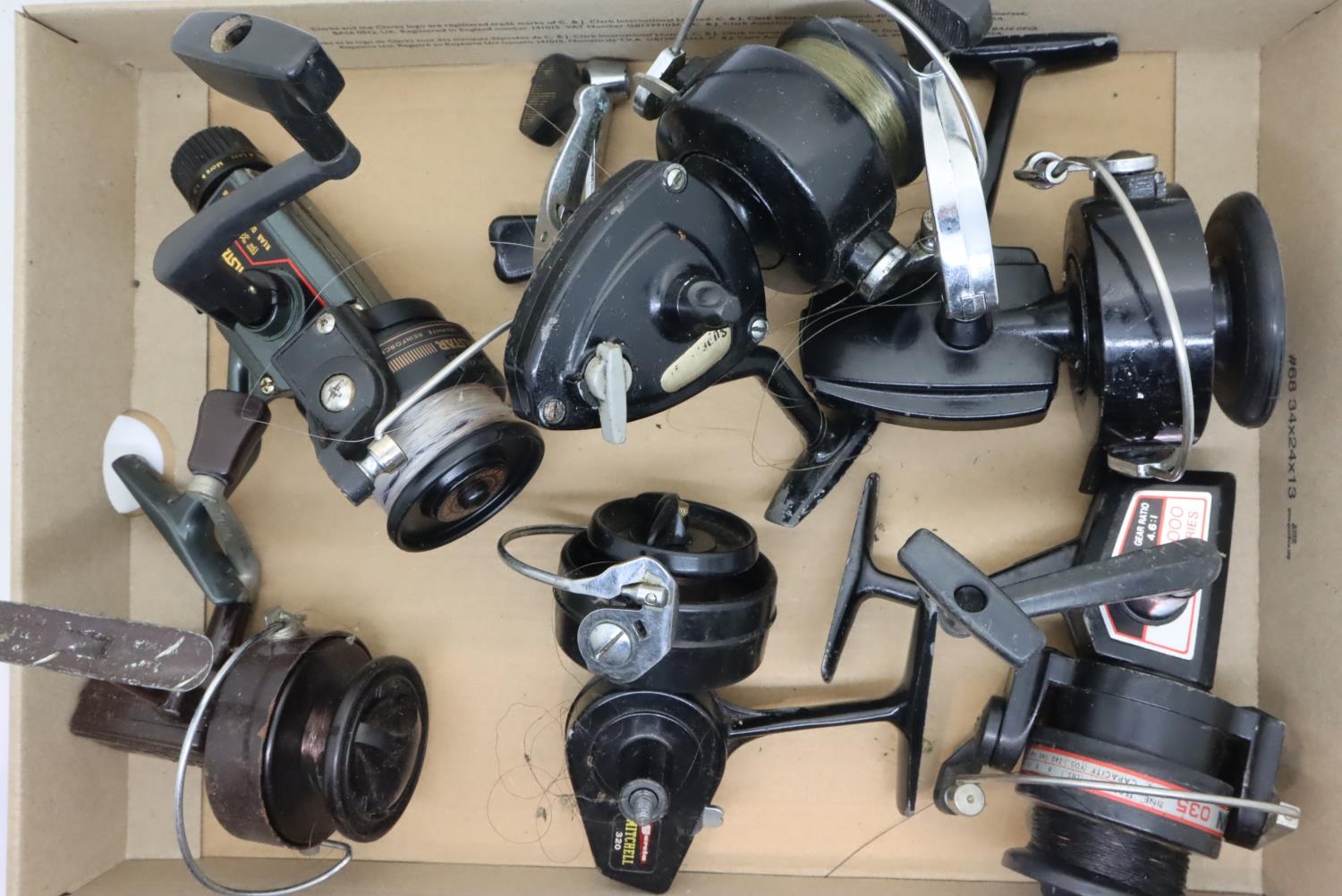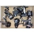 Collection of fishing reels including Mitchell and Daiwia. Not available for in-house P&P, contact Paul O'Hea at Mailboxes on 01925 659133