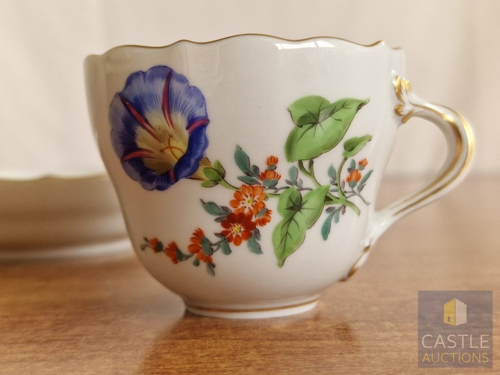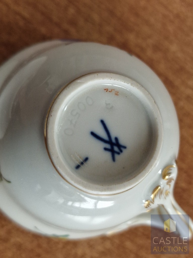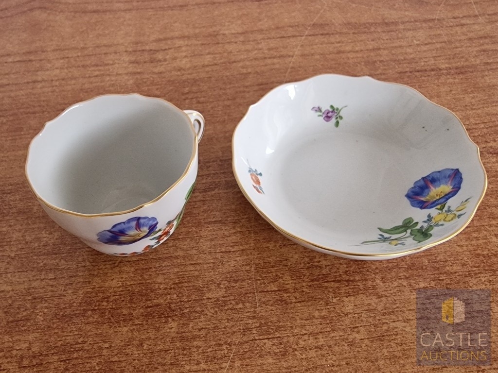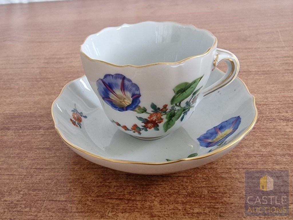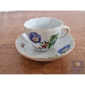 Meissen Cabinet Cup & Saucer with Floral Pattern, with Crossed Swords and Pattern Number to Base