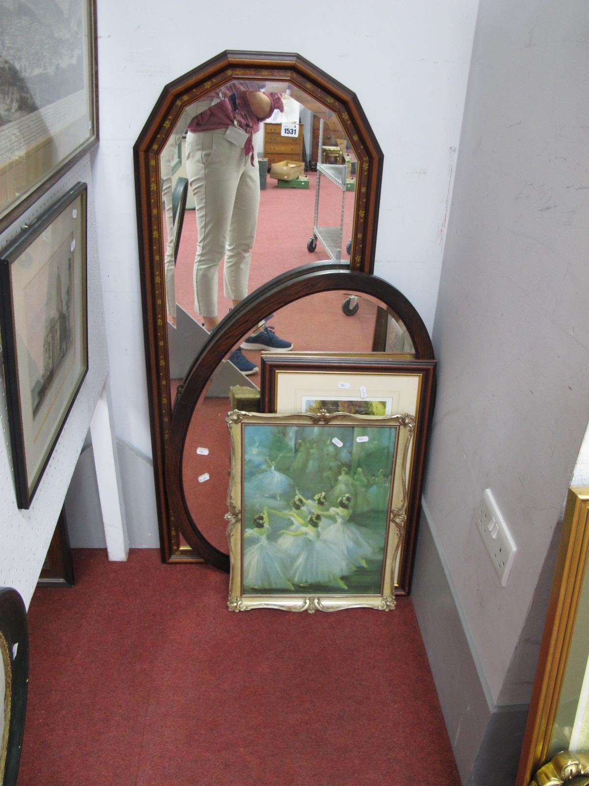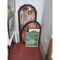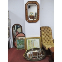 Oval and Angular Topped Wall Mirrors, John Rudkin 'Chatsworth' print, 17 x 40cm; one other. (4)