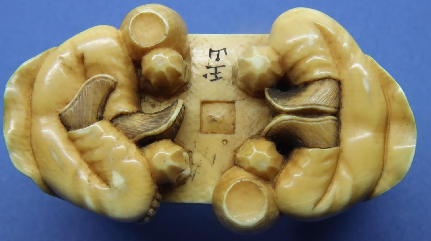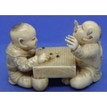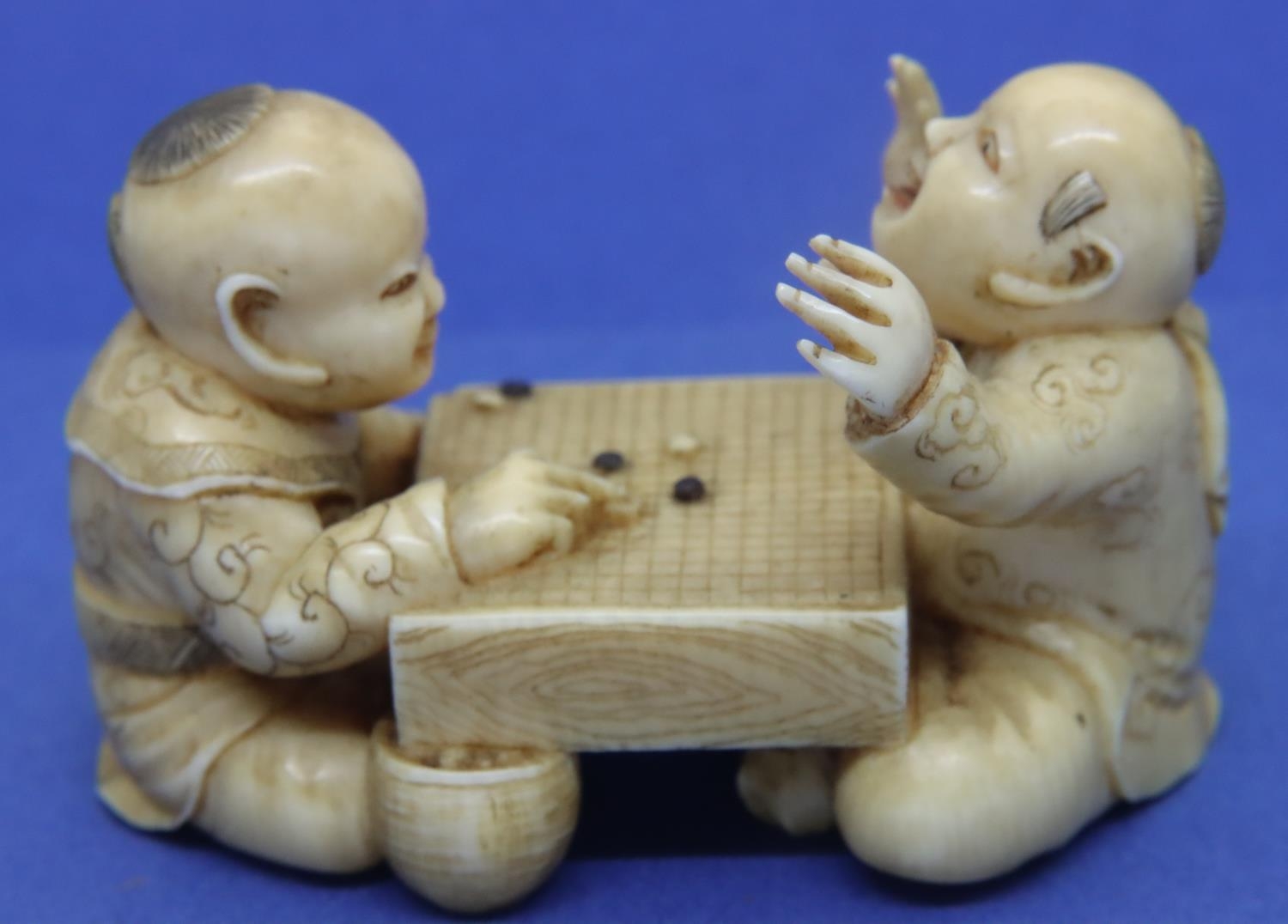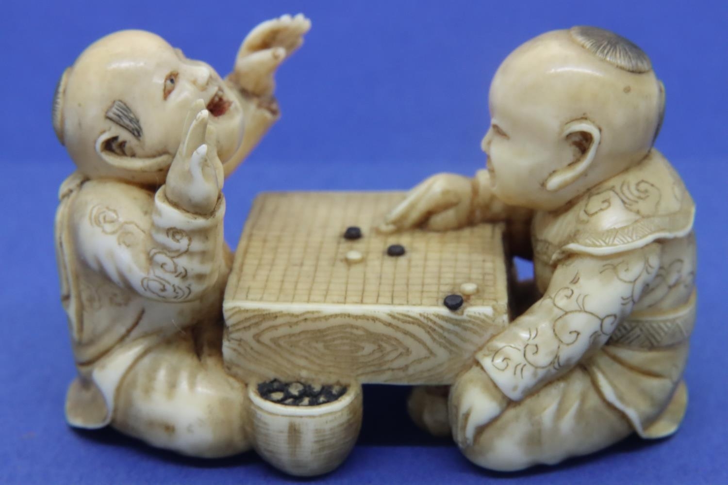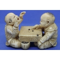 Carved ivory of two board game players, L: 57 mm, signed to base. P&P Group 1 (£14+VAT for the first lot and £1+VAT for subsequent lots)