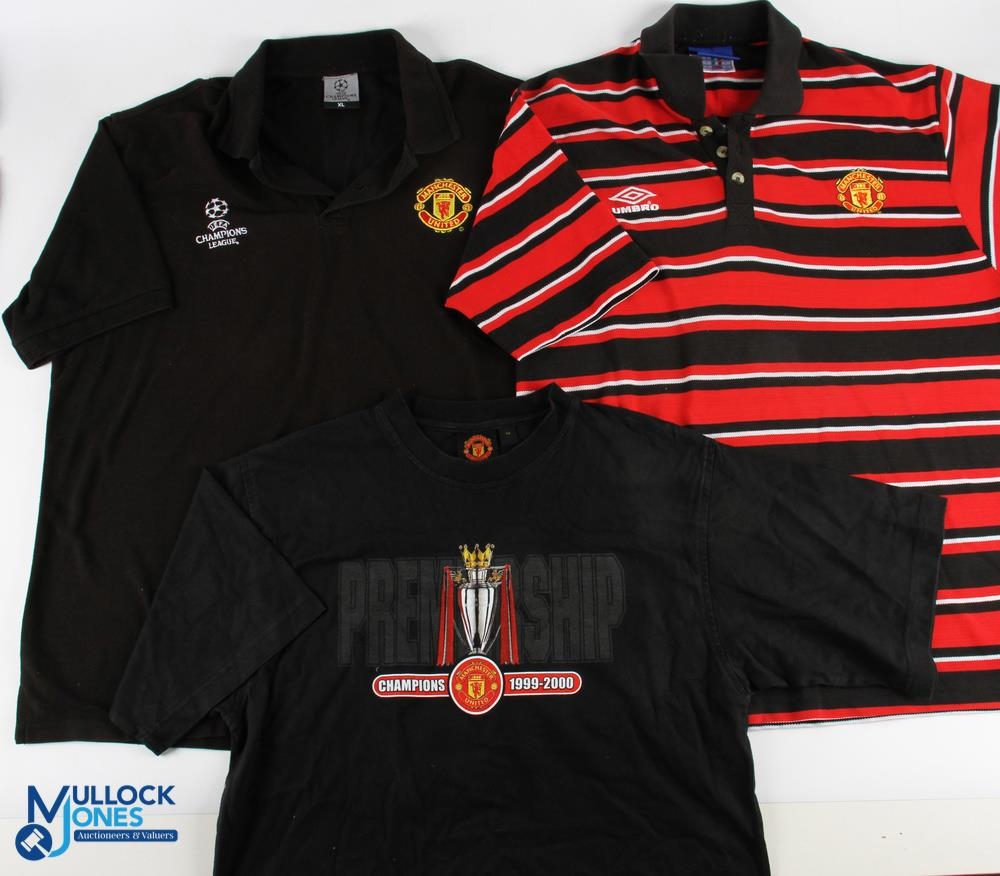 Manchester United Polo Shirts & T Shirt, to include Champions league a polo shirt in black size XL, Manchester United Umbro striped polo shirt size L-short sleeve with Umbro label, plus 1999-2000 Champions official Manchester United black T shirt size M (3)