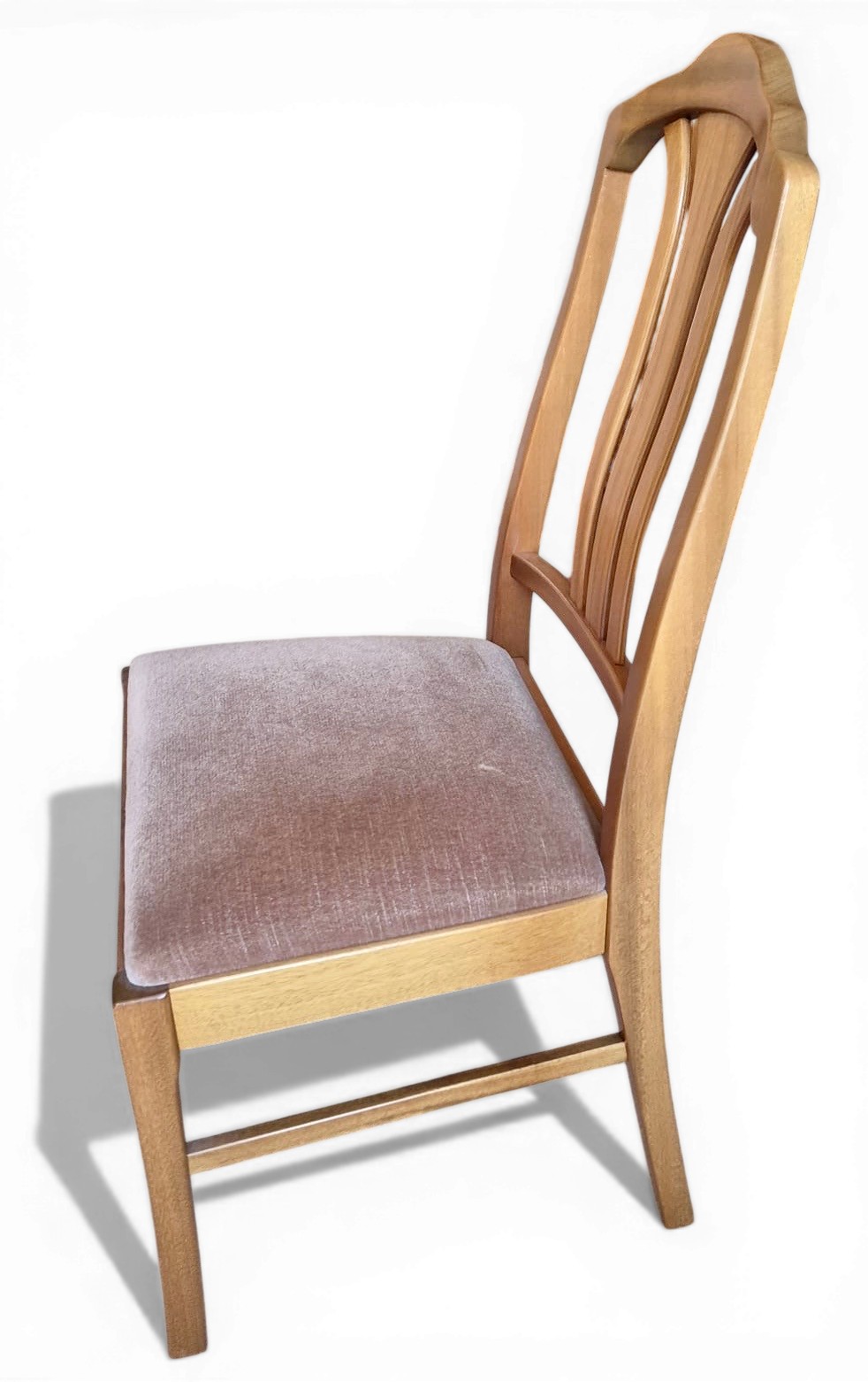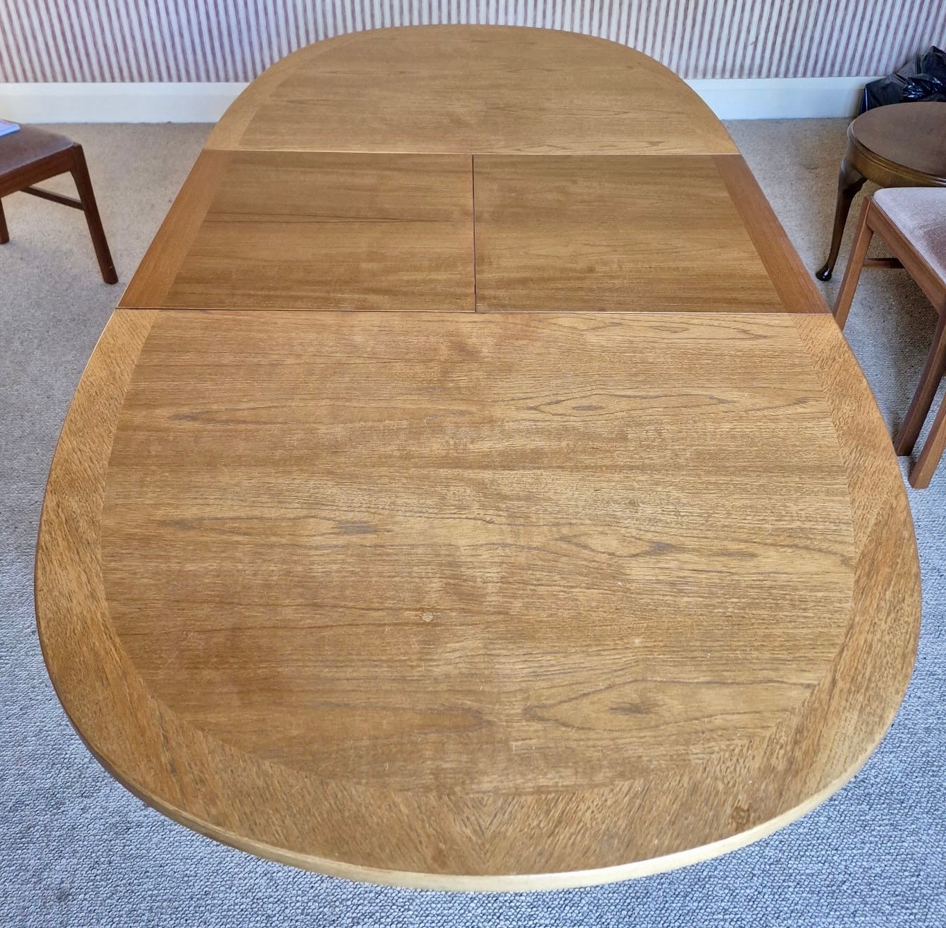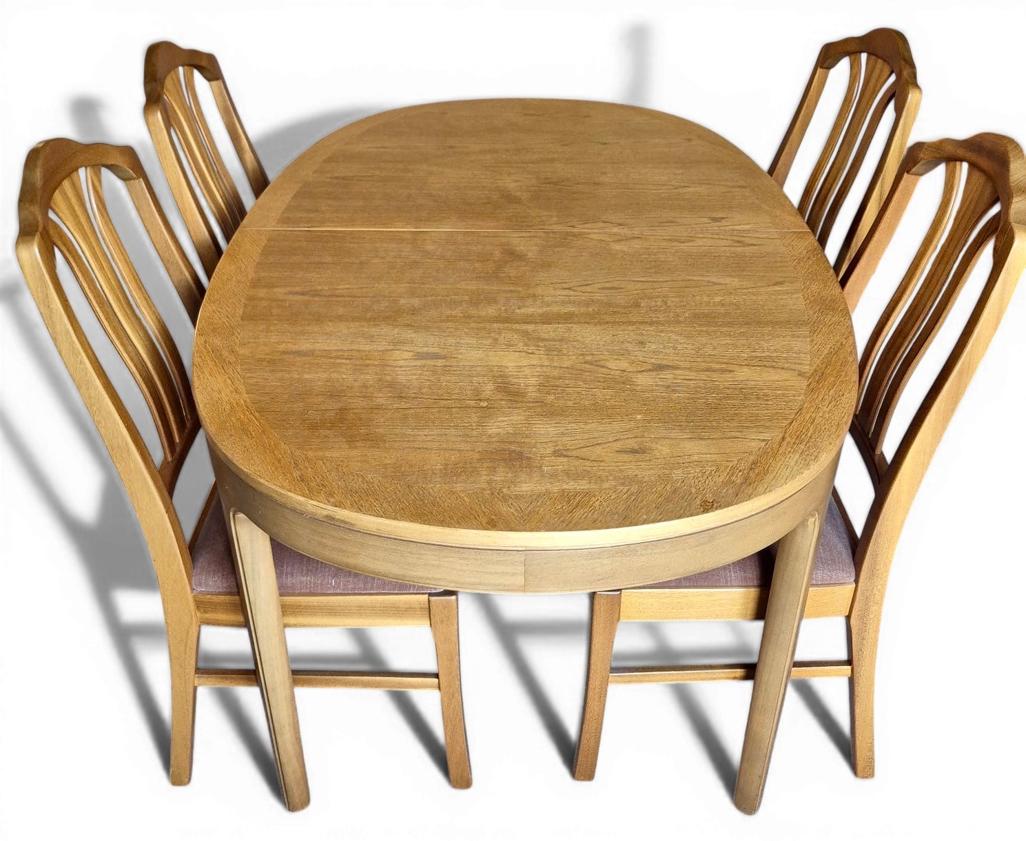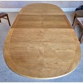 A mid 20thC teak Nathan extending dining table and four Parker Knoll chairs. 206cm l extended, 152cm closed x 99cm w x 75cm h.