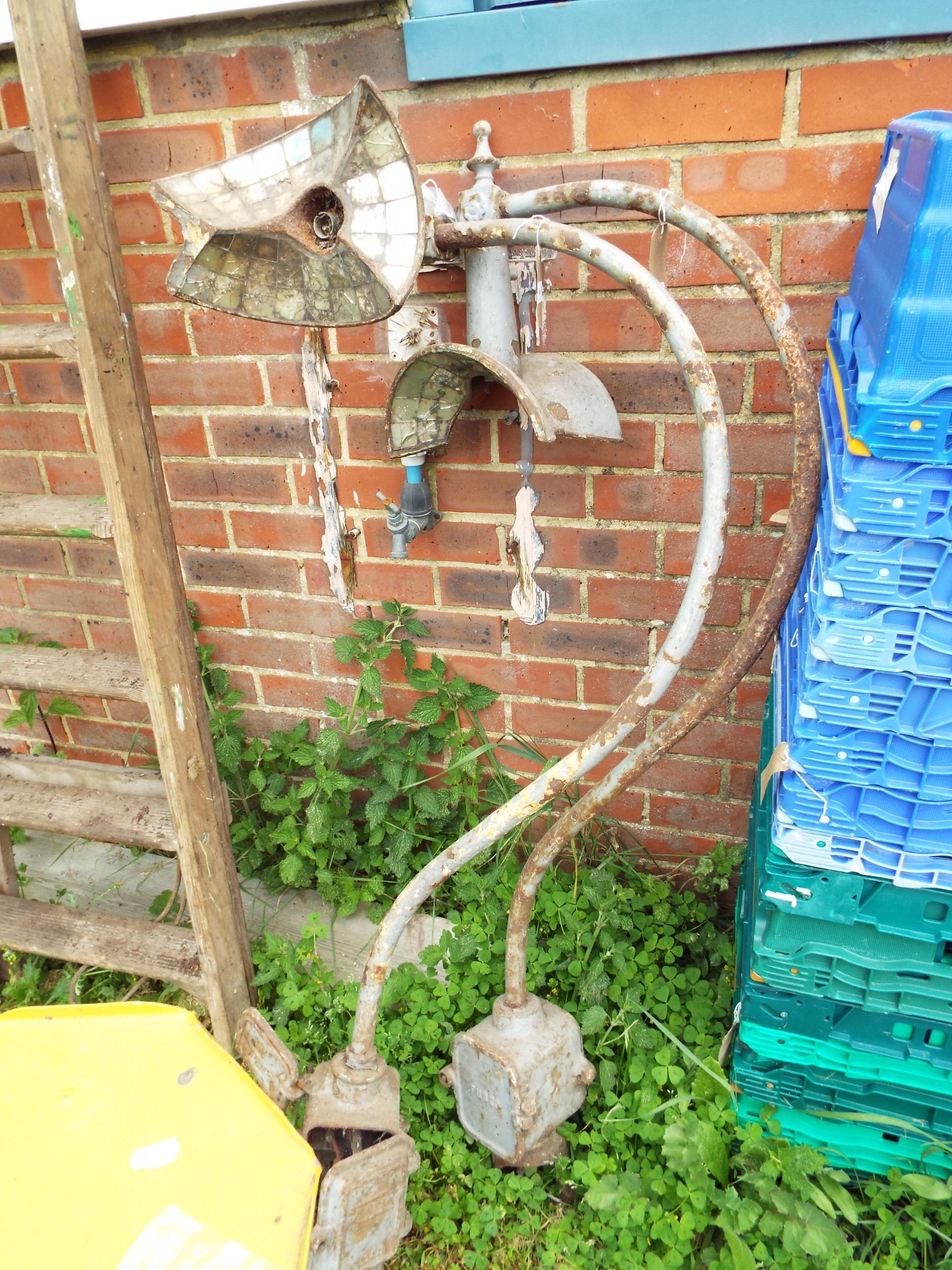 Two 1930s cast iron lamp post top finials
