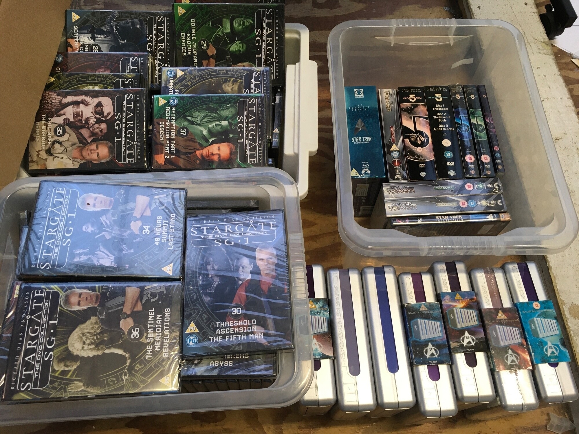 Four boxes of sci fi DVDs and BluRays.