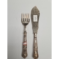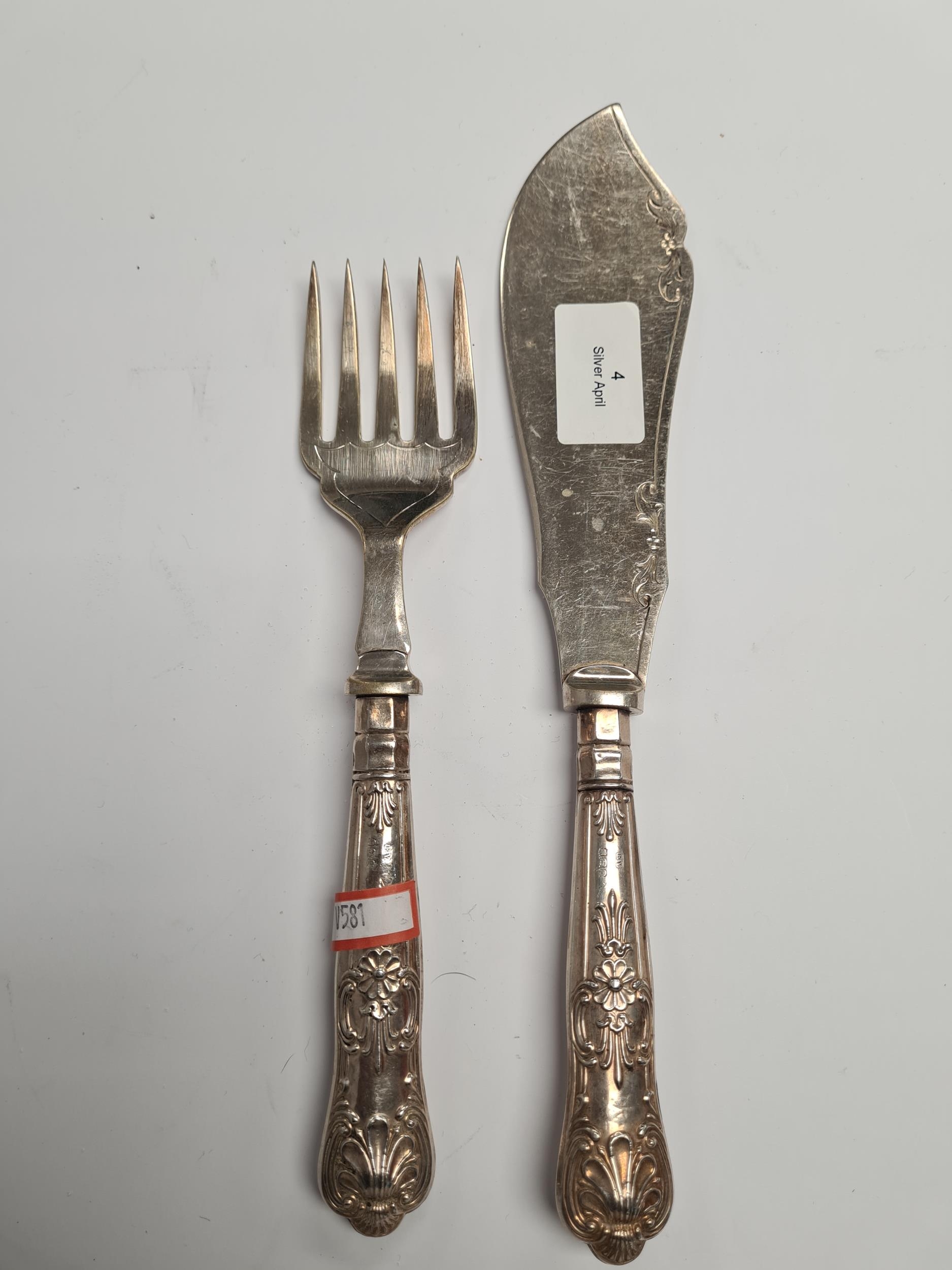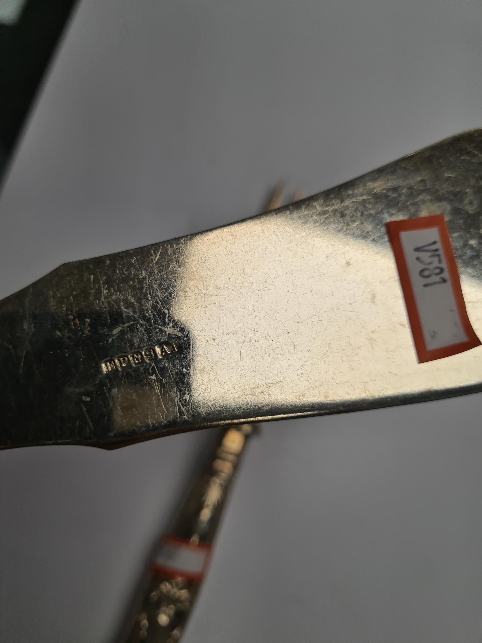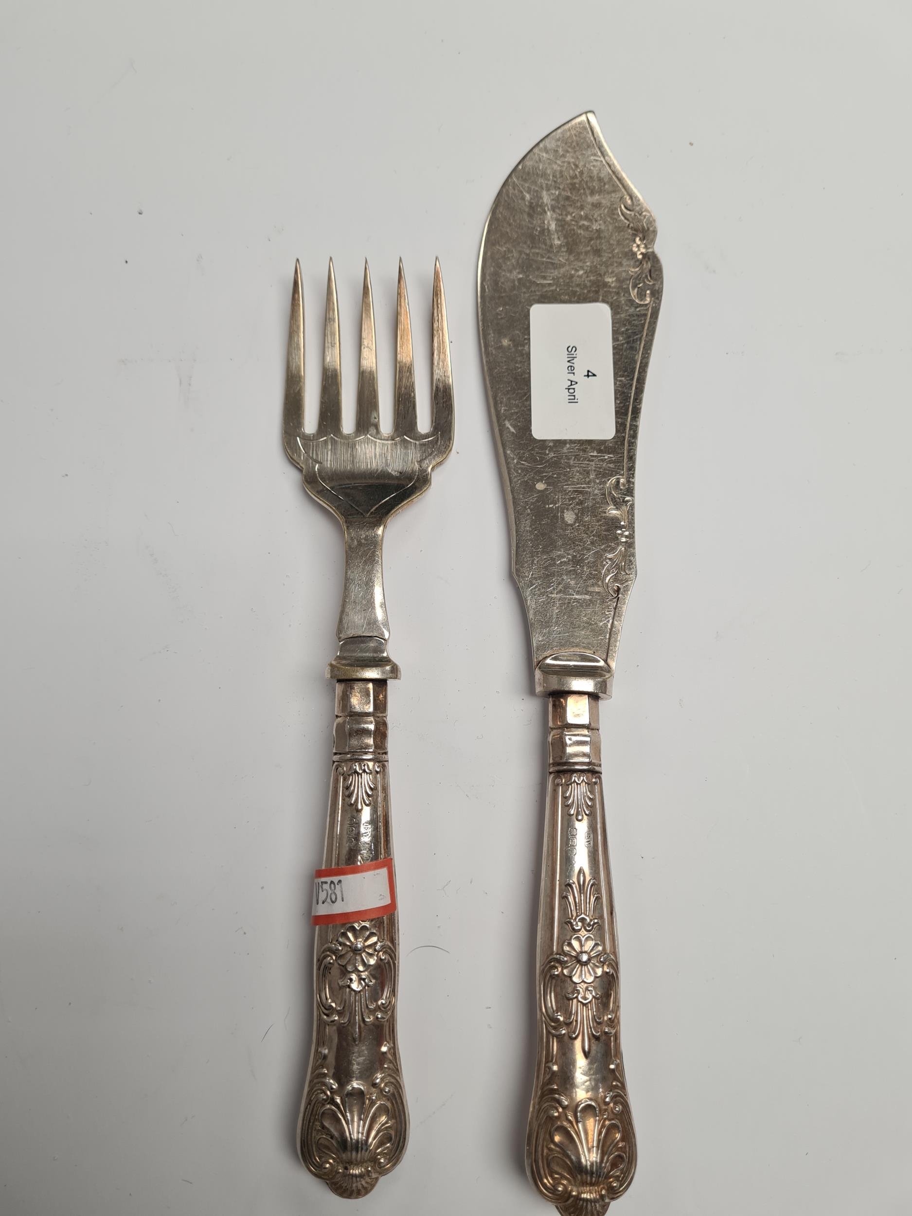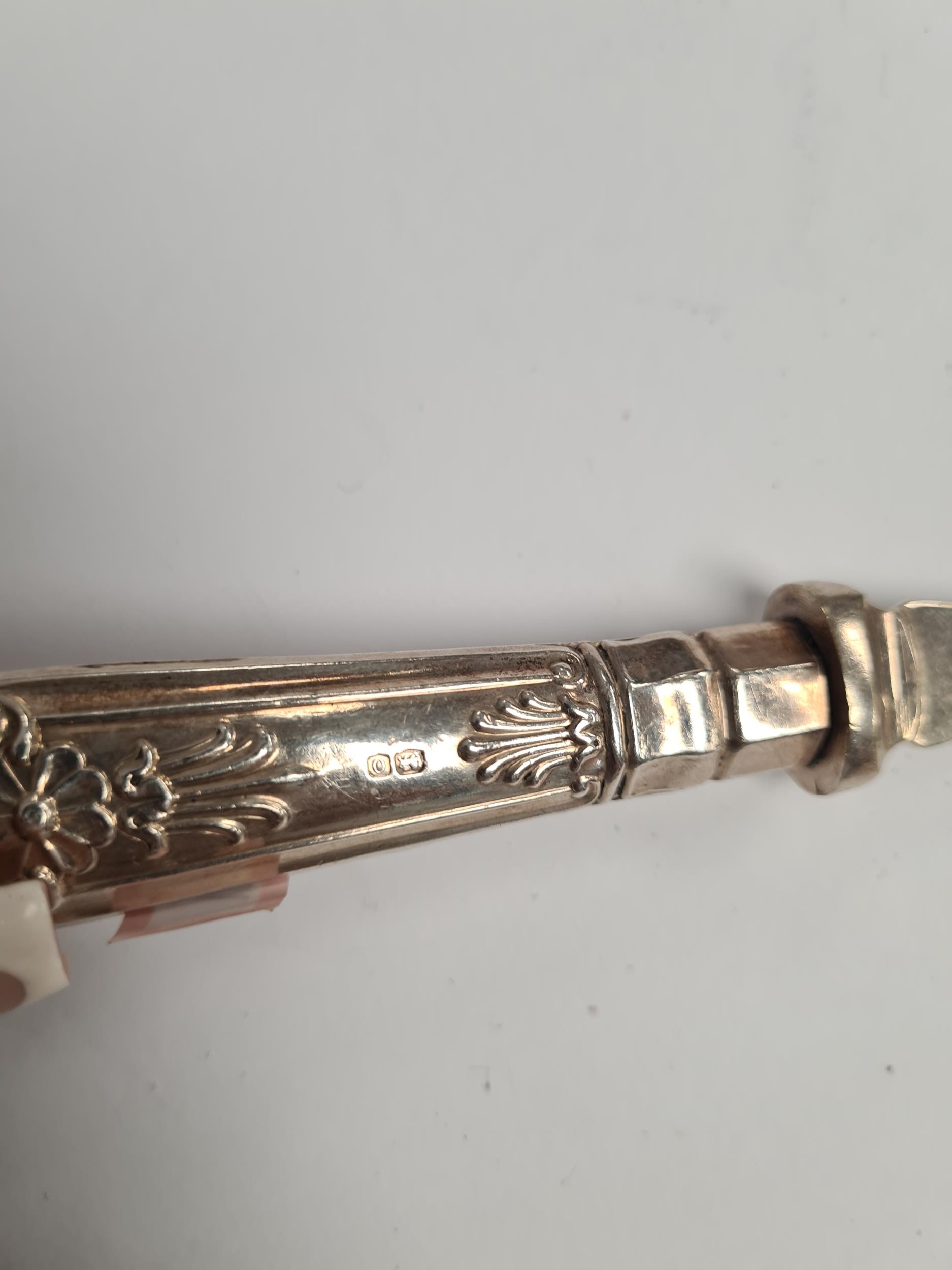 Silver handled serving items by Viners Ltd., Sheffield 1931. Embossed foliate details. Condition Report: very slight wear
