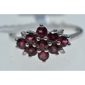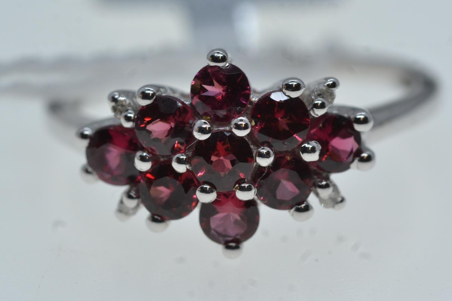 10ct white gold & red stone cluster ring, size O, 2.42 grams